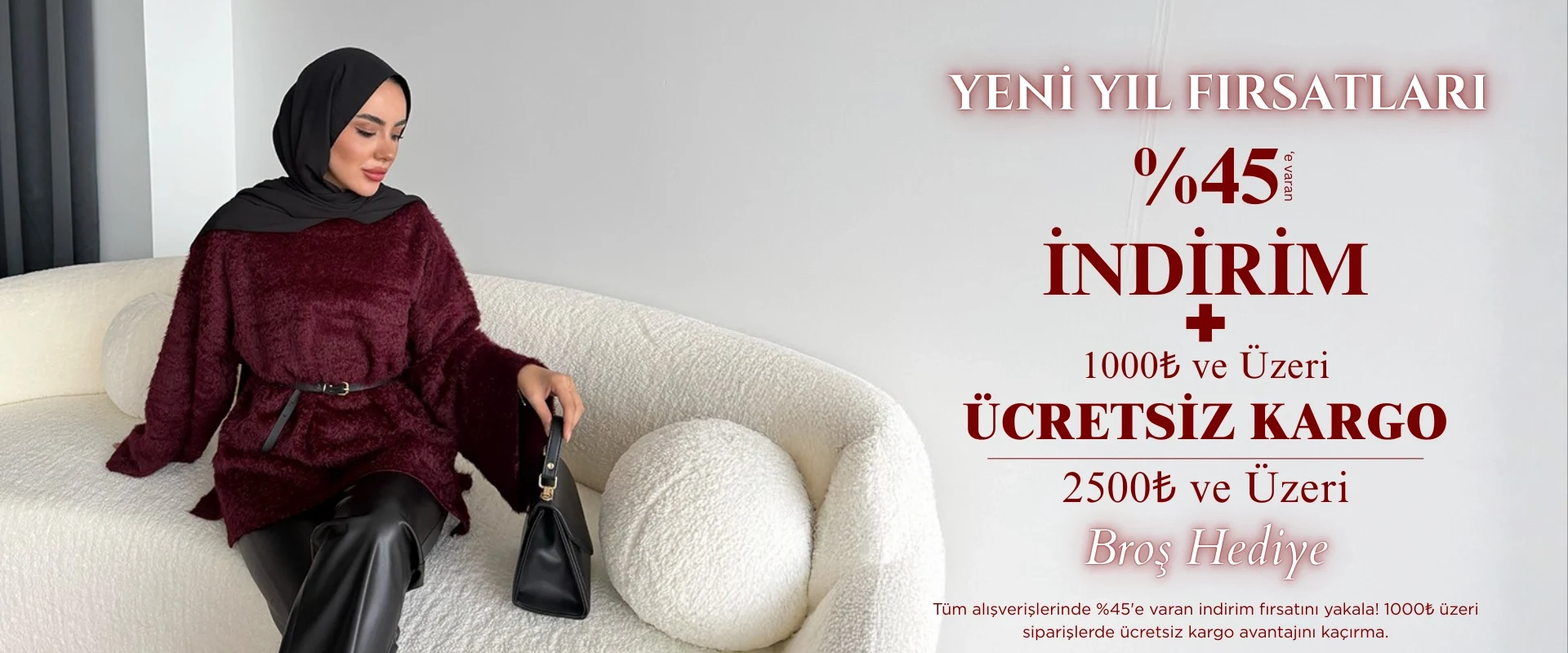 % 45'E VARAN İNDİRİM + 1000 TL ÜZERİ KARGO ÜCRETSİZ + 2500 TL ÜZERİ BROŞ HEDİYE