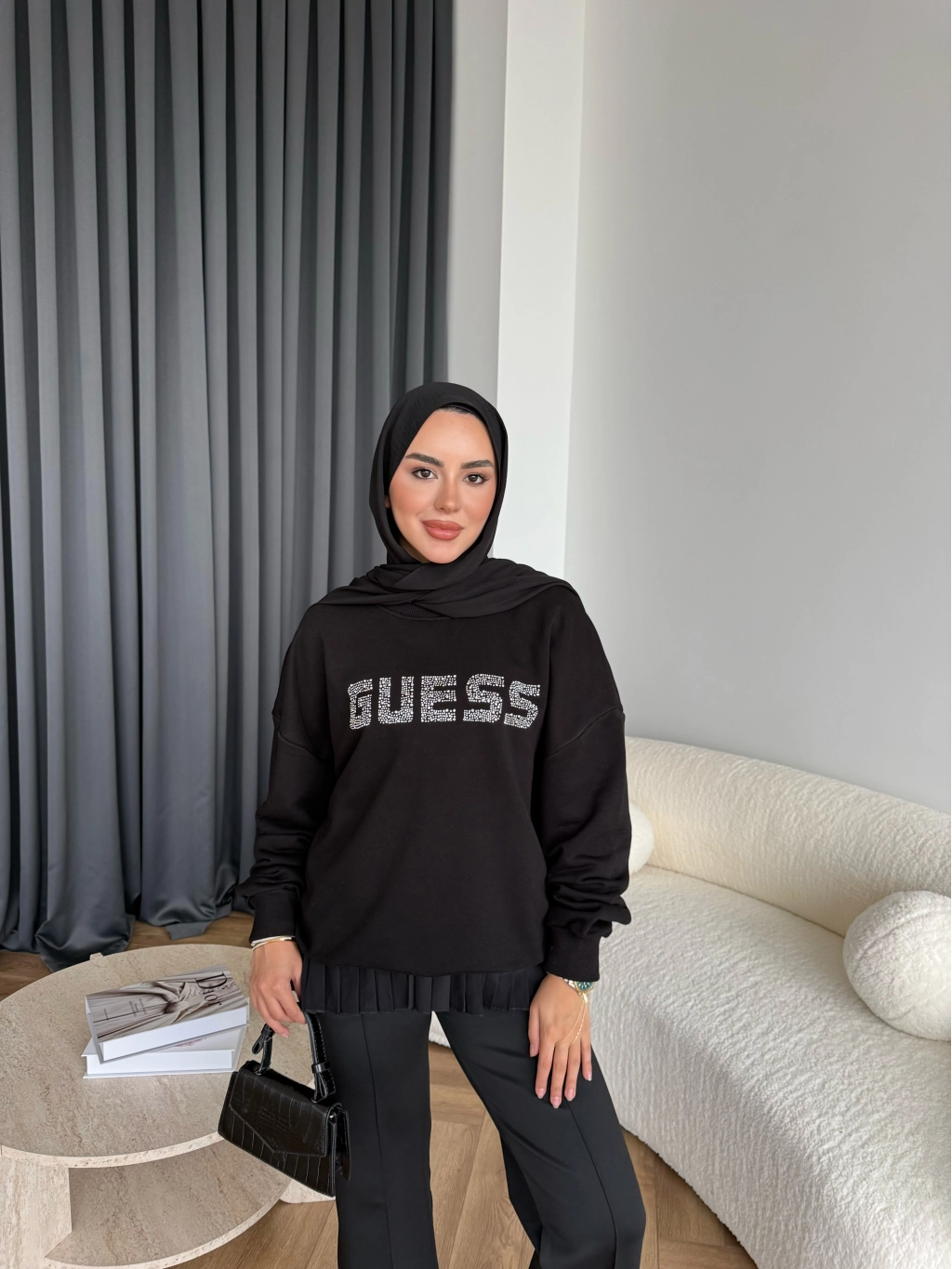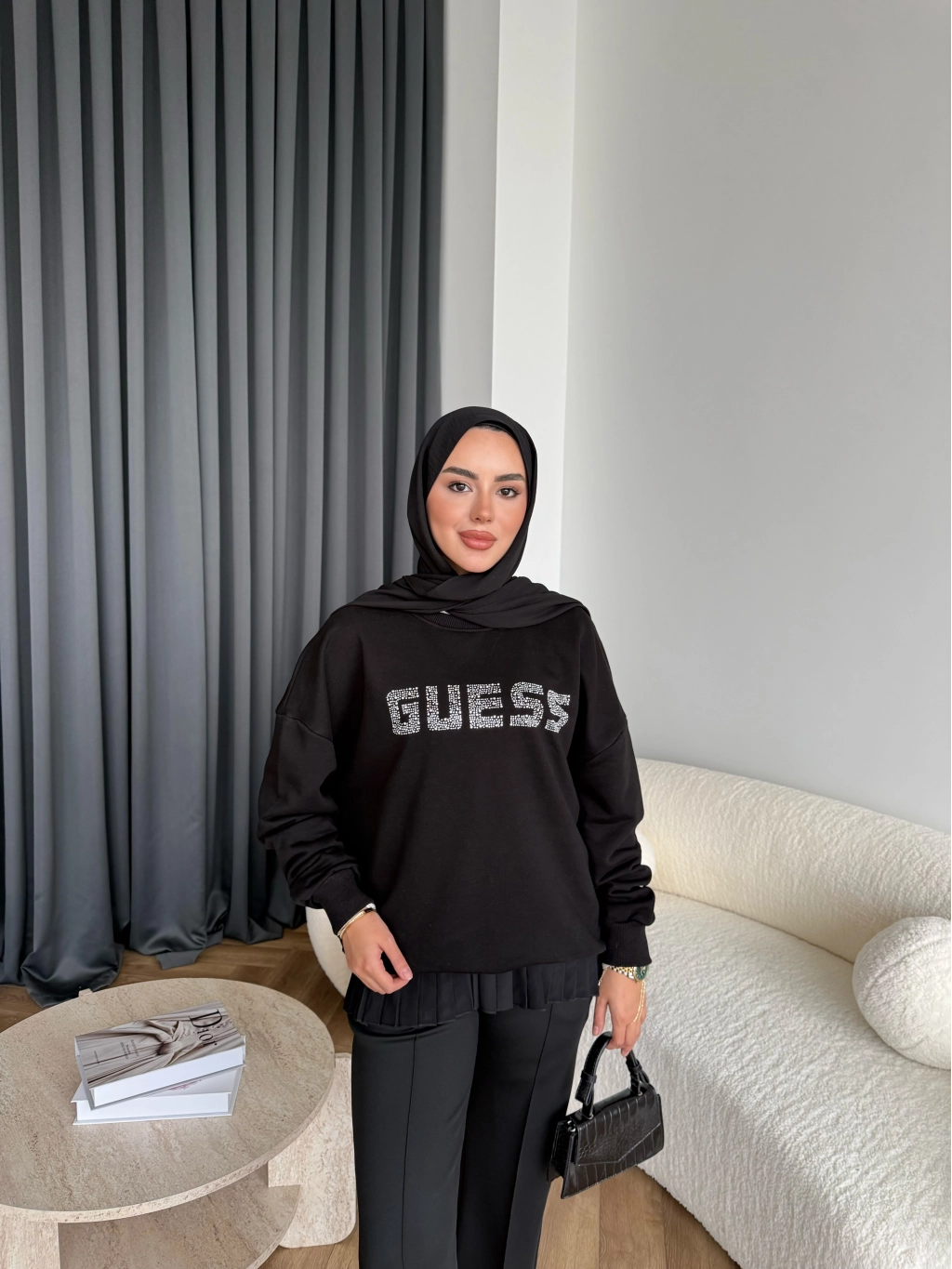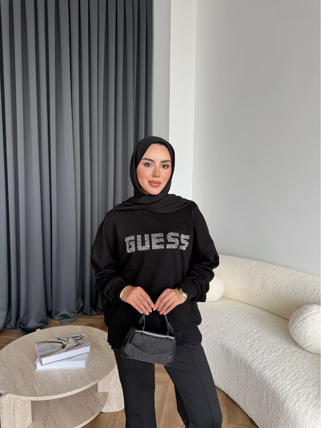 1-Muadil Taşlı Sweat - Siyah