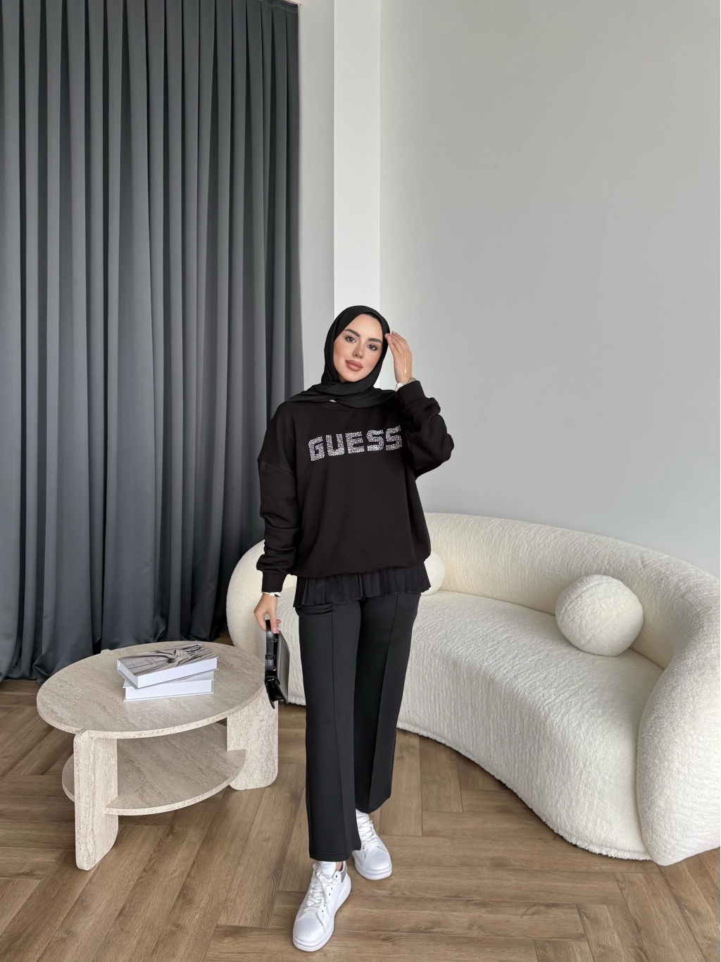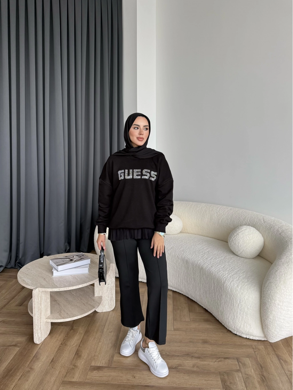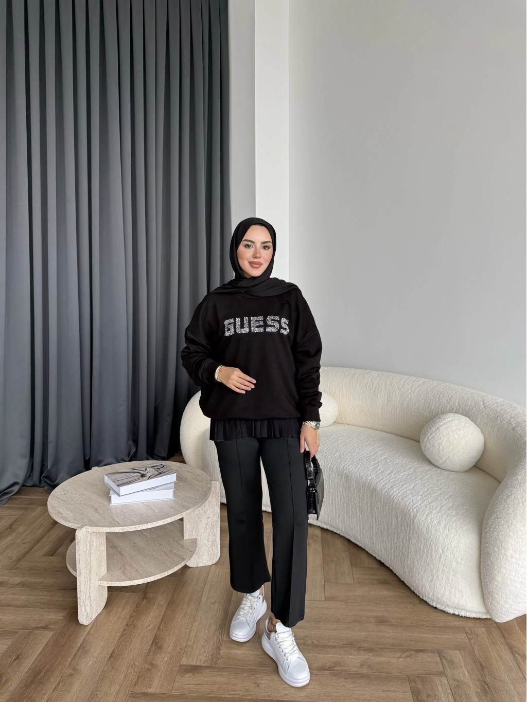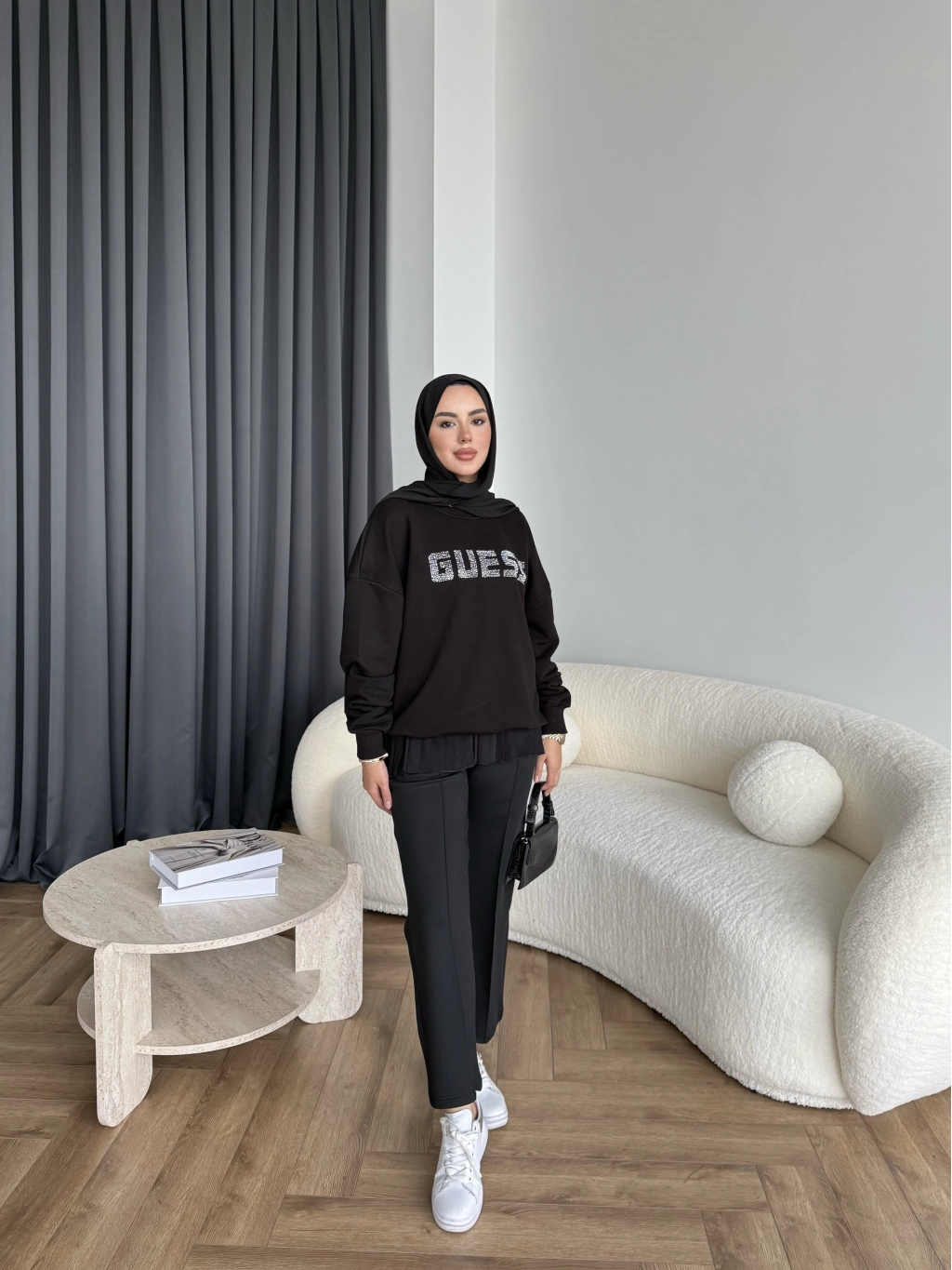 1-Muadil Taşlı Sweat - Siyah