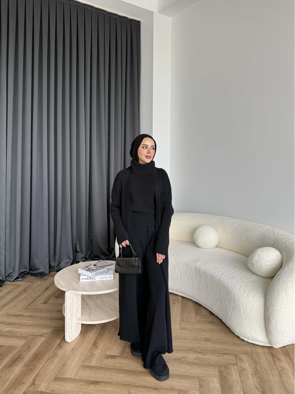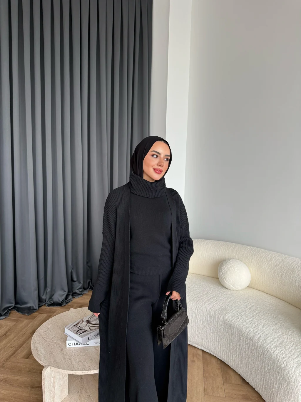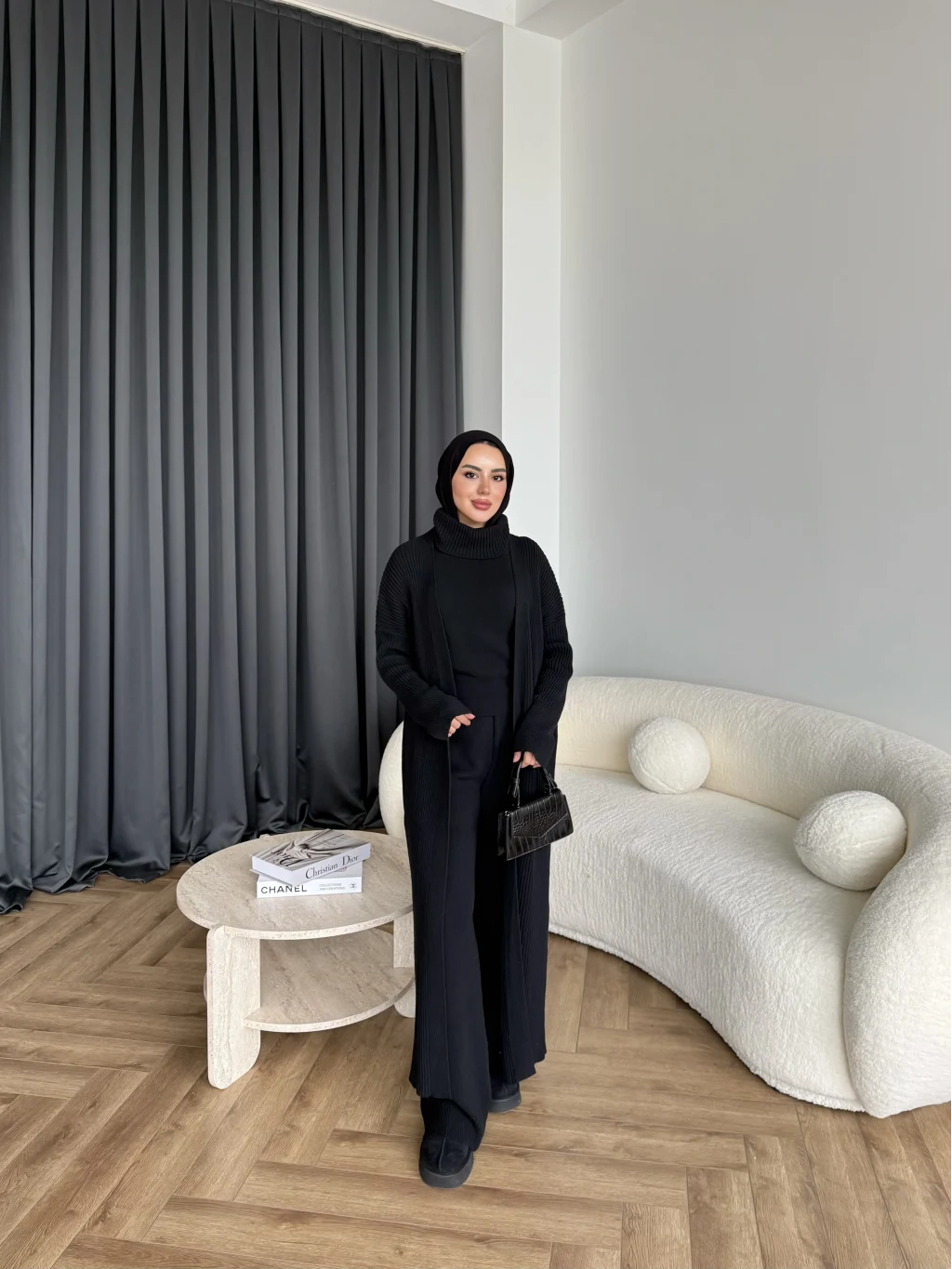 Polo Yaka Örgü Triko Takım - Acı Kahve