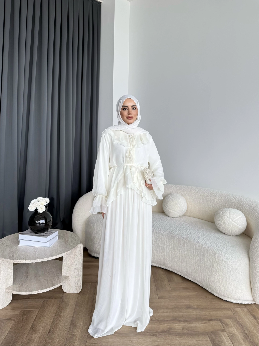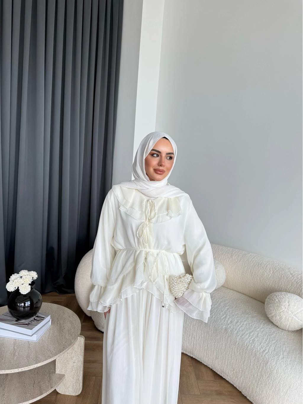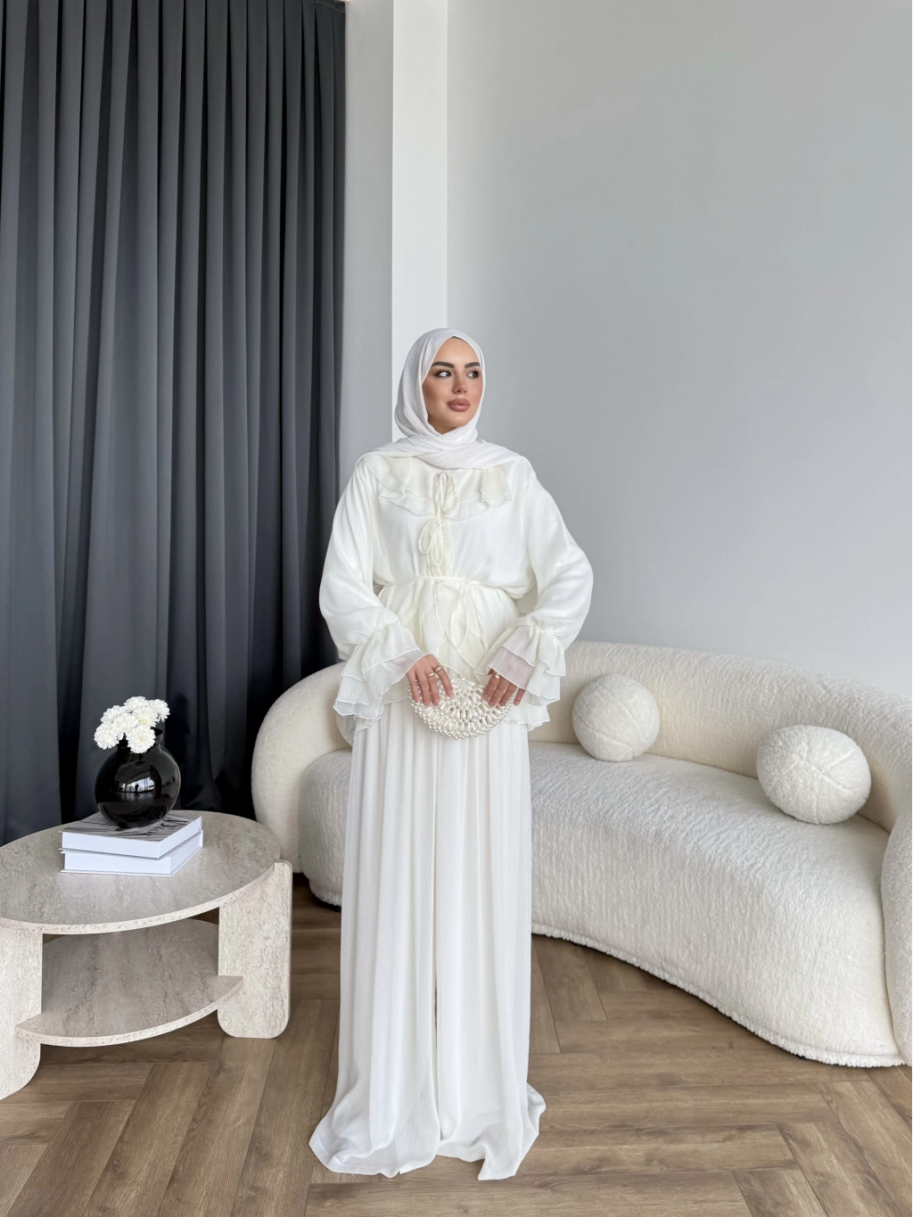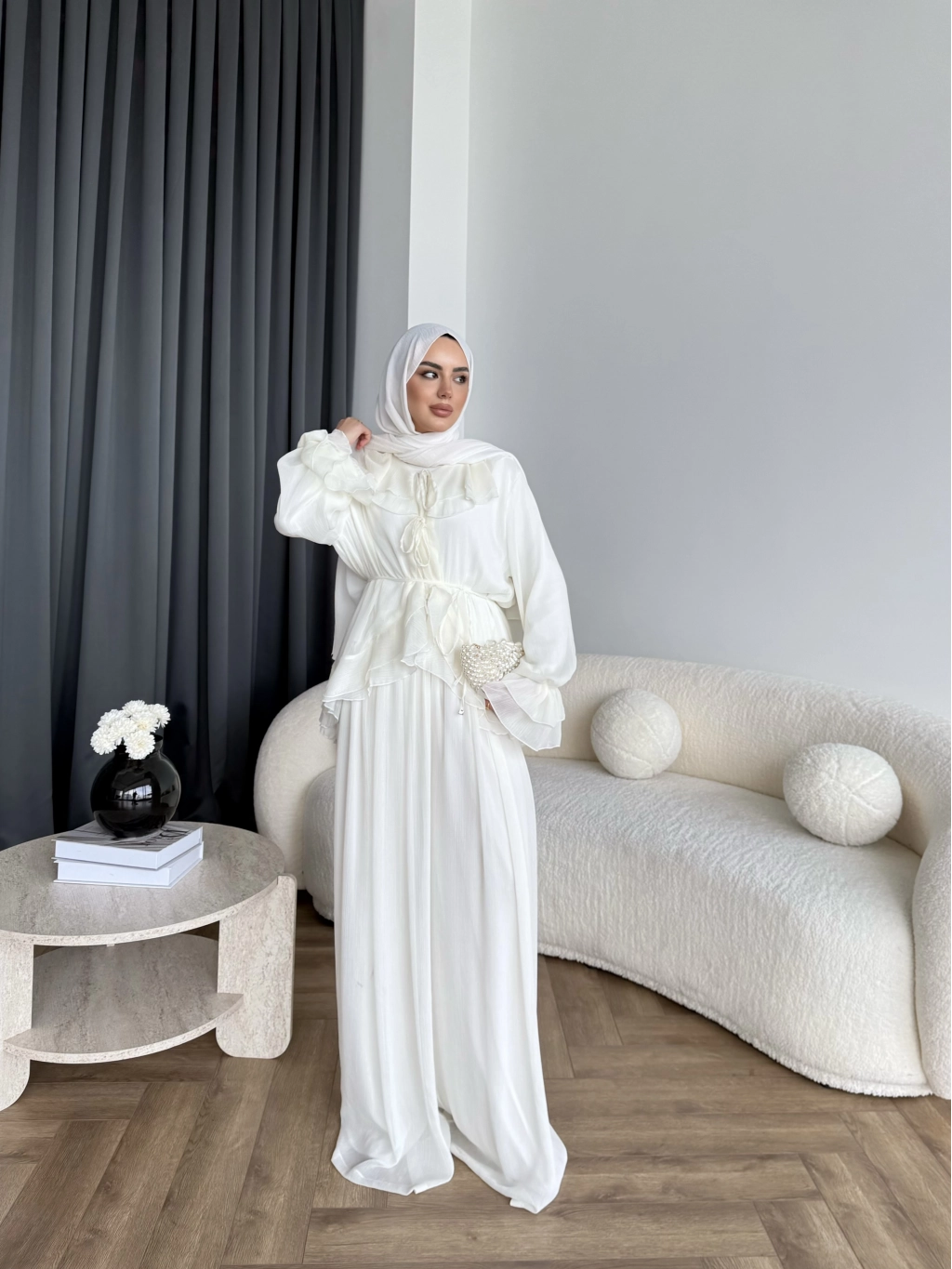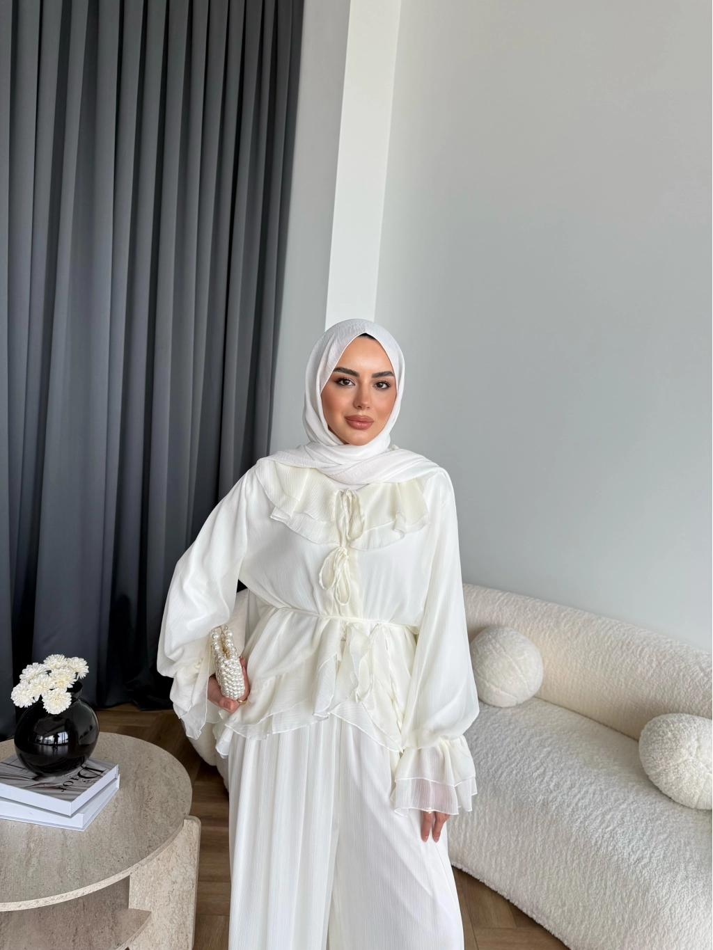 Ah - Elanar Fırfır Detaylı Pantolonlu Takım - Ekru - ÖN SİPARİŞ