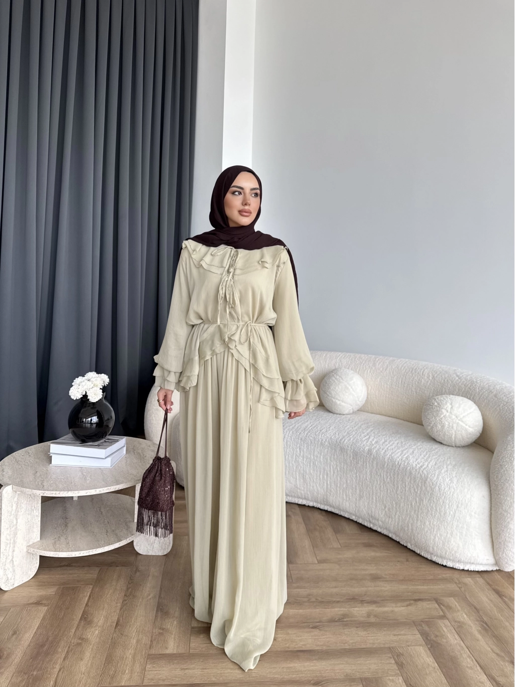 Hen - Luzy Şifon Elbise - Kahve