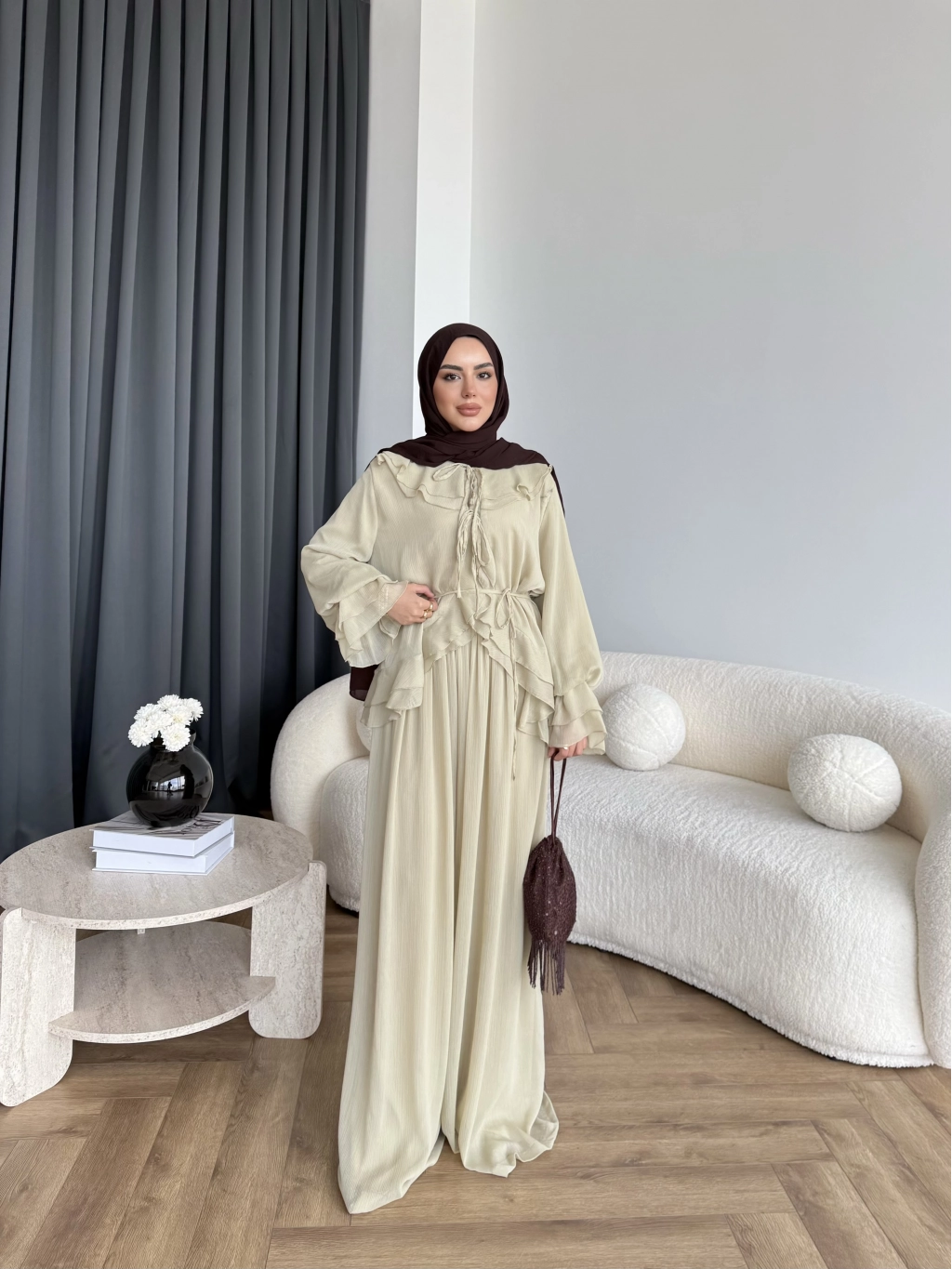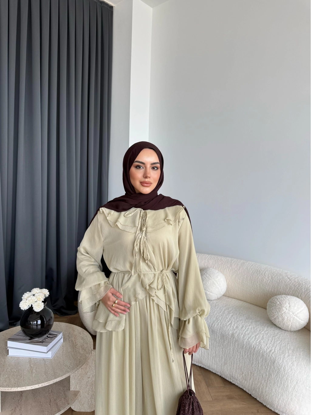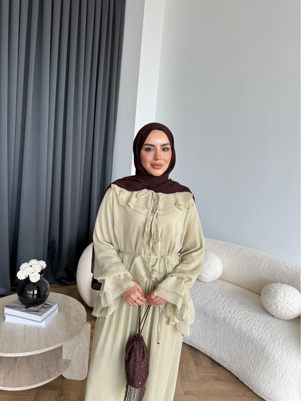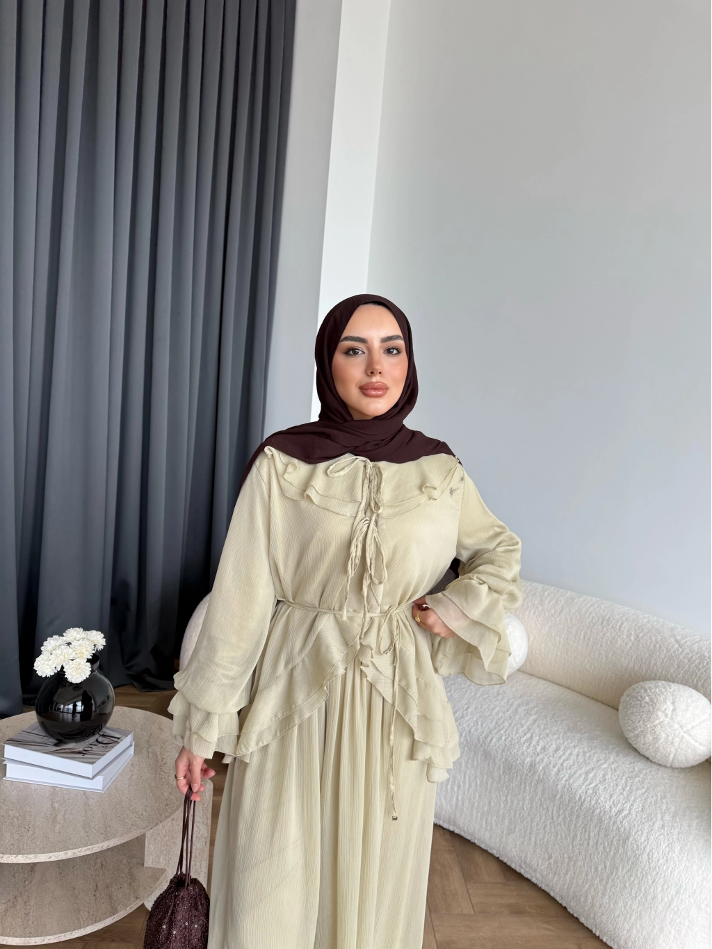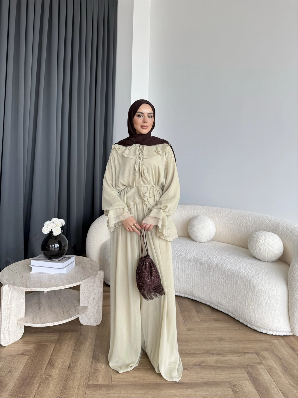 Ah - Elanar Fırfır Detaylı Pantolonlu Takım - Yeşil - ÖN SİPARİŞ