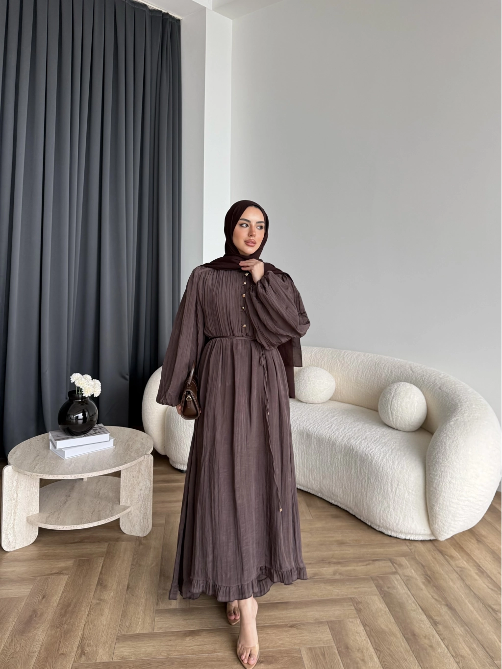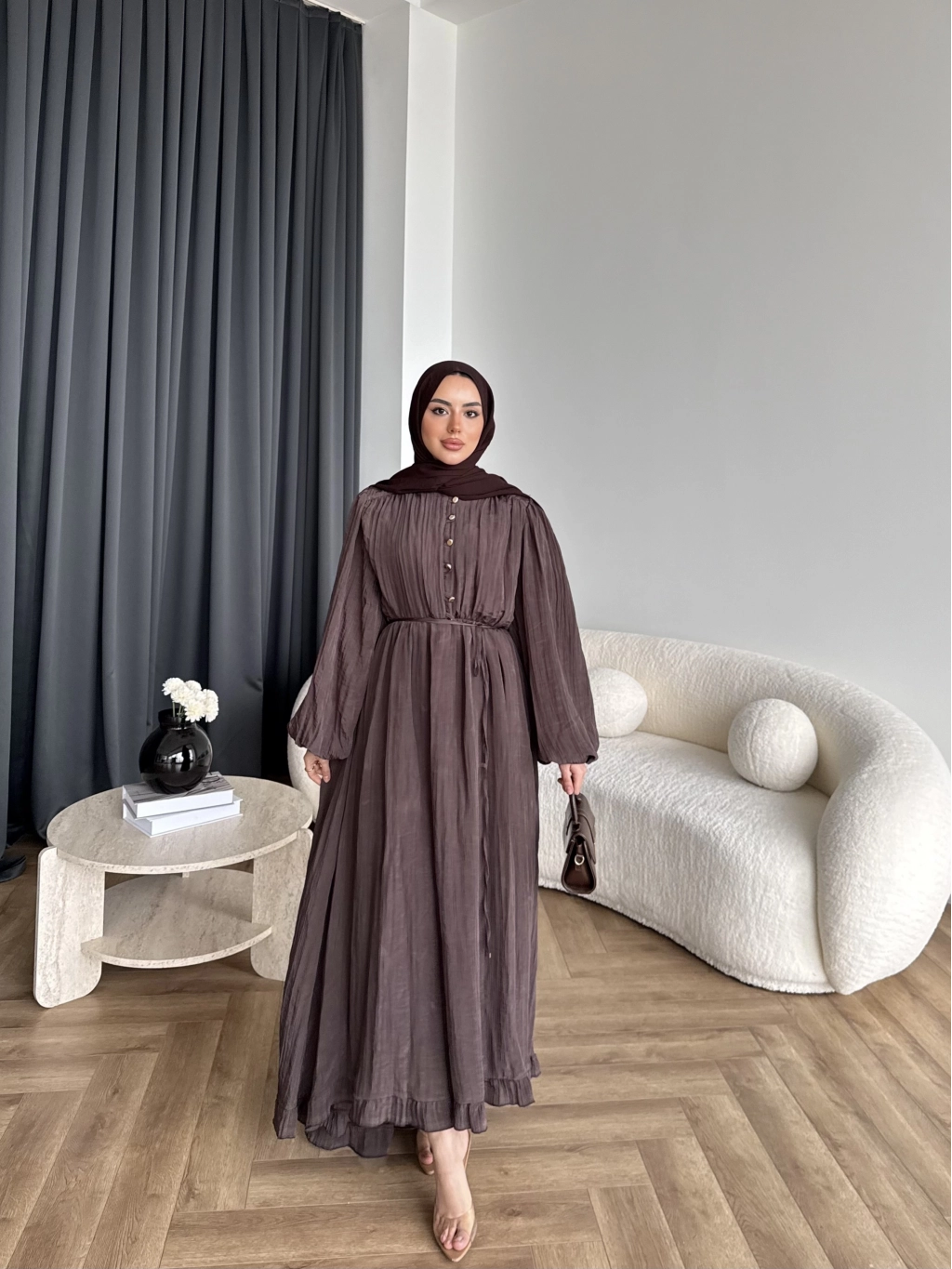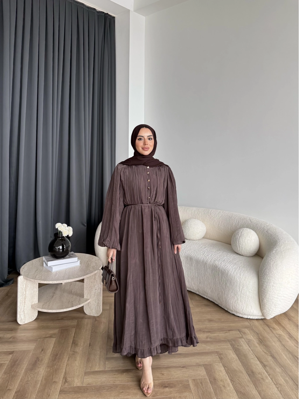 Ah - Rafel Asimetrik Fırfırlı Piliseli Elbise - Acı Kahve