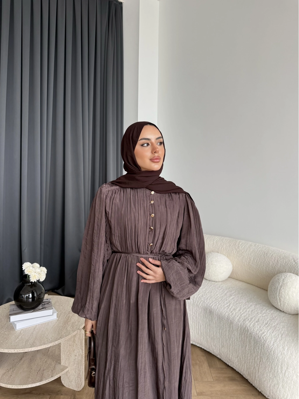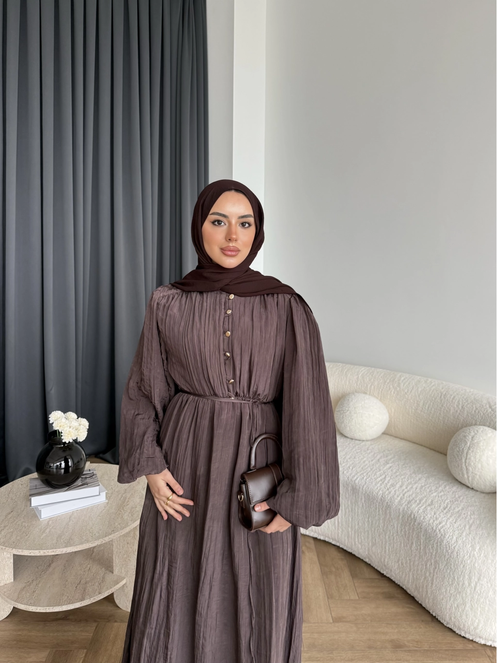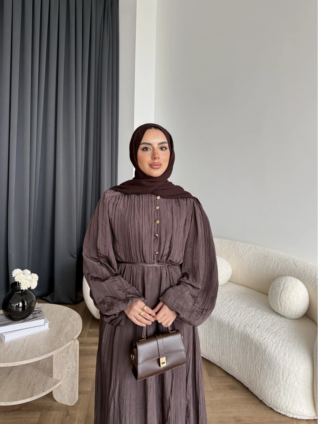 Ah - Rafel Asimetrik Fırfırlı Piliseli Elbise - Acı Kahve