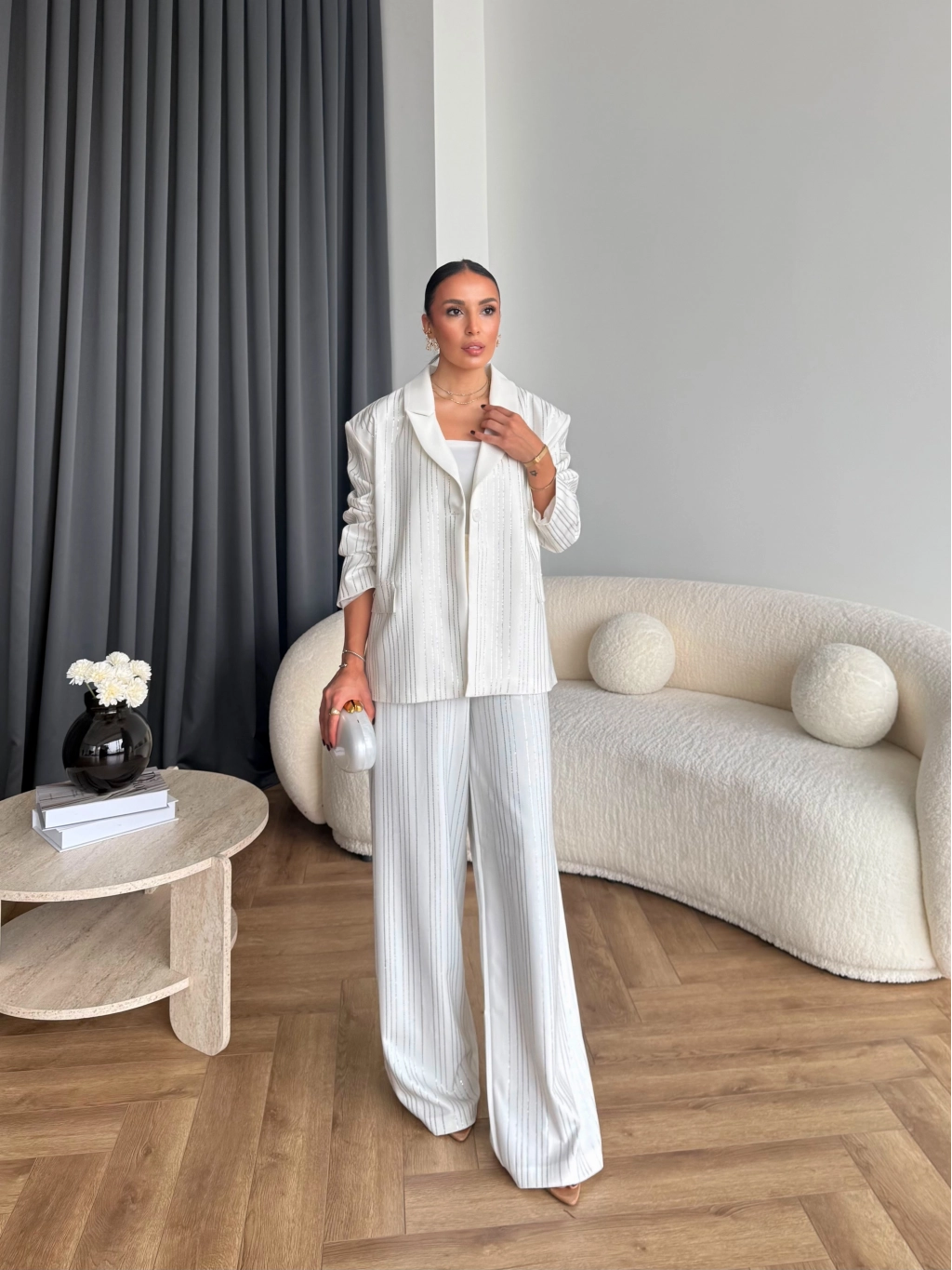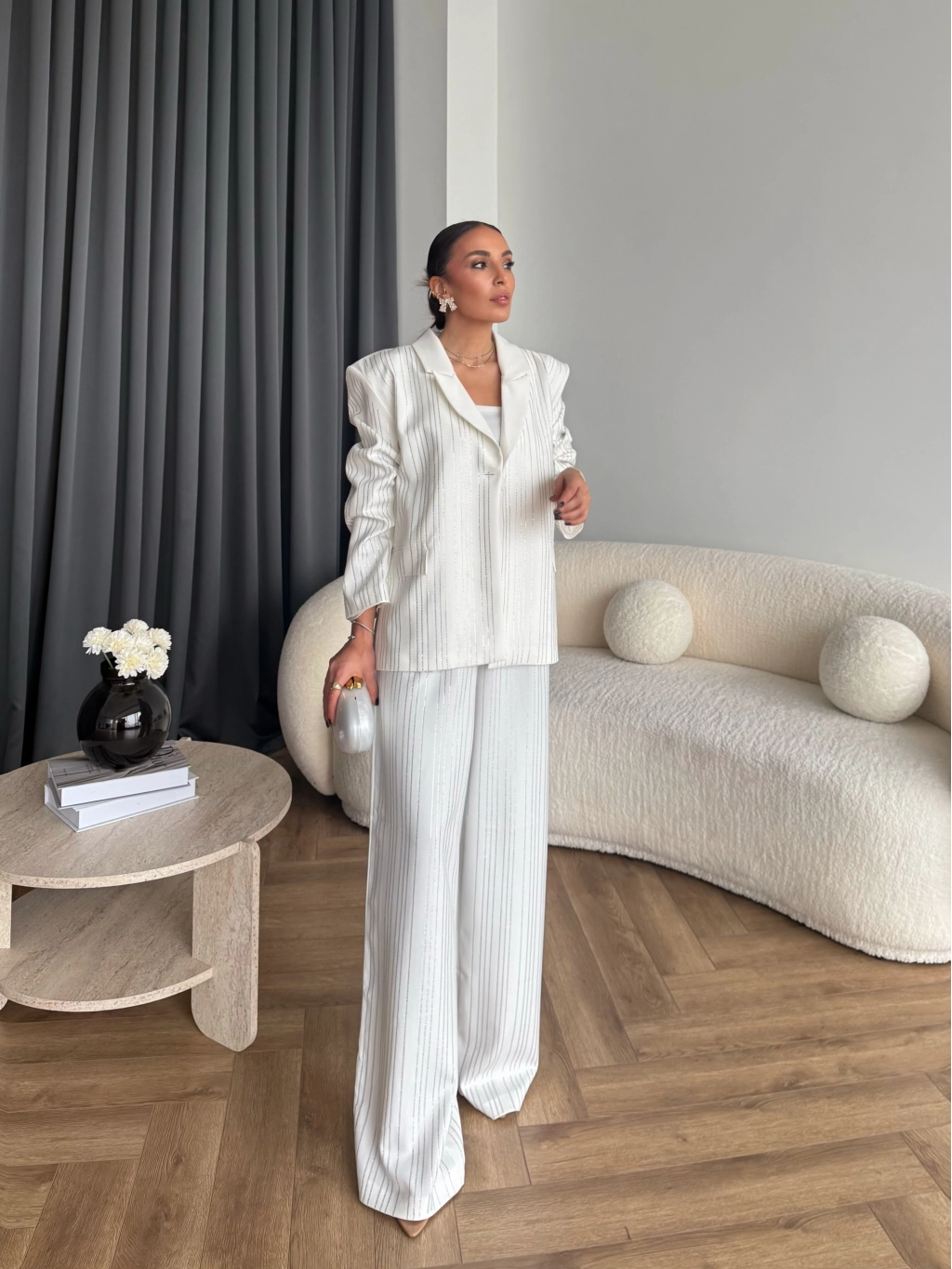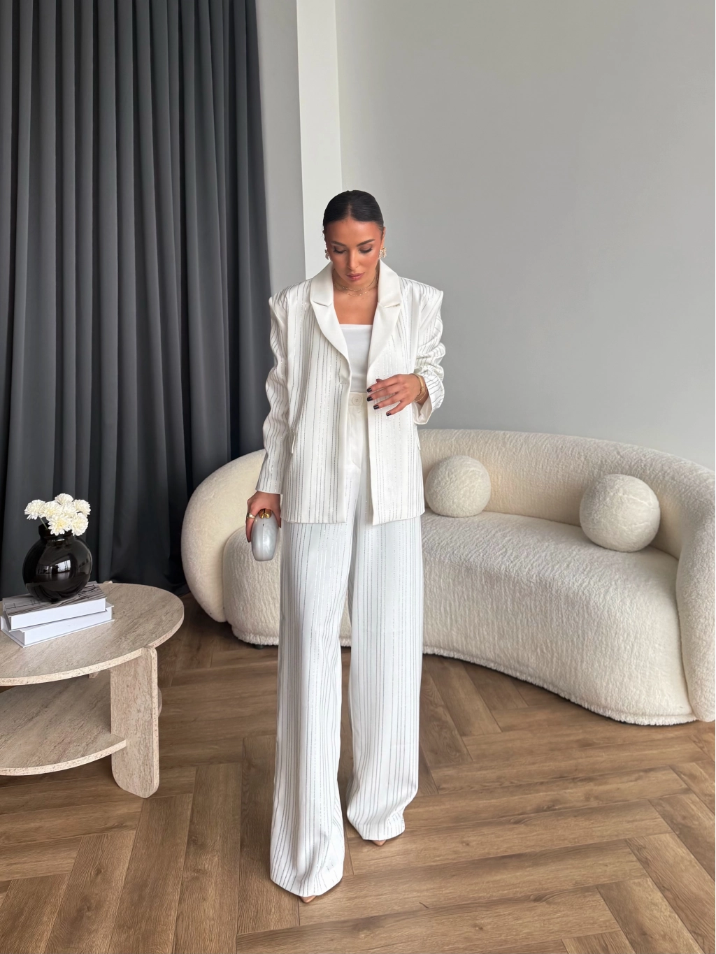 Asil Pırlanta Ceketli Takım - Beyaz