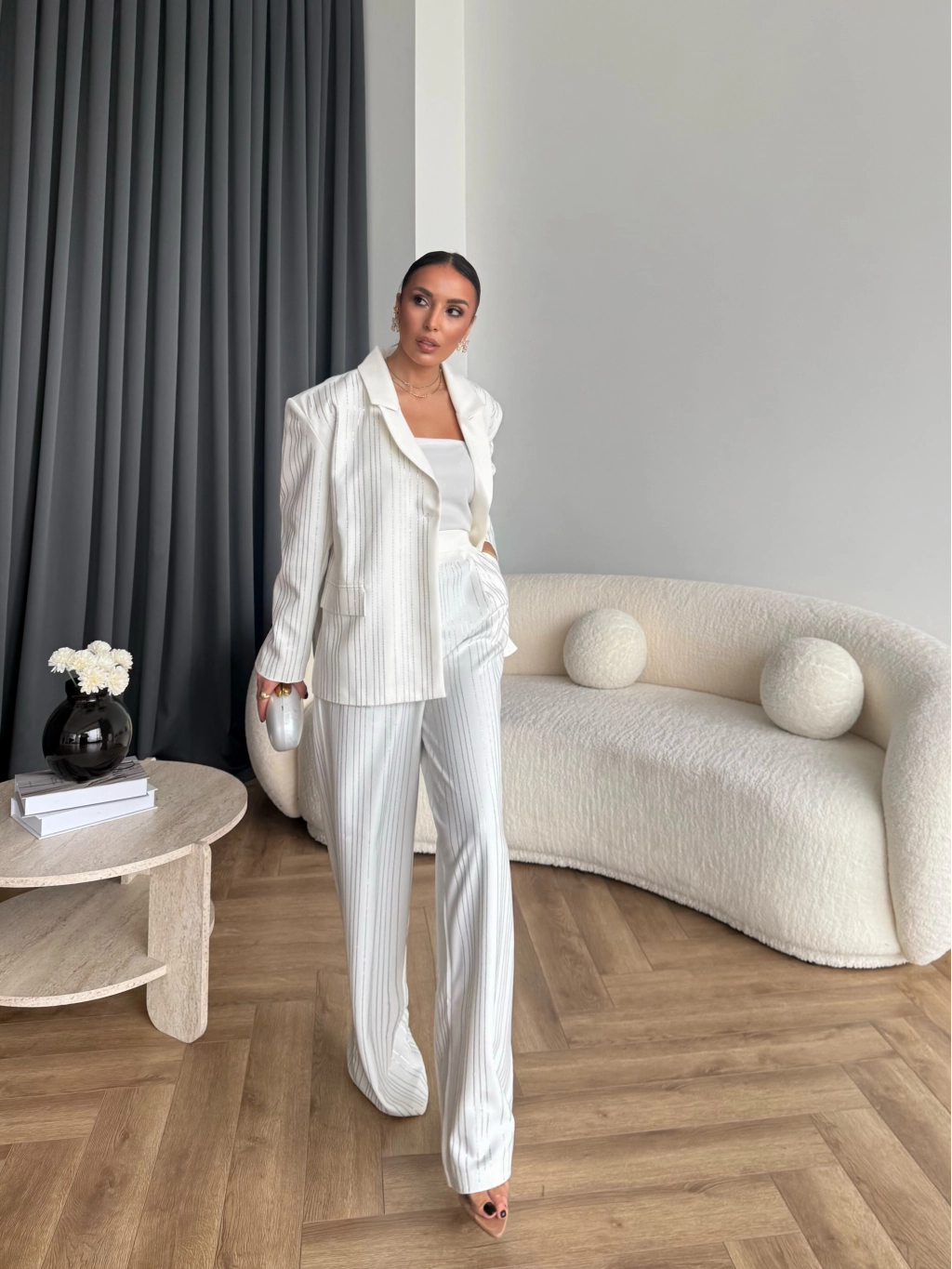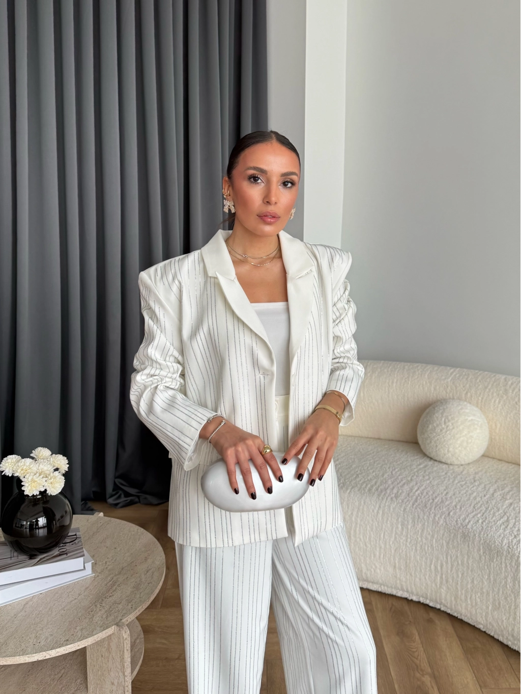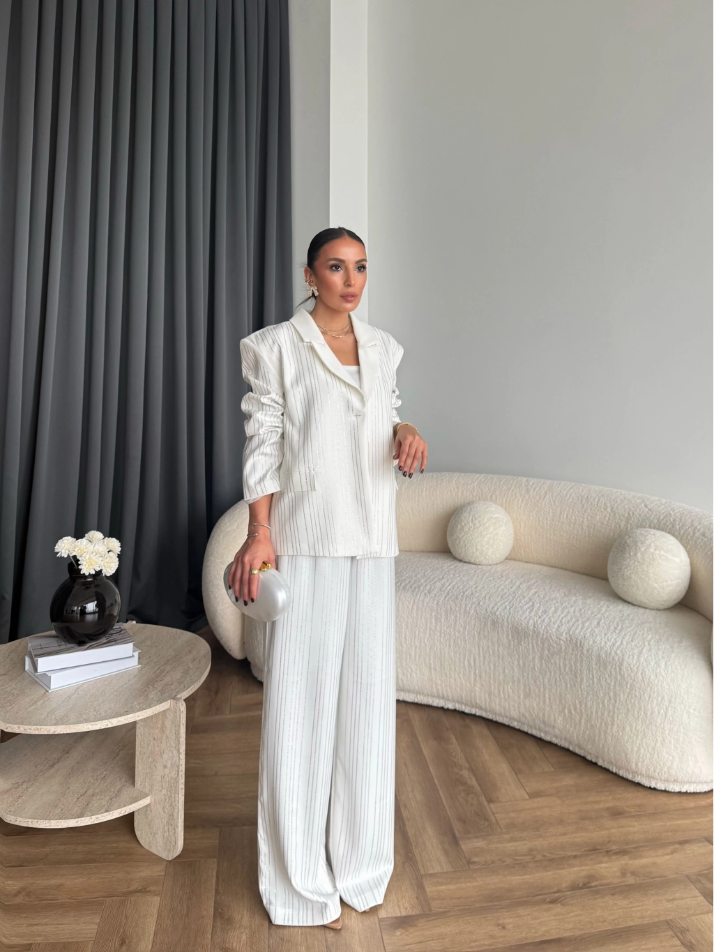 Asil Pırlanta Ceketli Takım - Beyaz