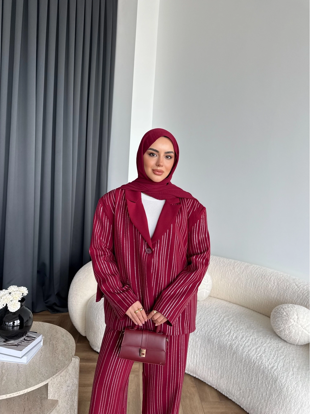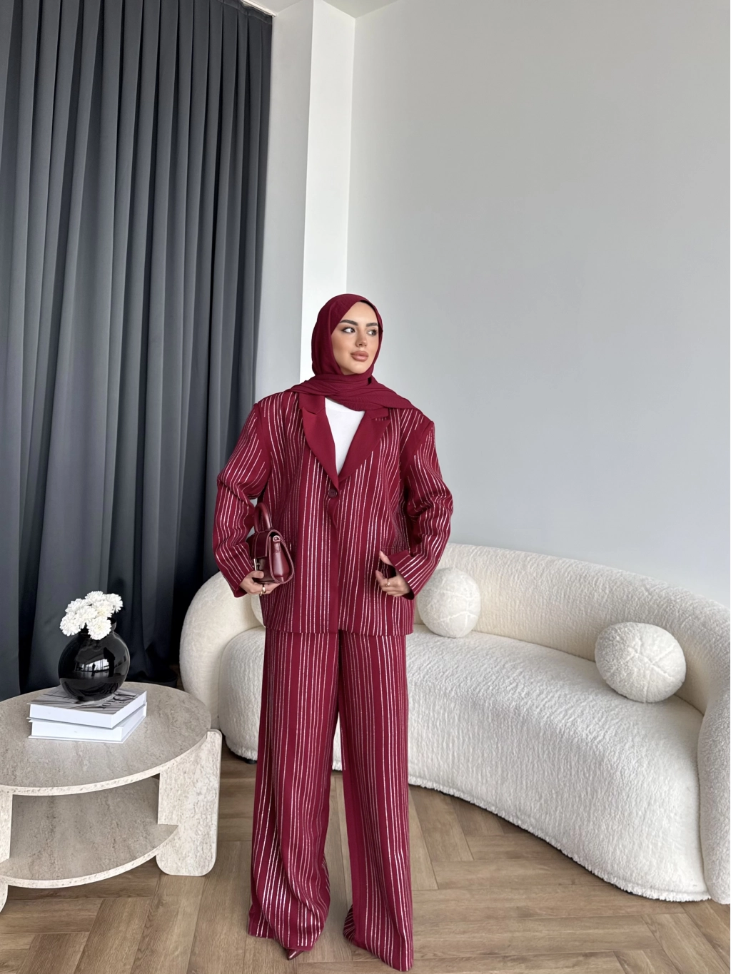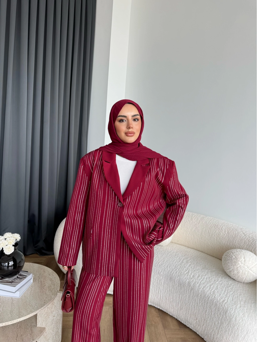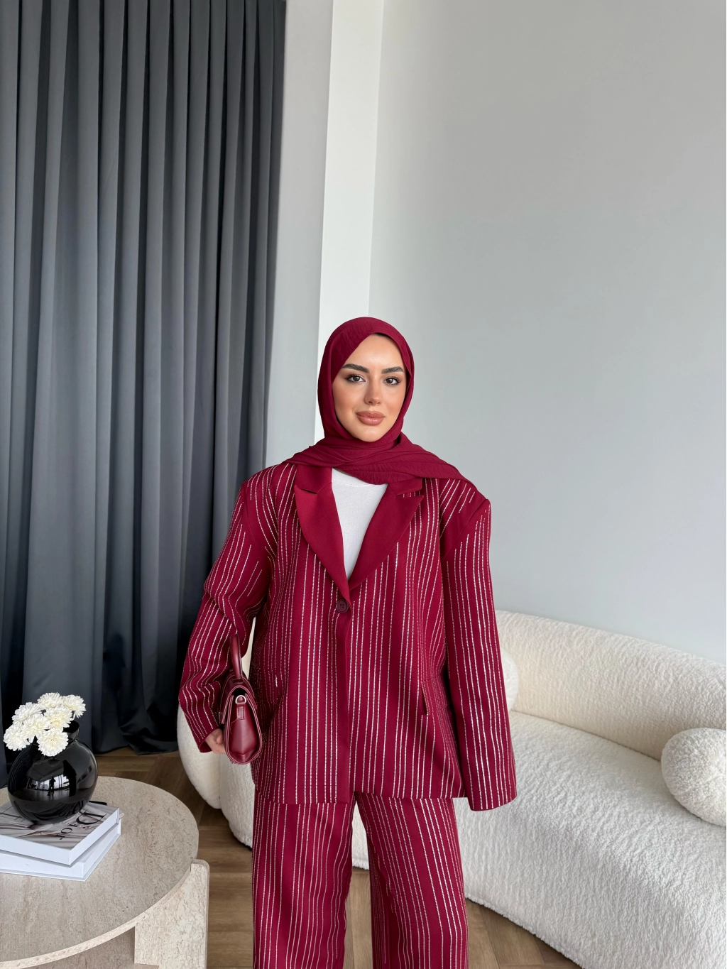 Asil Pırlanta Ceketli Takım - Bordo
