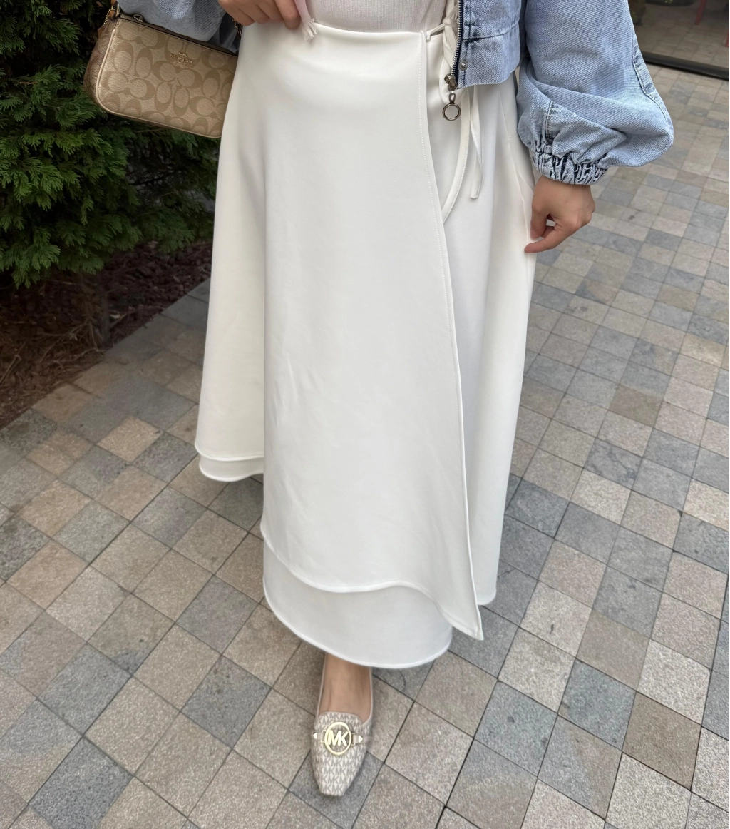 Bağcıklı Scuba Etek - Beyaz