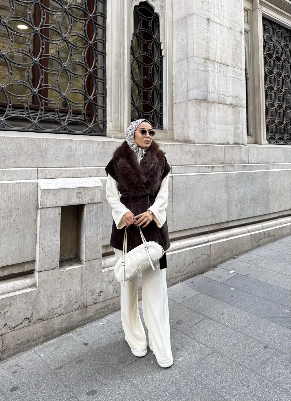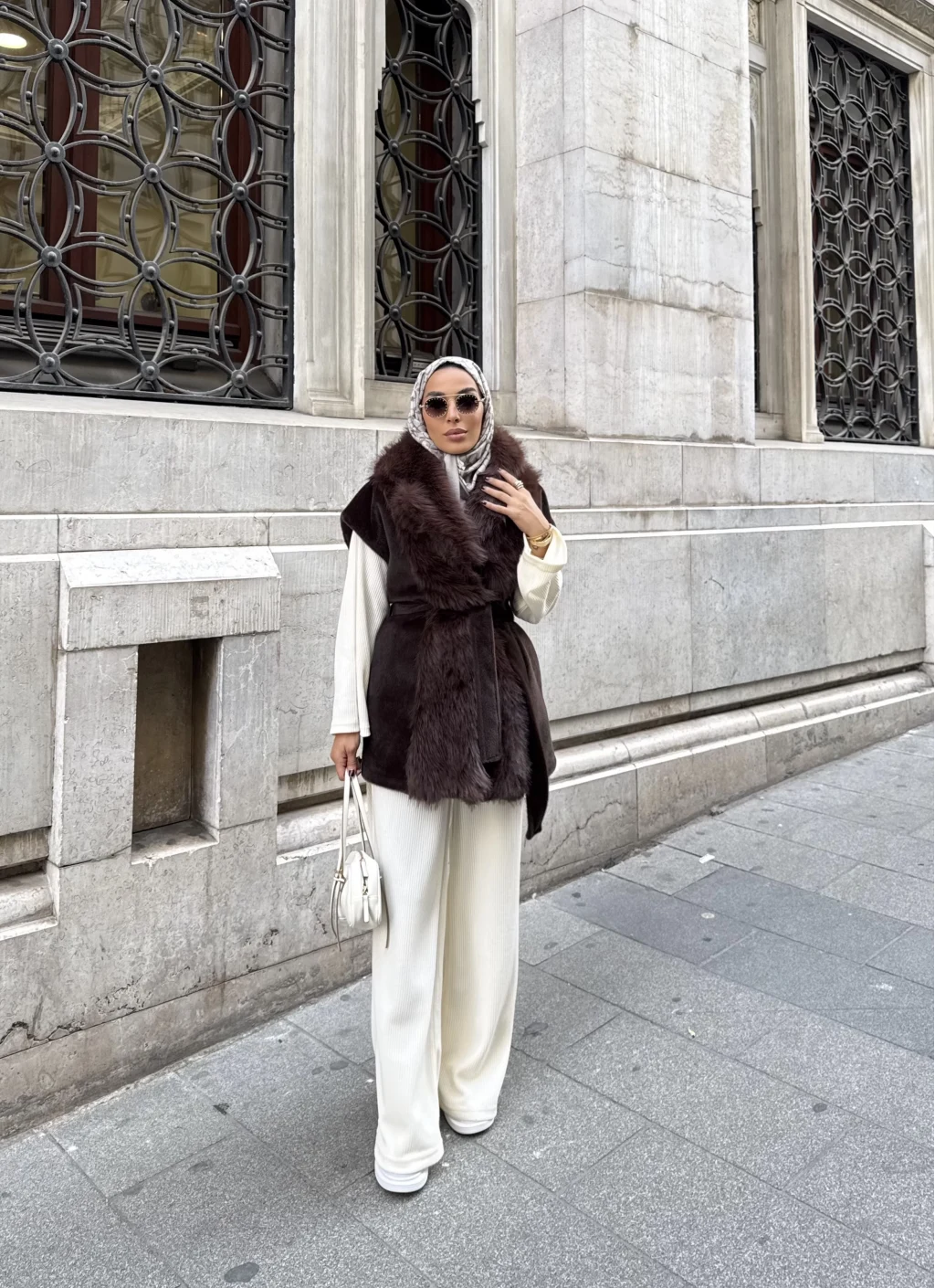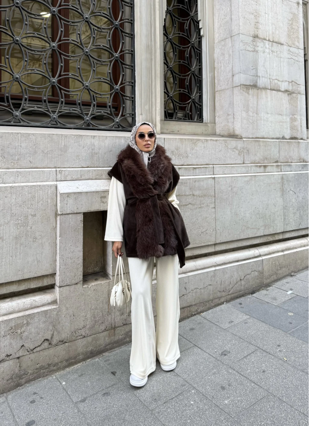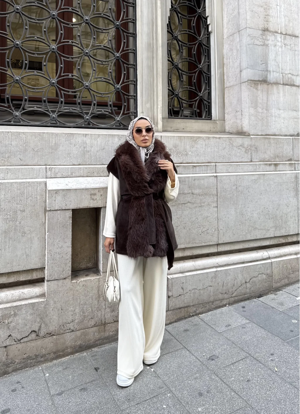 Polo Yaka Örgü Triko Takım - Acı Kahve