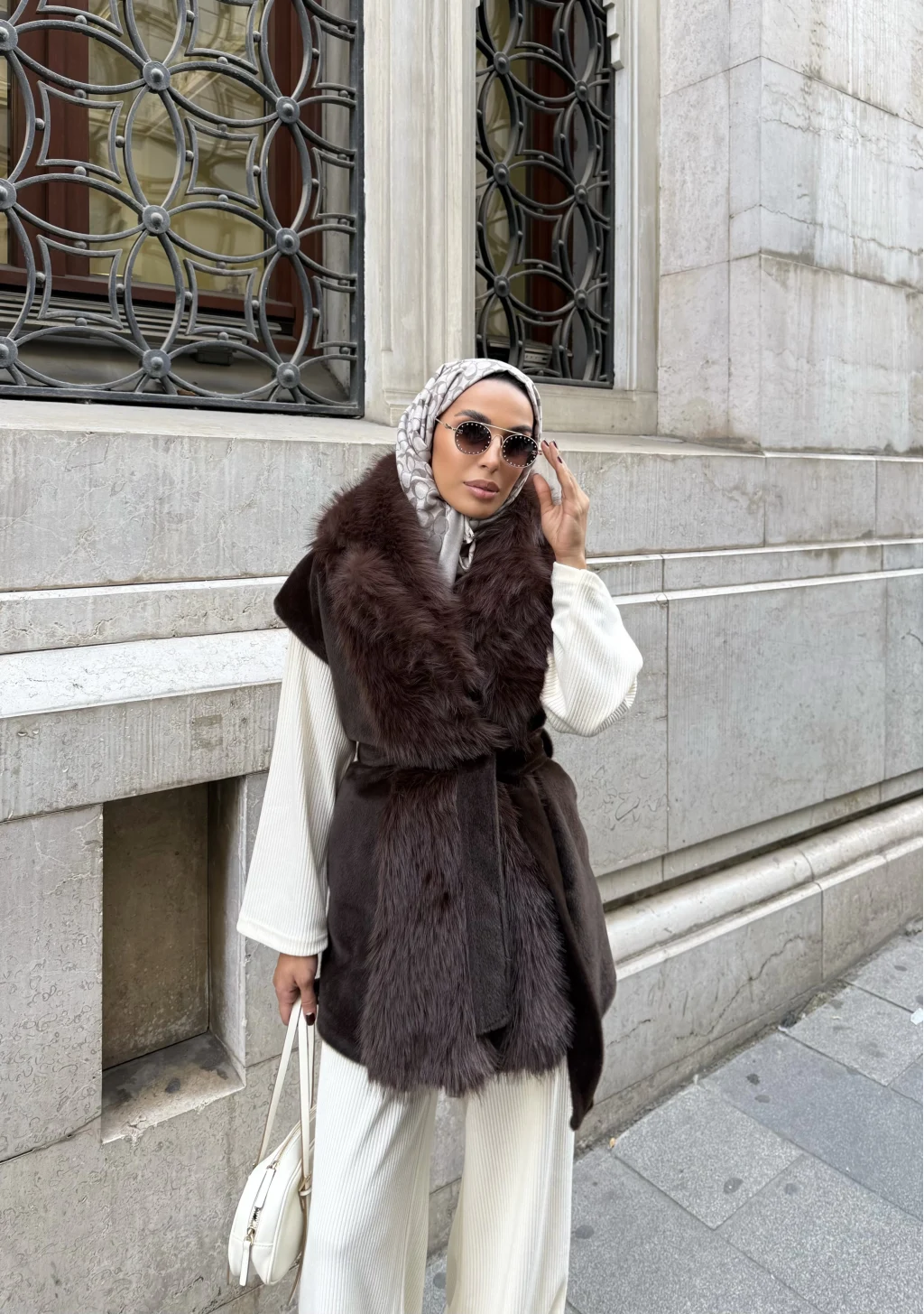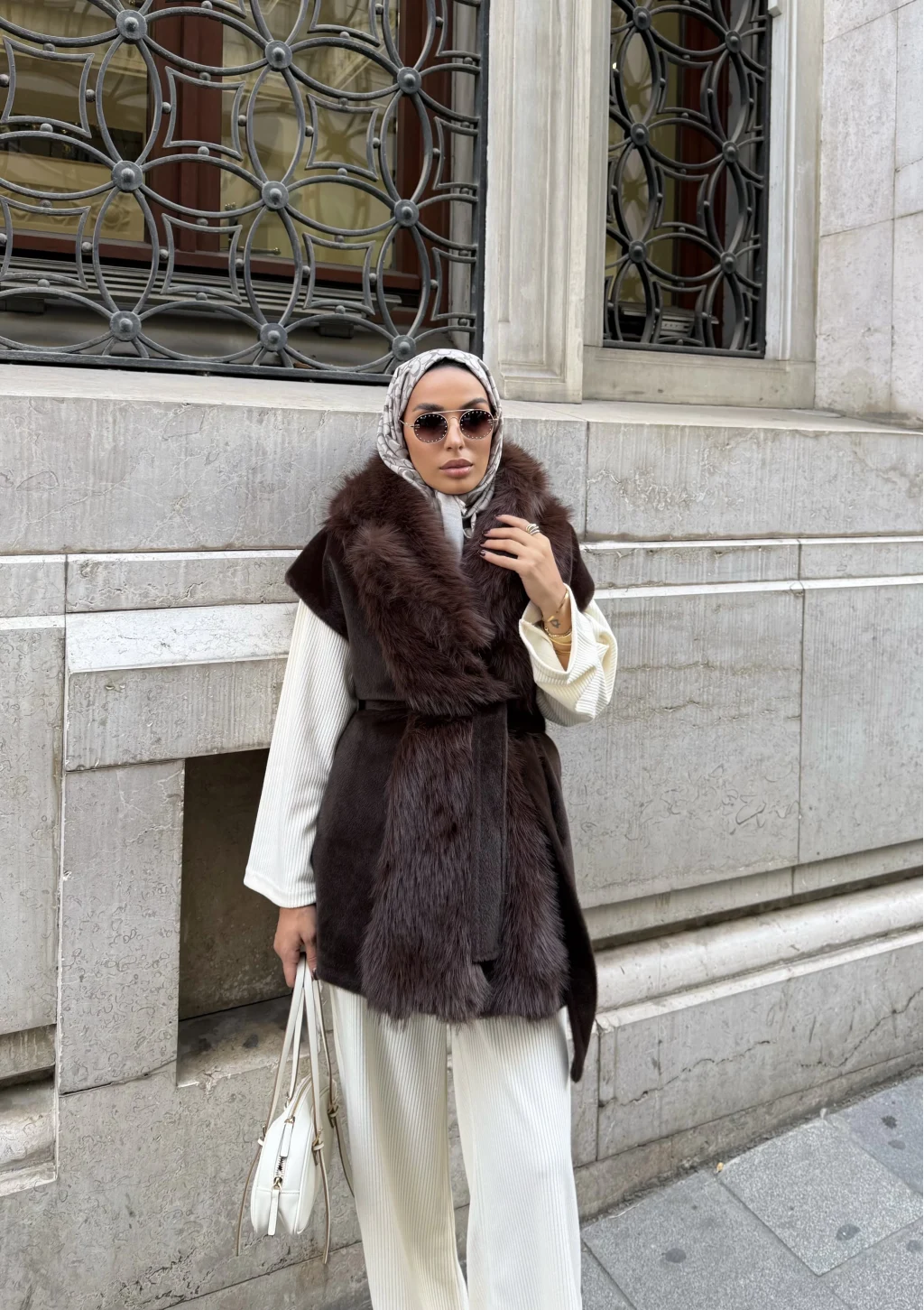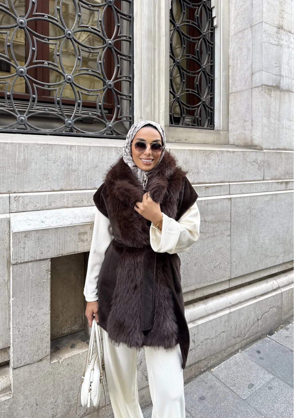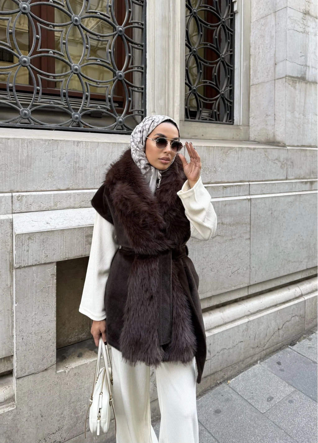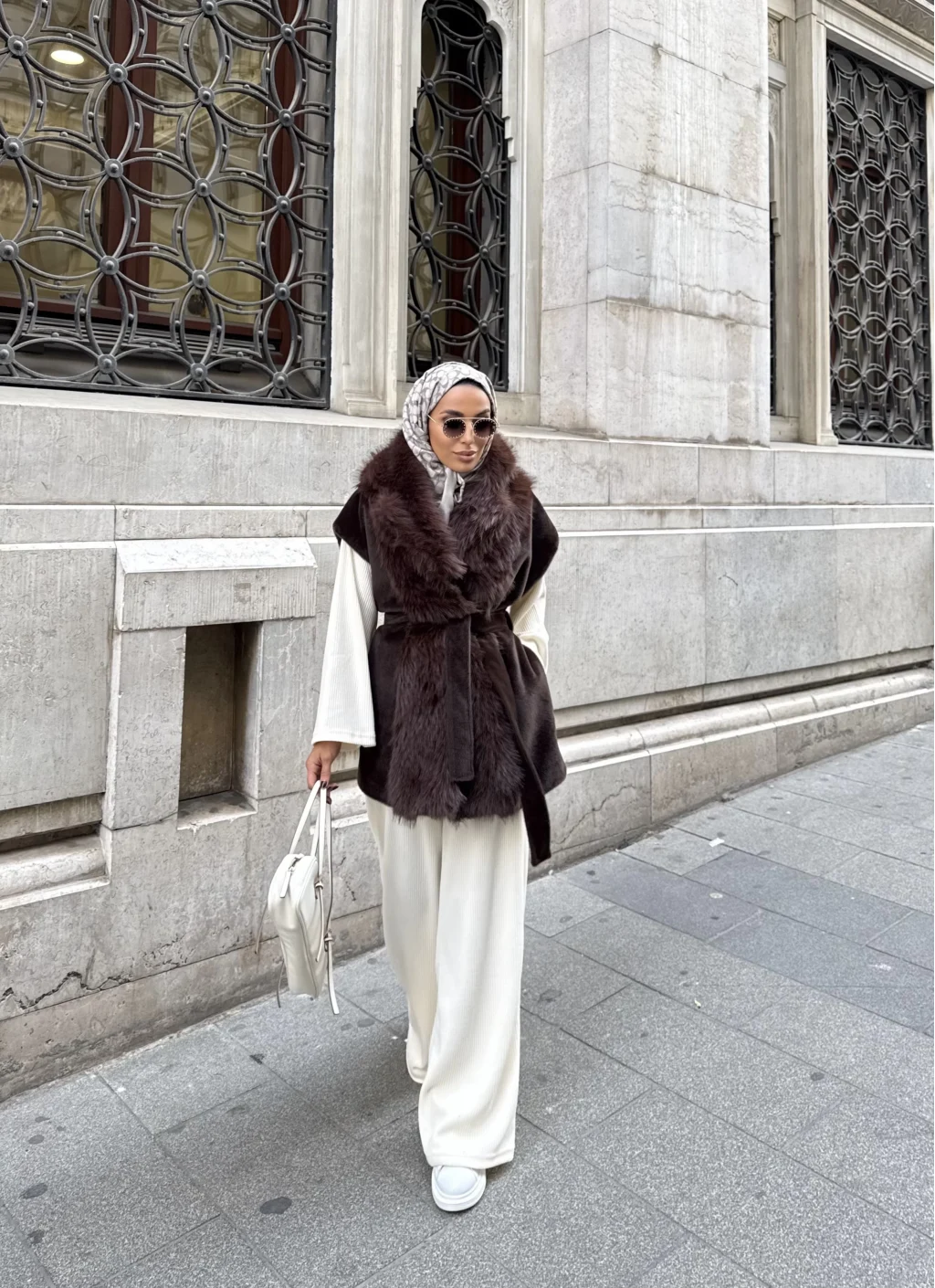 Polo Yaka Örgü Triko Takım - Acı Kahve