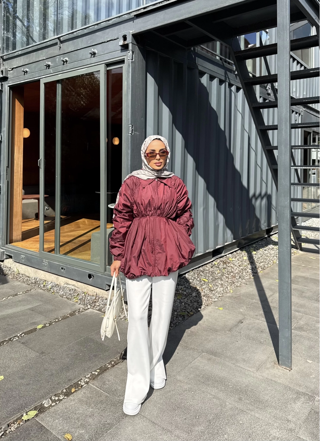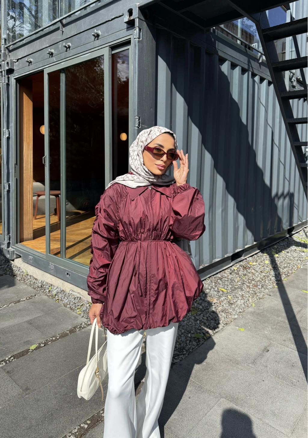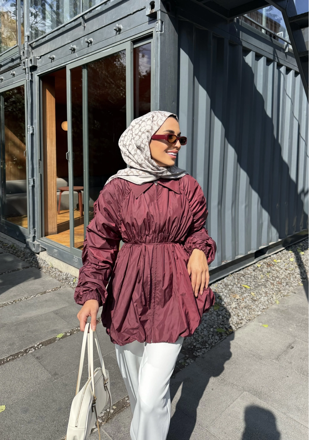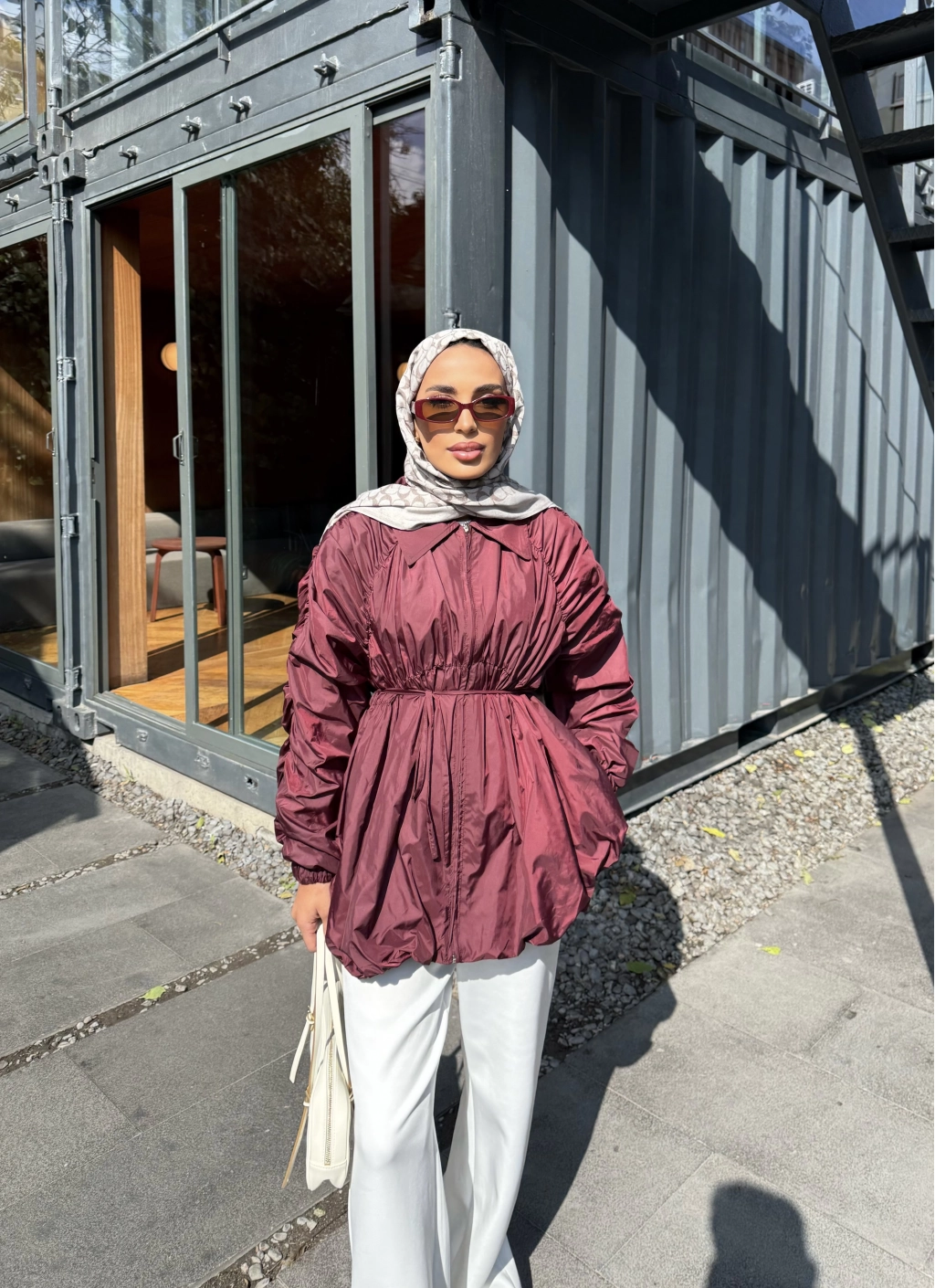 Belba Kol Büzgülü Trenç - Bordo
