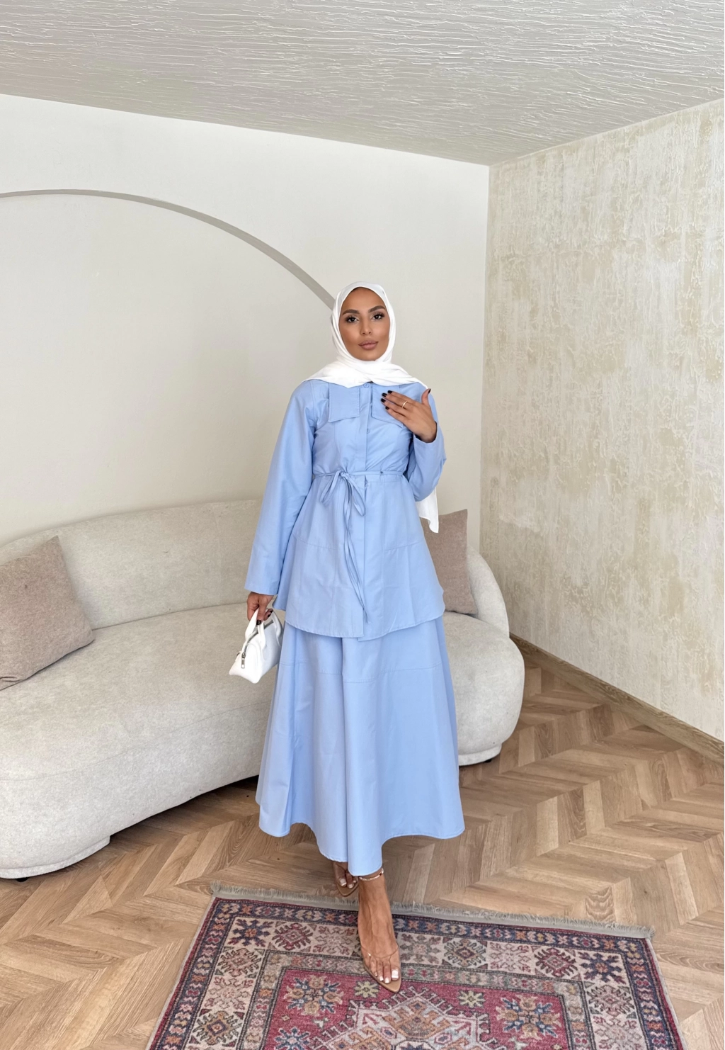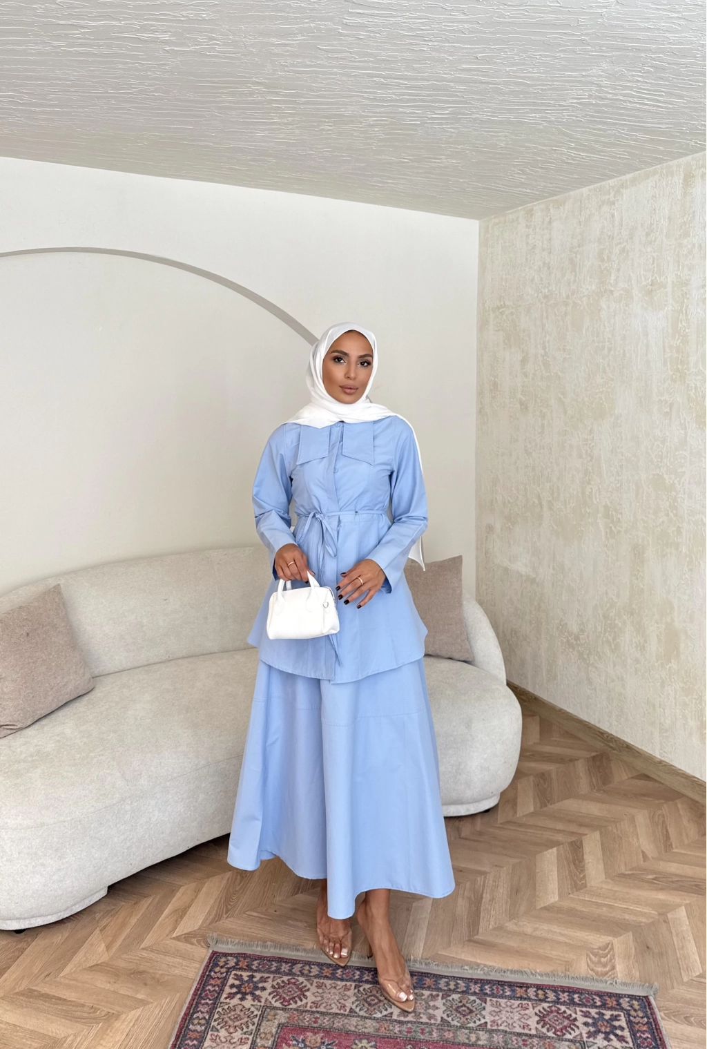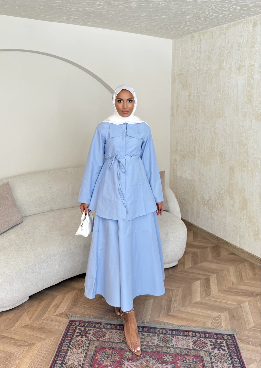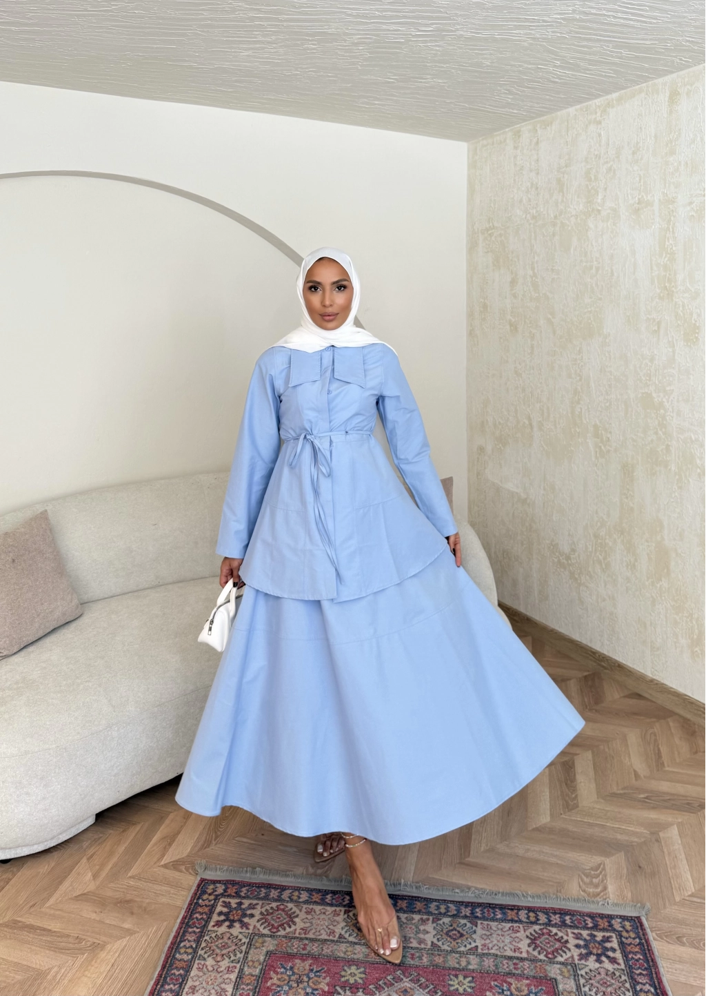 Belden Oturtmalı Etekli Takım - Mavi