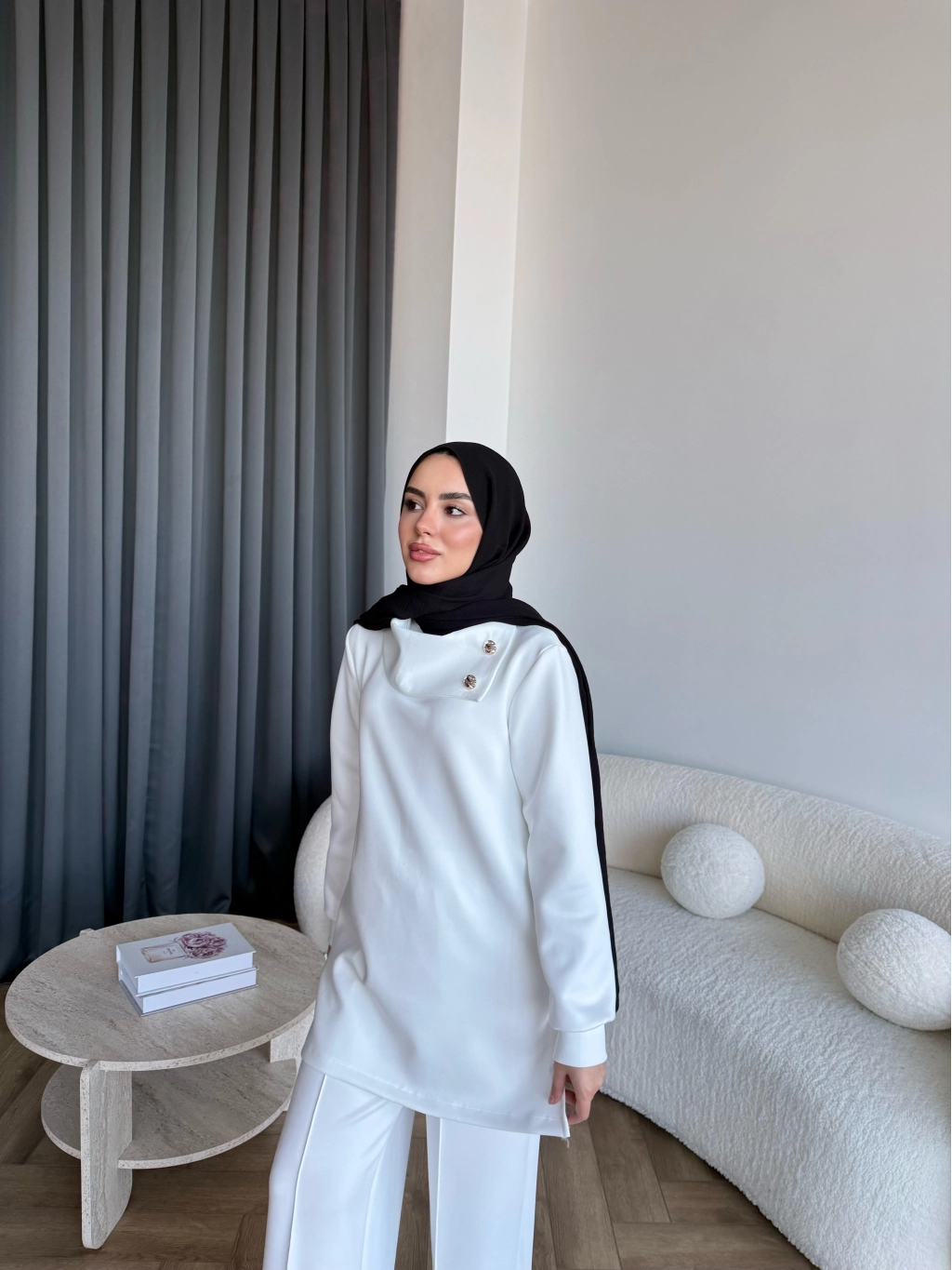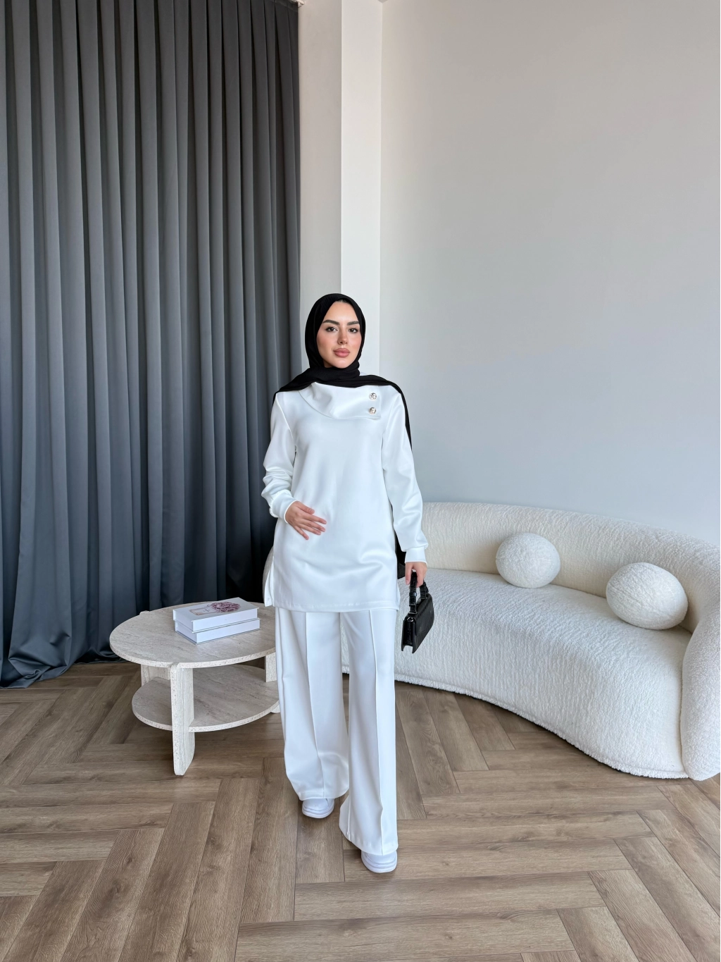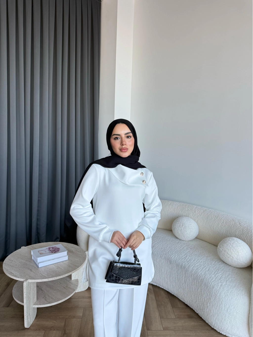 Btç-Freyi Gold Düğme Detay Scuba Takım - Beyaz