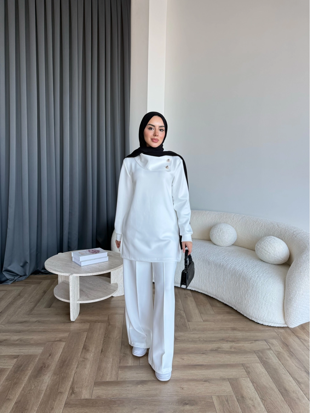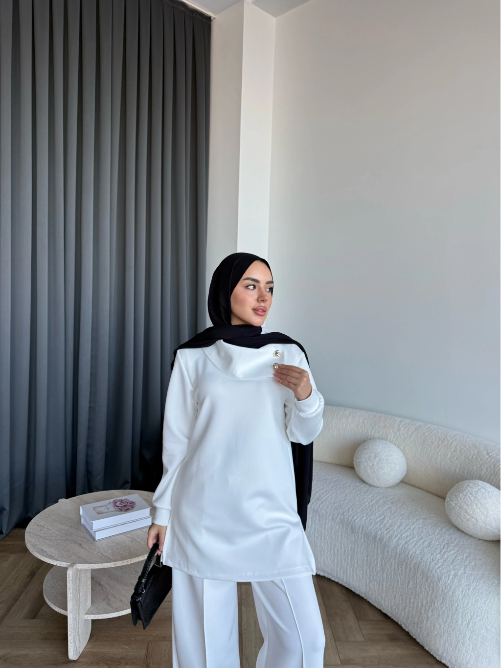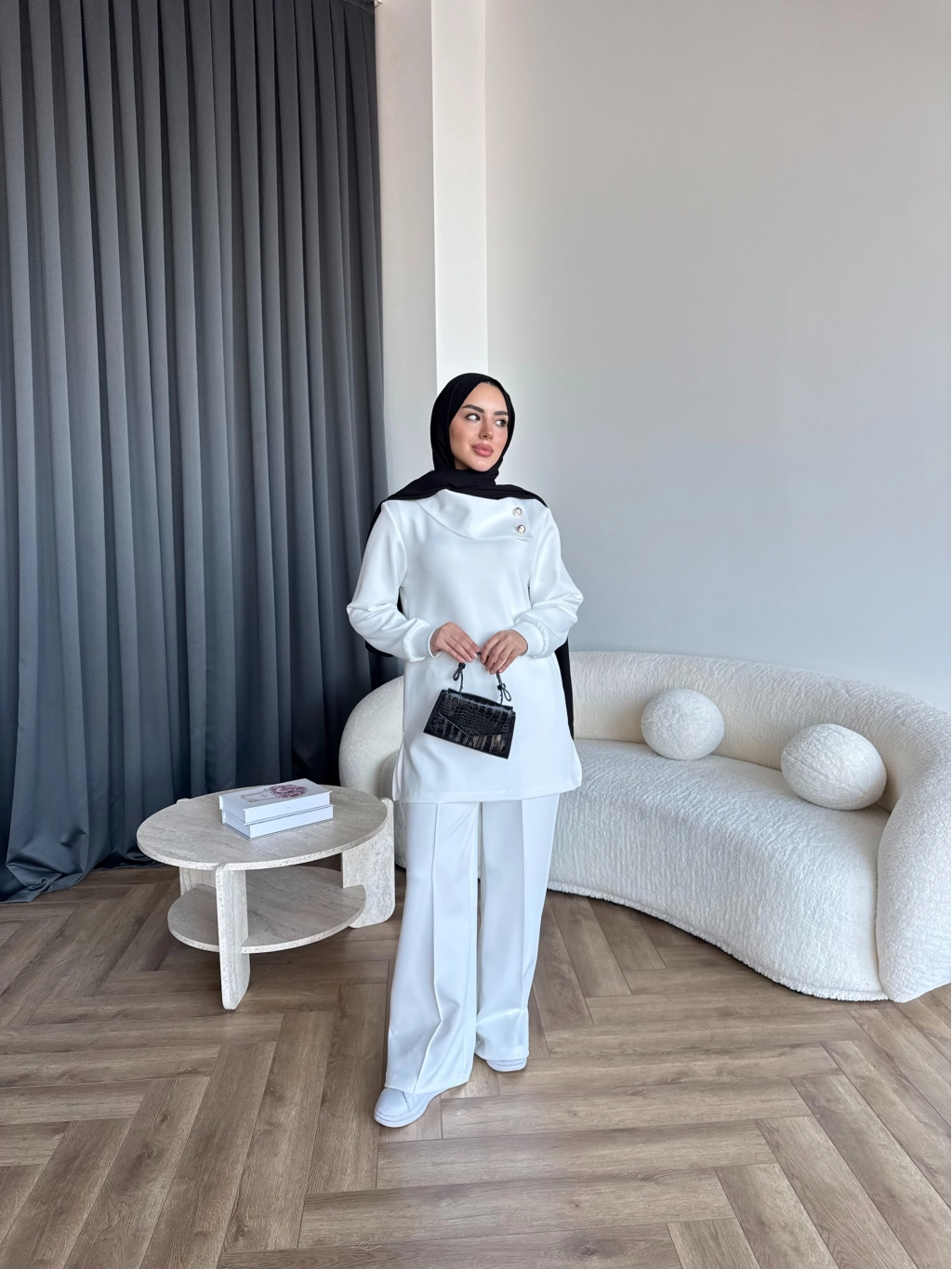 Btç-Freyi Gold Düğme Detay Scuba Takım - Beyaz