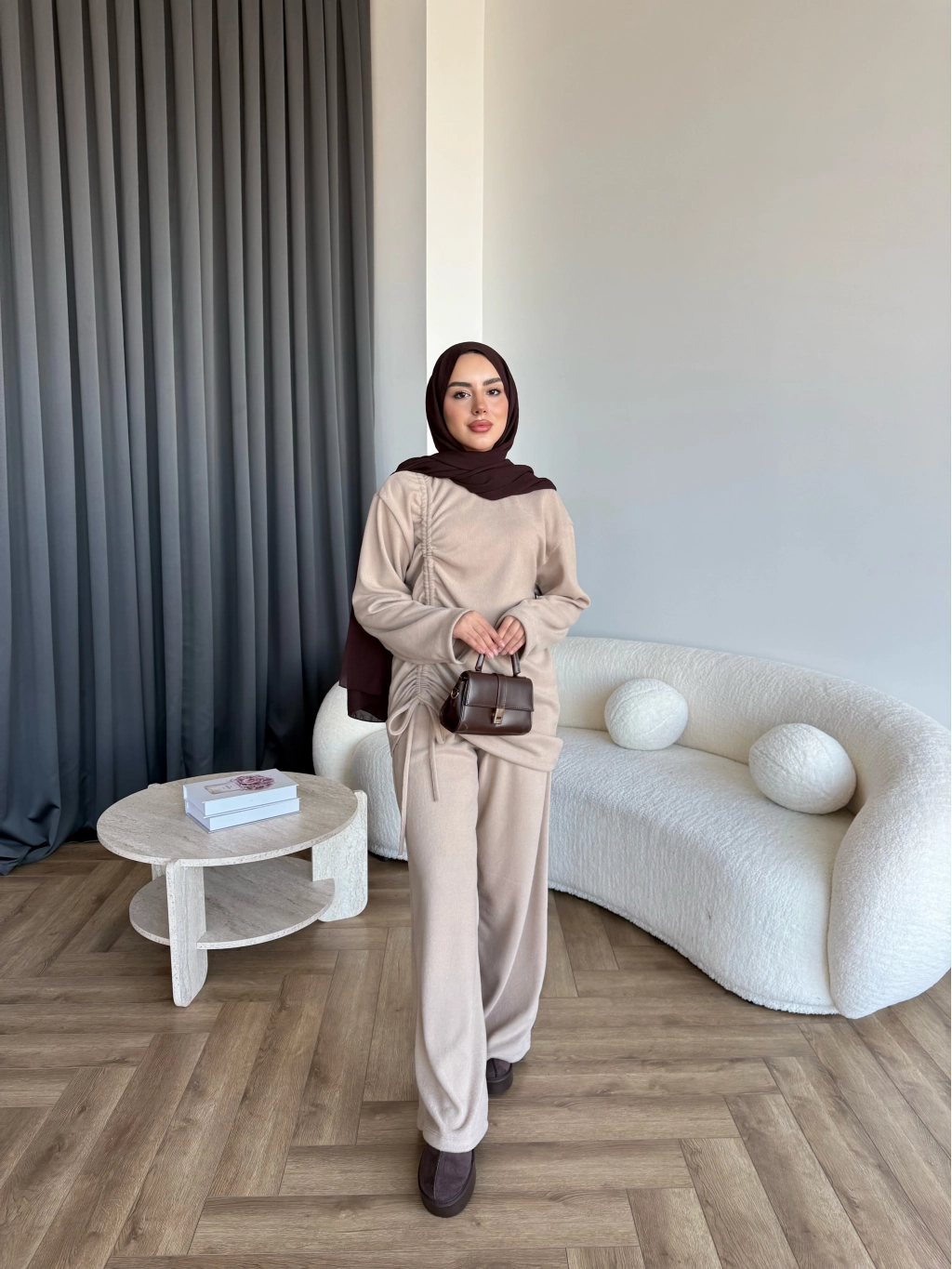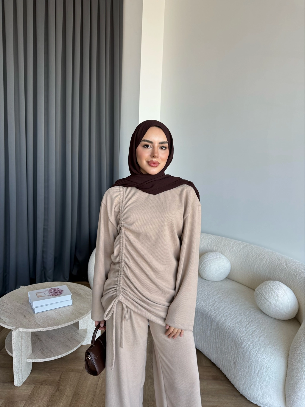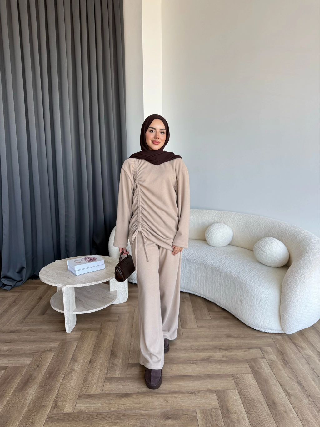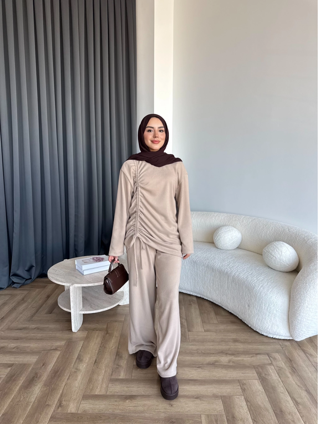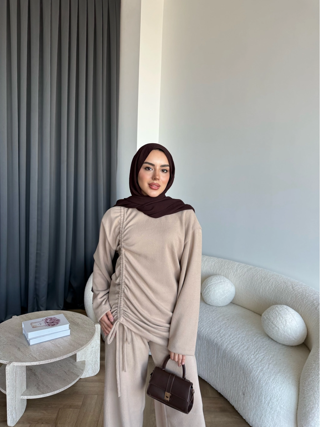 Btç-Özdet Yan Büzgülü Takım - Bej