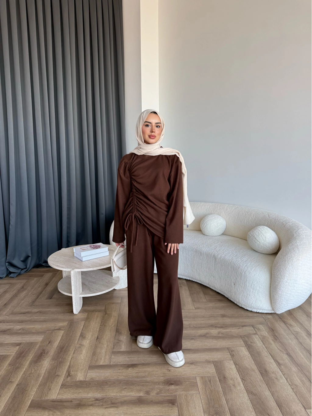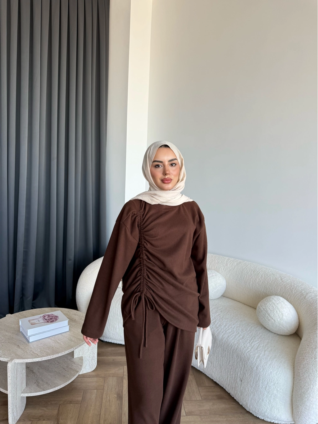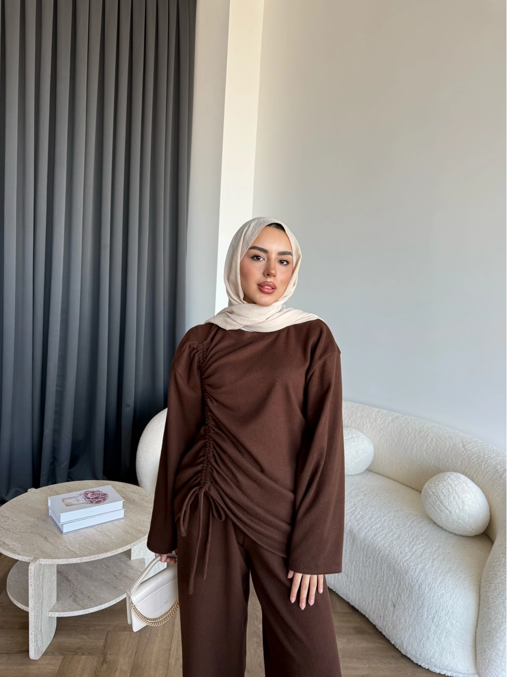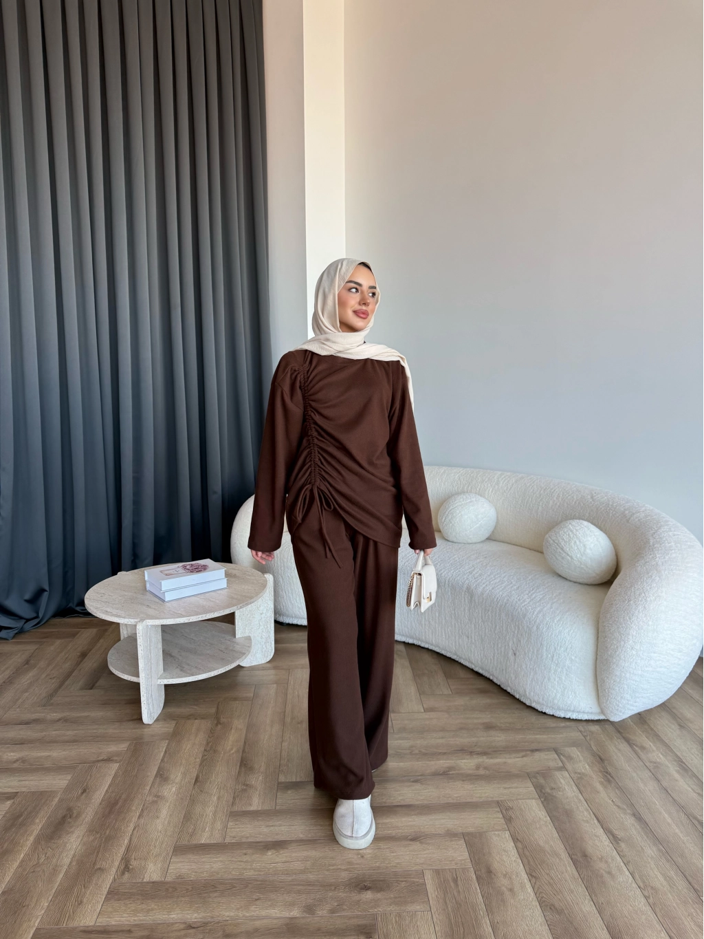 Btç-Özdet Yan Büzgülü Takım - Kahve