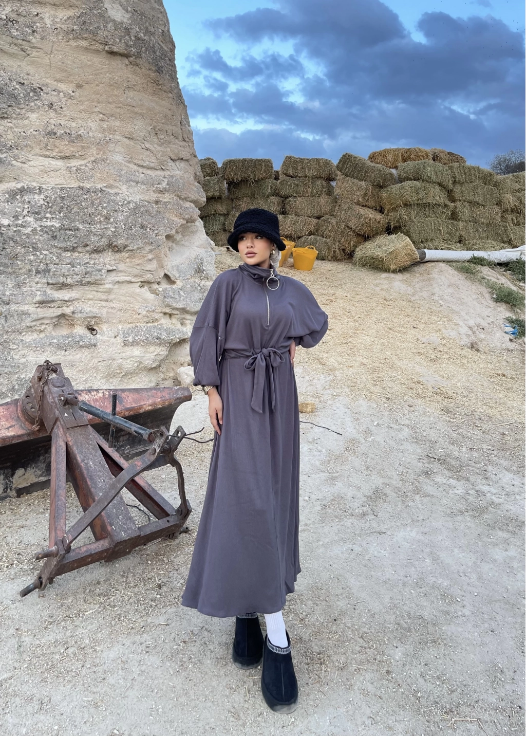 Mb- Berly Atkı Detay Triko Takım - Gri