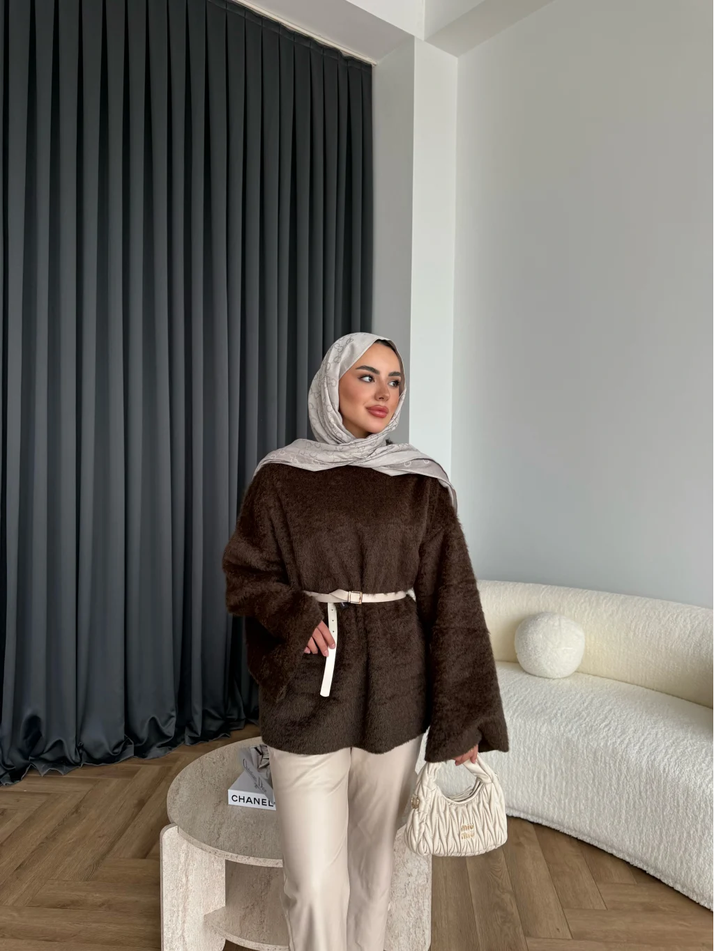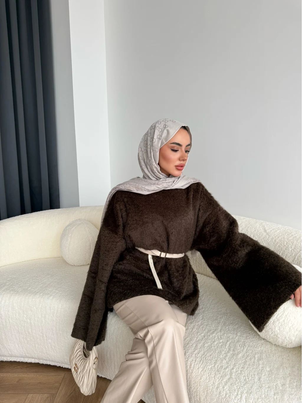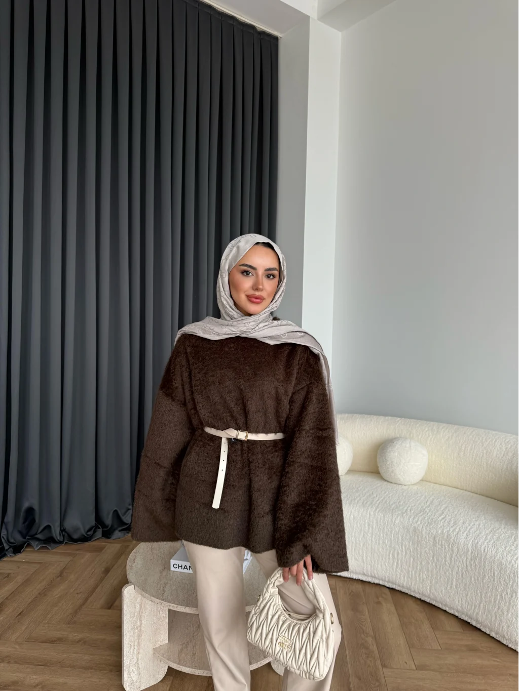 Polo Yaka Örgü Triko Takım - Acı Kahve