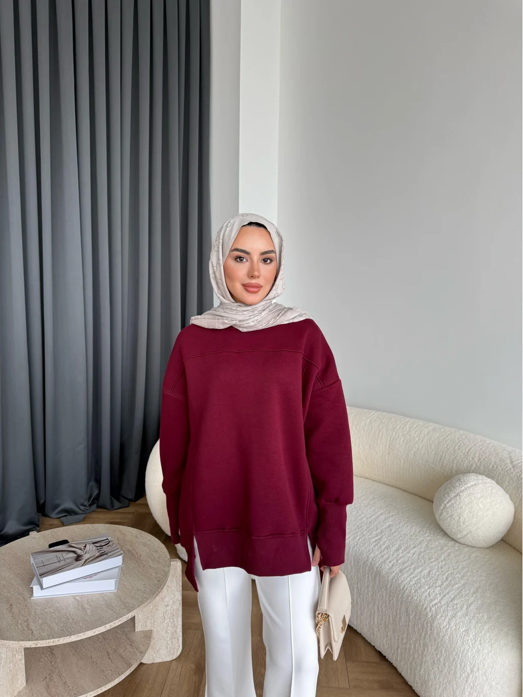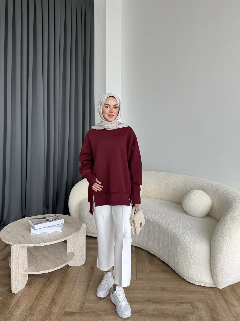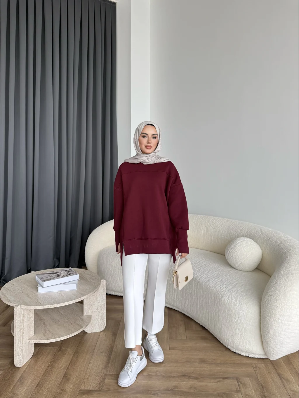 Yanı Kesik Paça Scuba Pantolon - Bordo