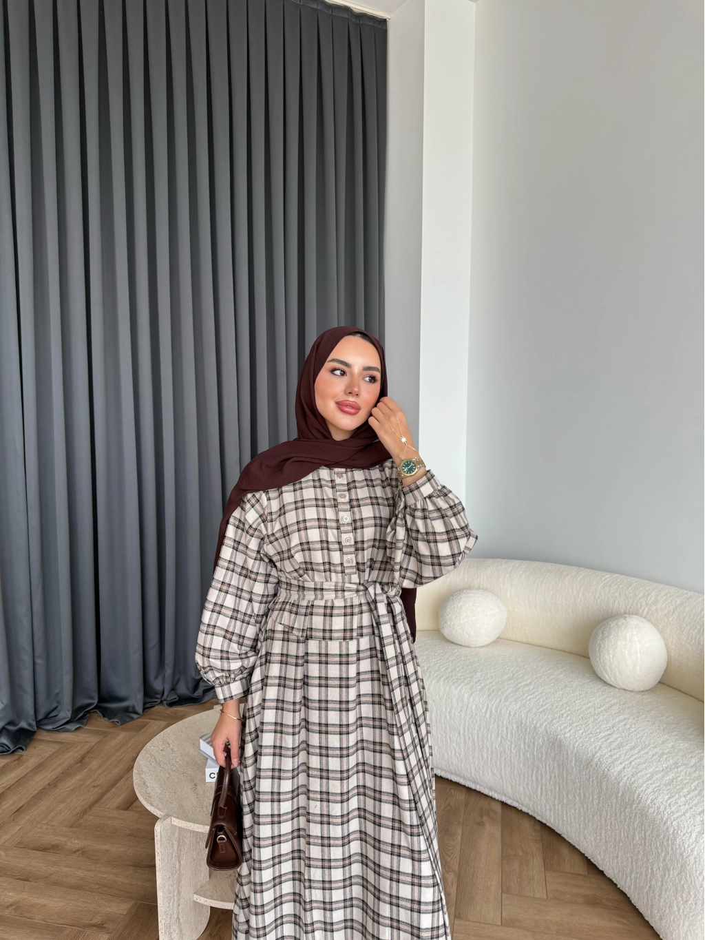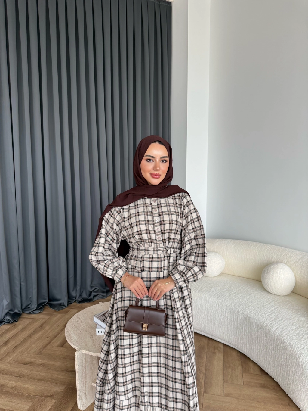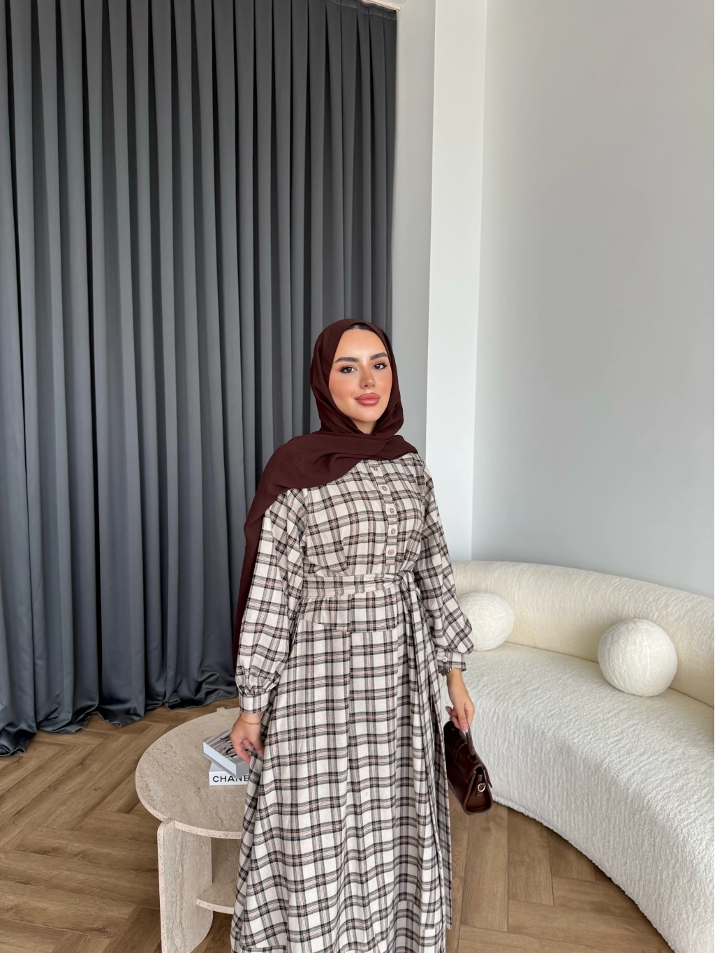 Doria Kareli Elbise - Bej