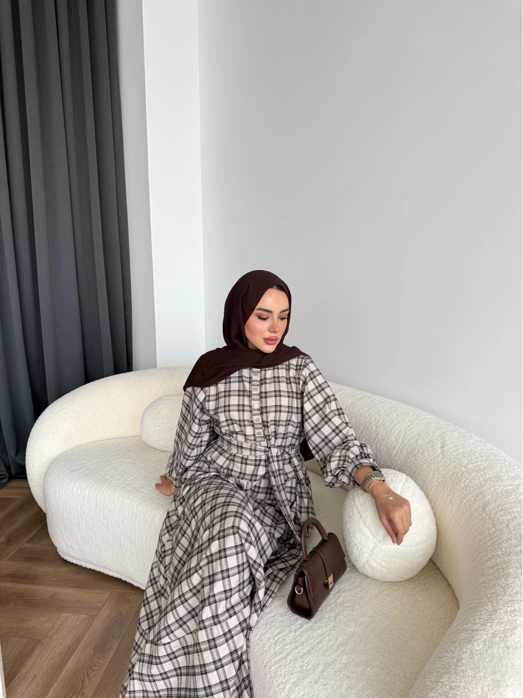 Hen - Luzy Şifon Elbise - Kahve