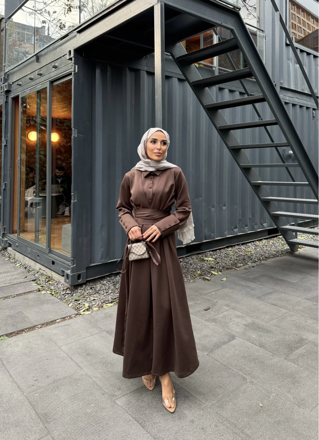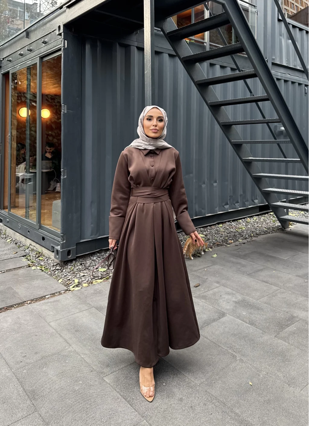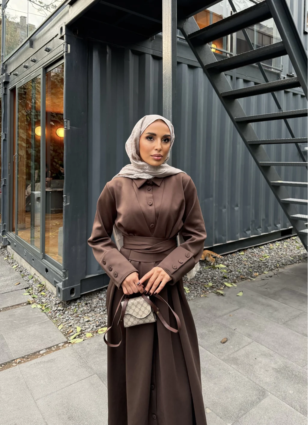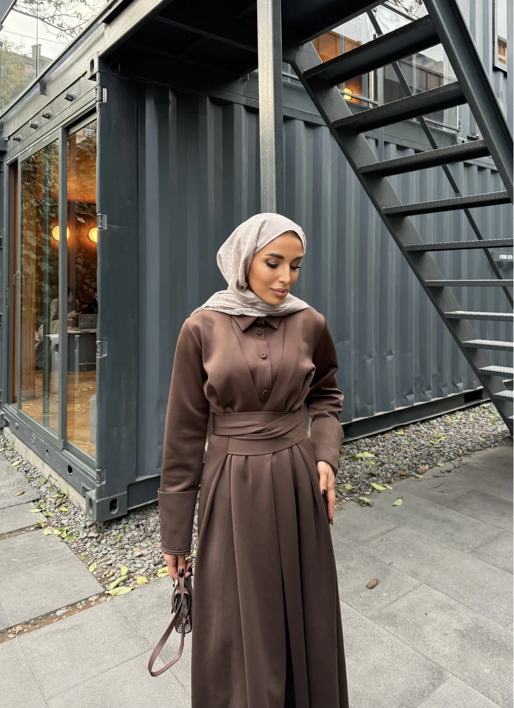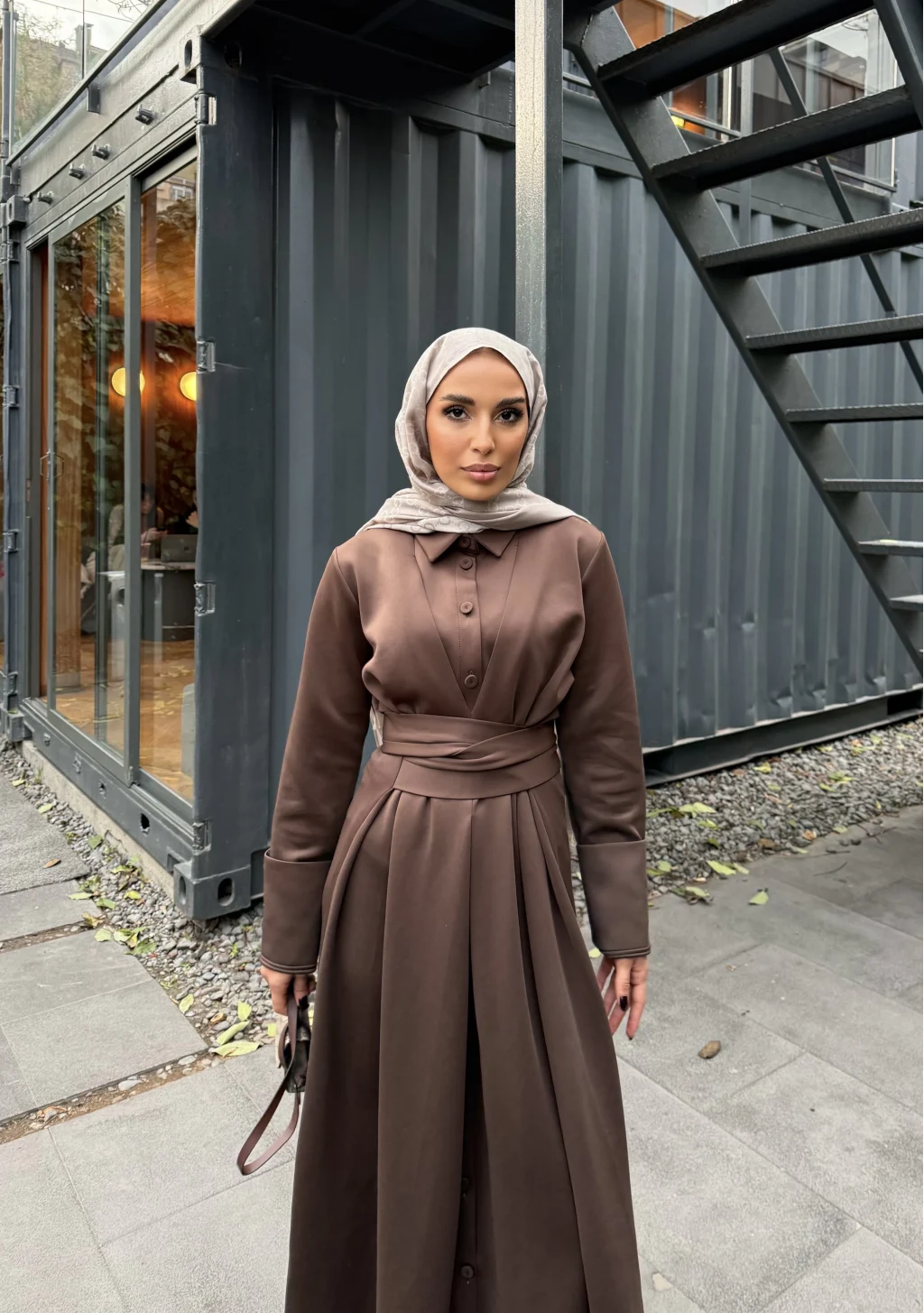 Düğme Detaylı Scuba Elbise - Kahve