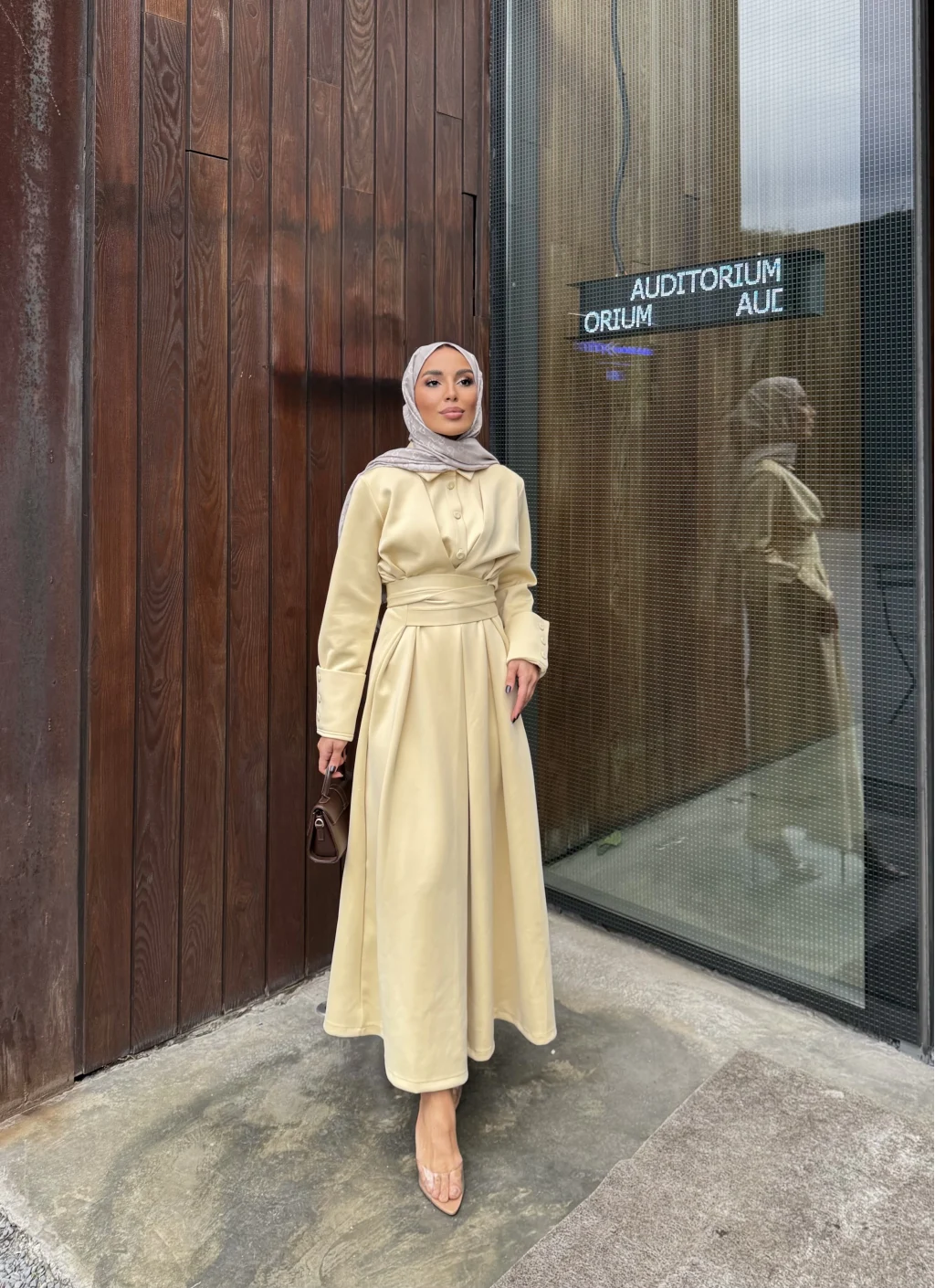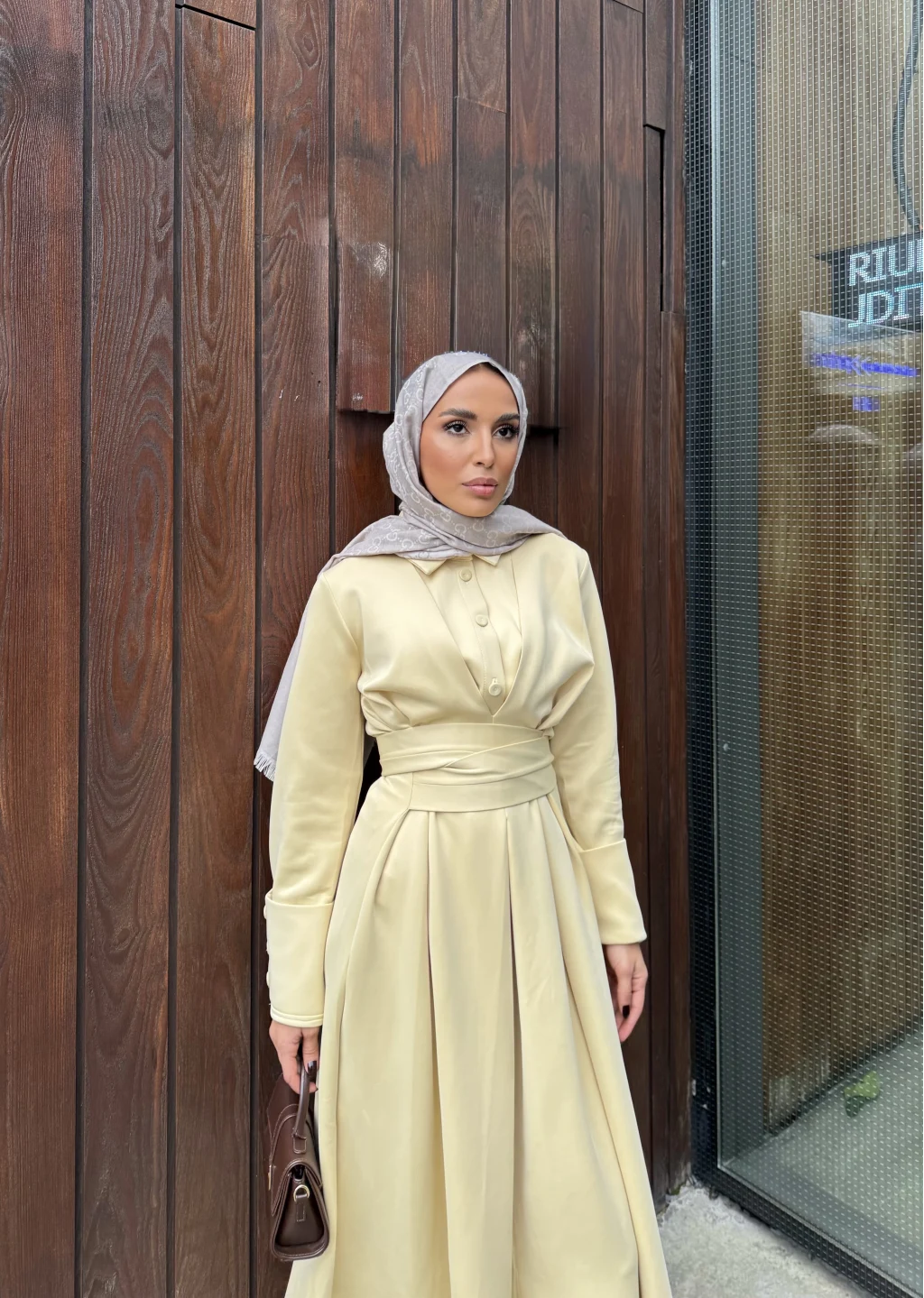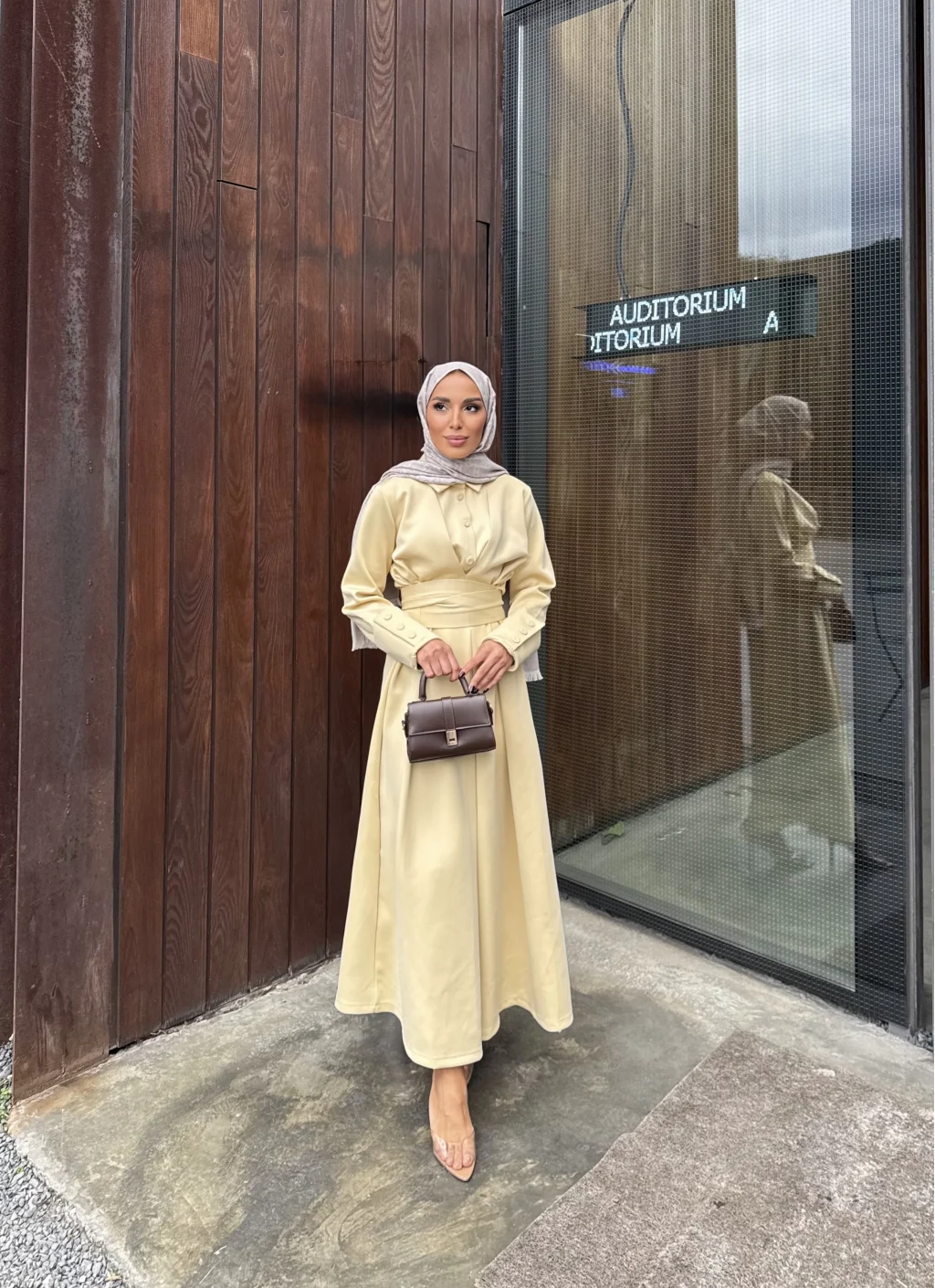 Düğme Detaylı Scuba Elbise - Sarı