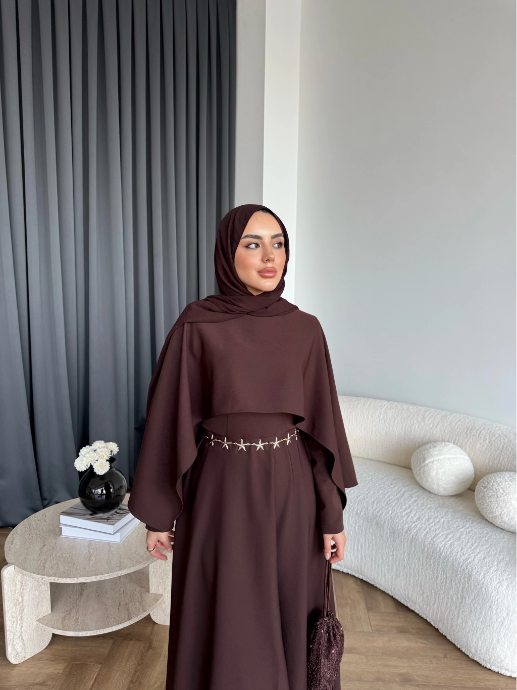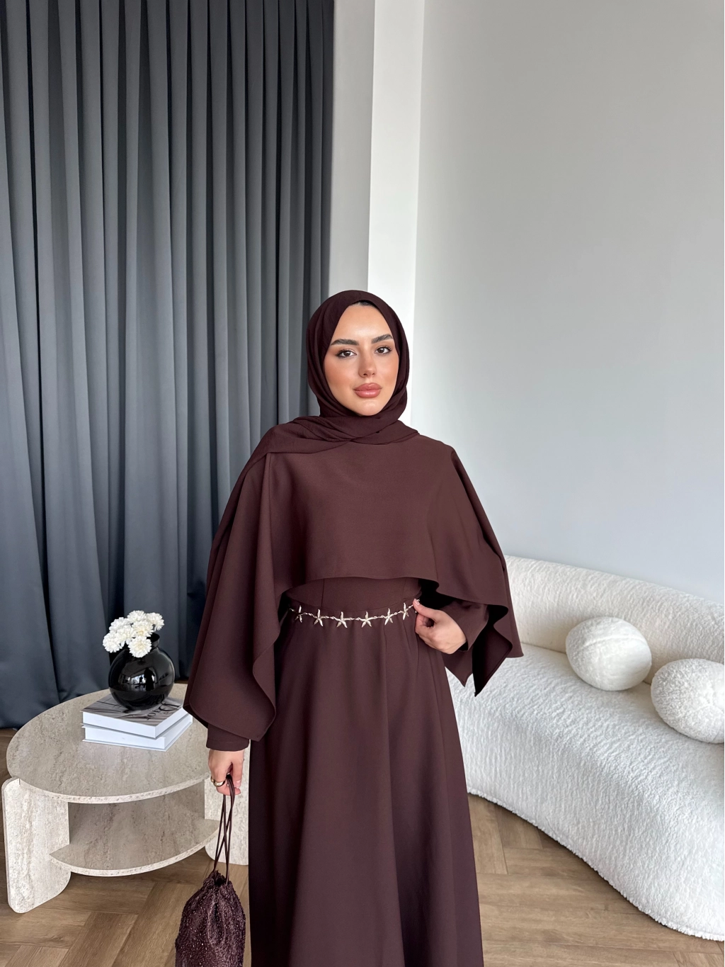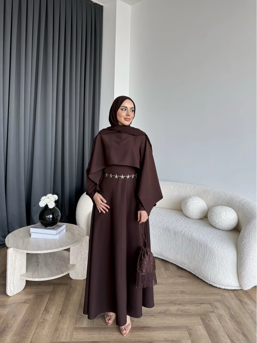Duq - Ledtan Pelerin Yaka Elbise - Acı Kahve