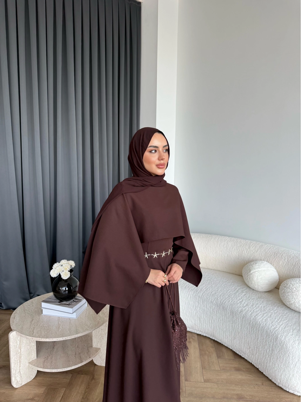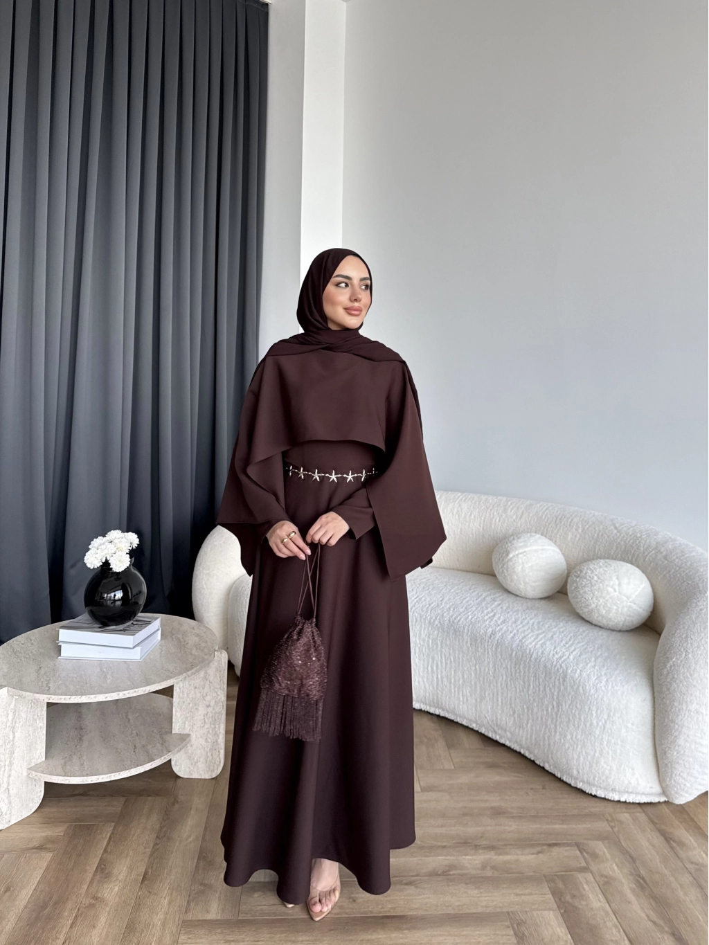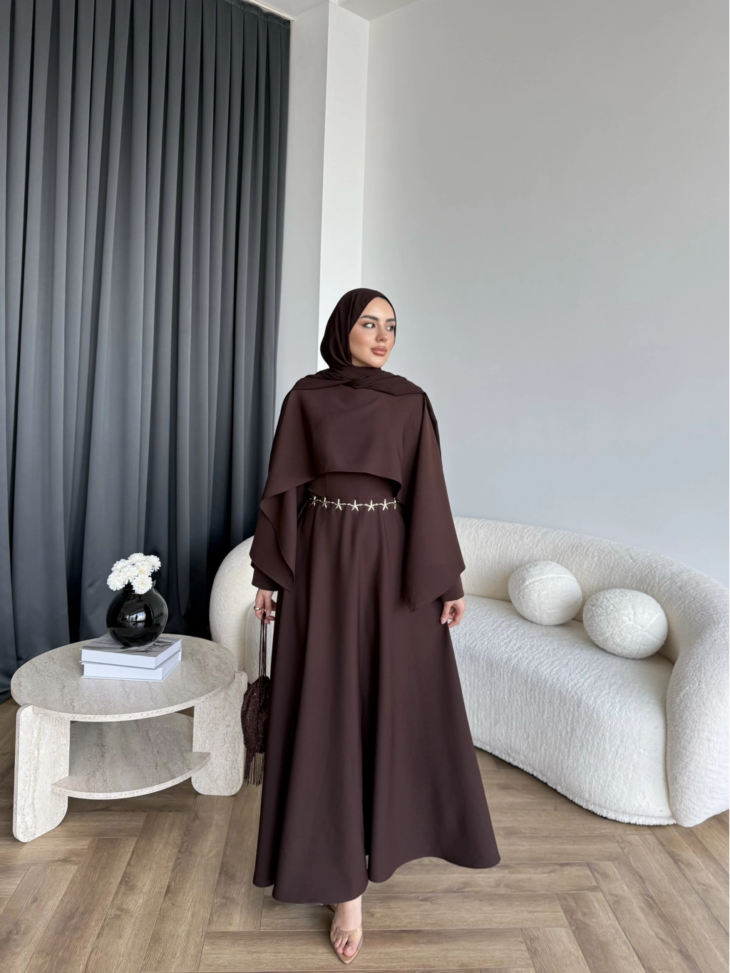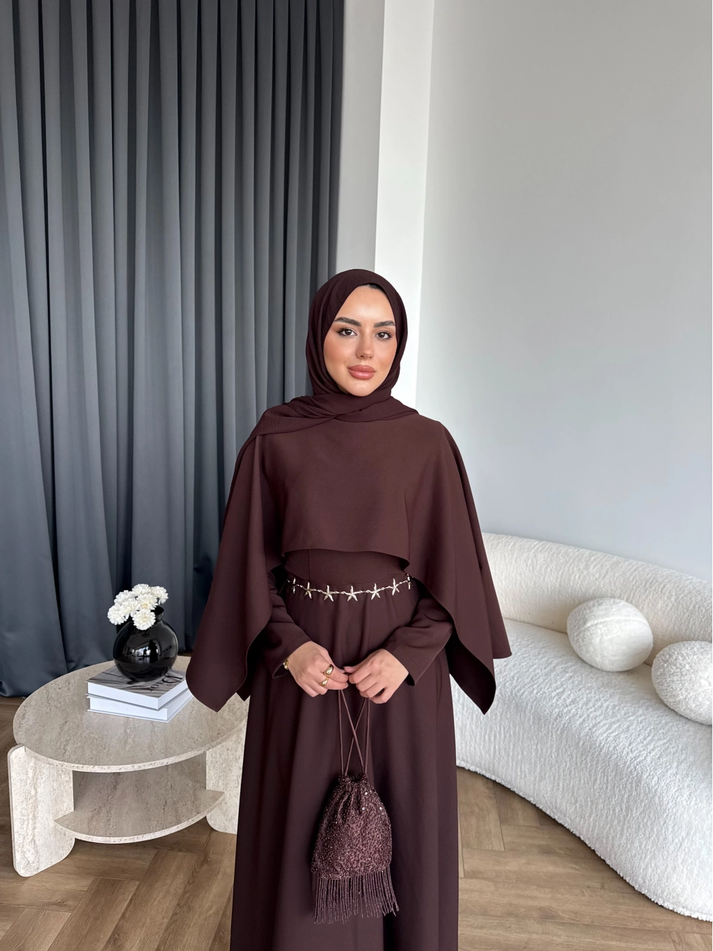 Duq - Ledtan Pelerin Yaka Elbise - Acı Kahve