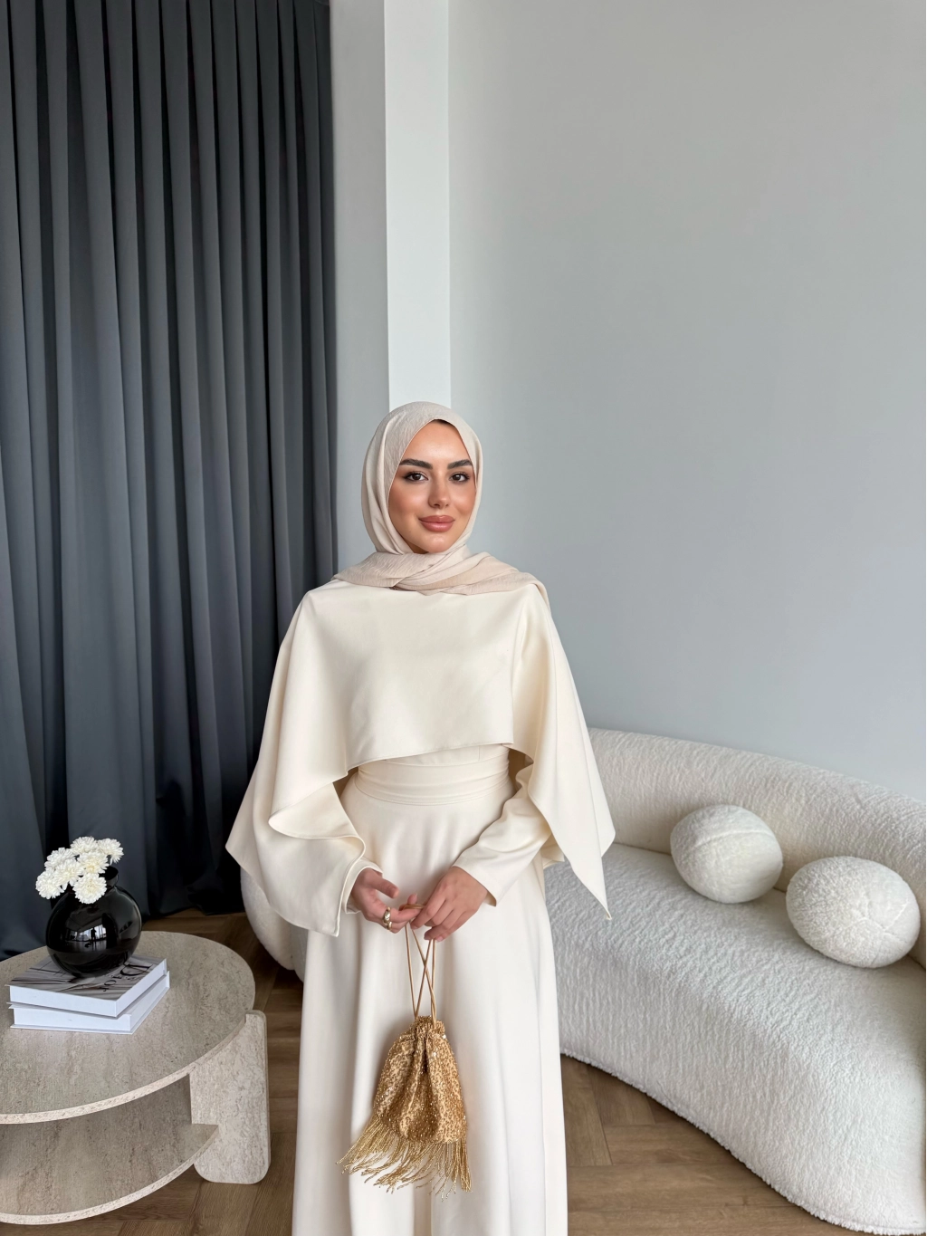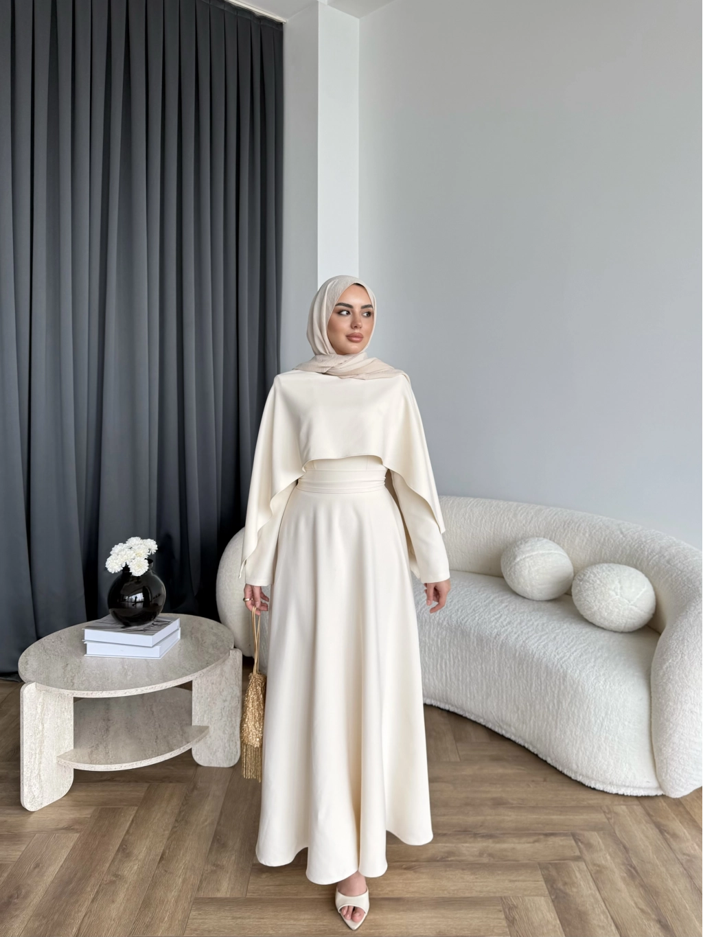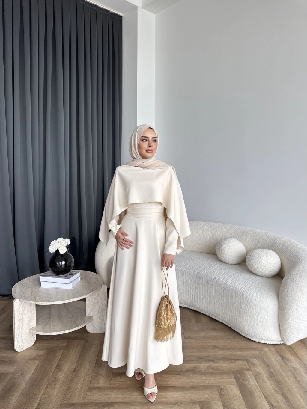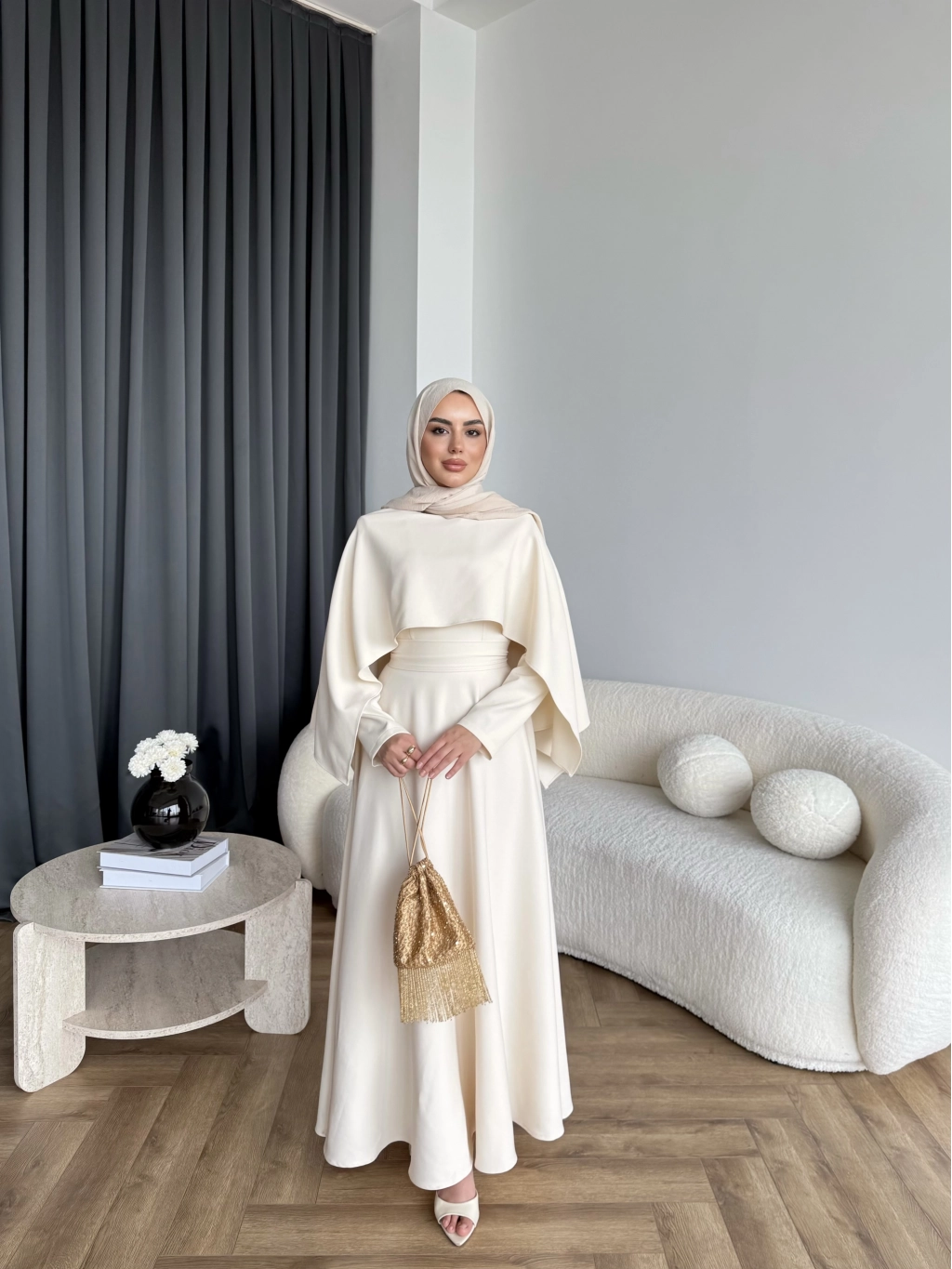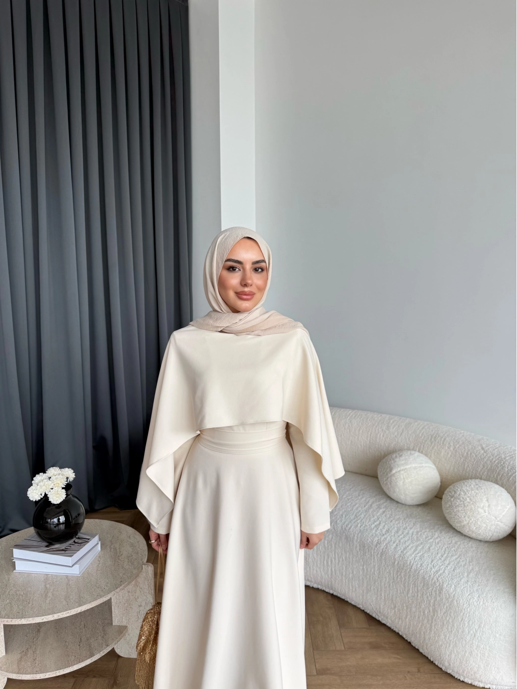 Duq - Ledtan Pelerin Yaka Elbise - Bej