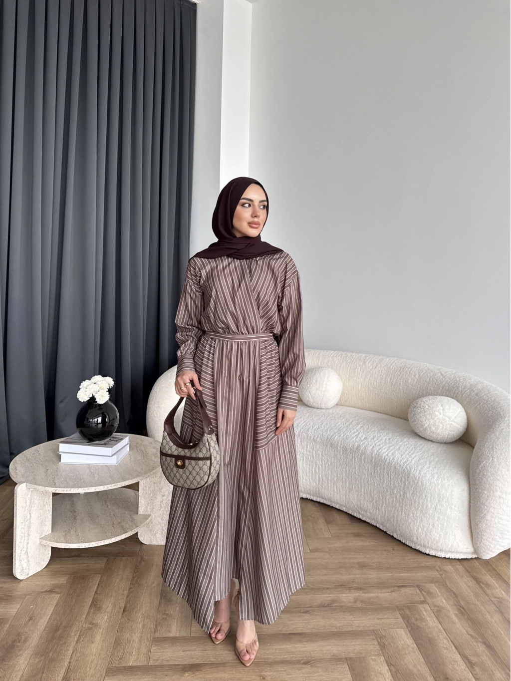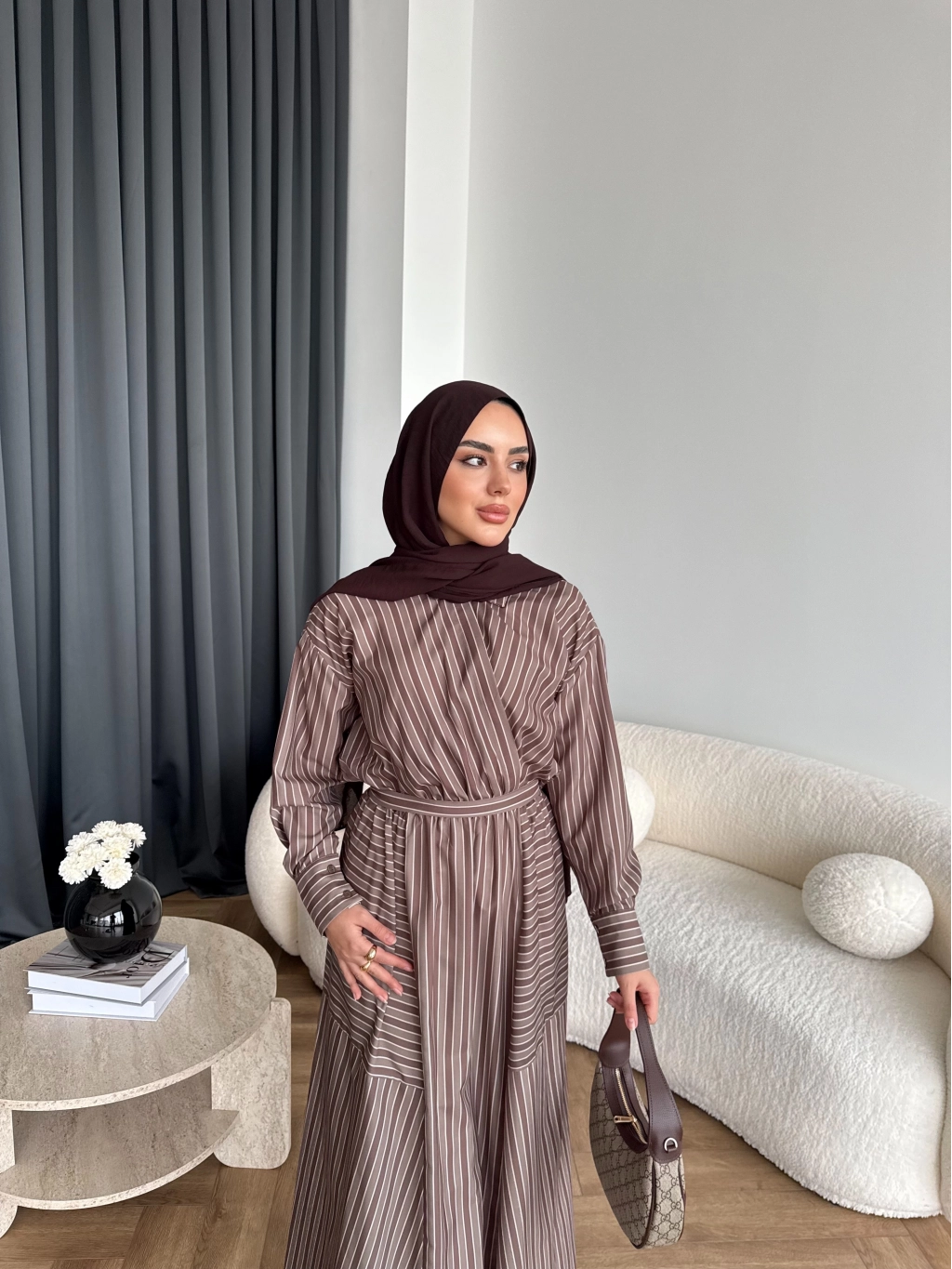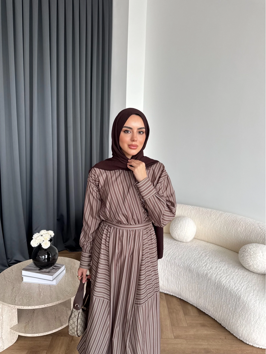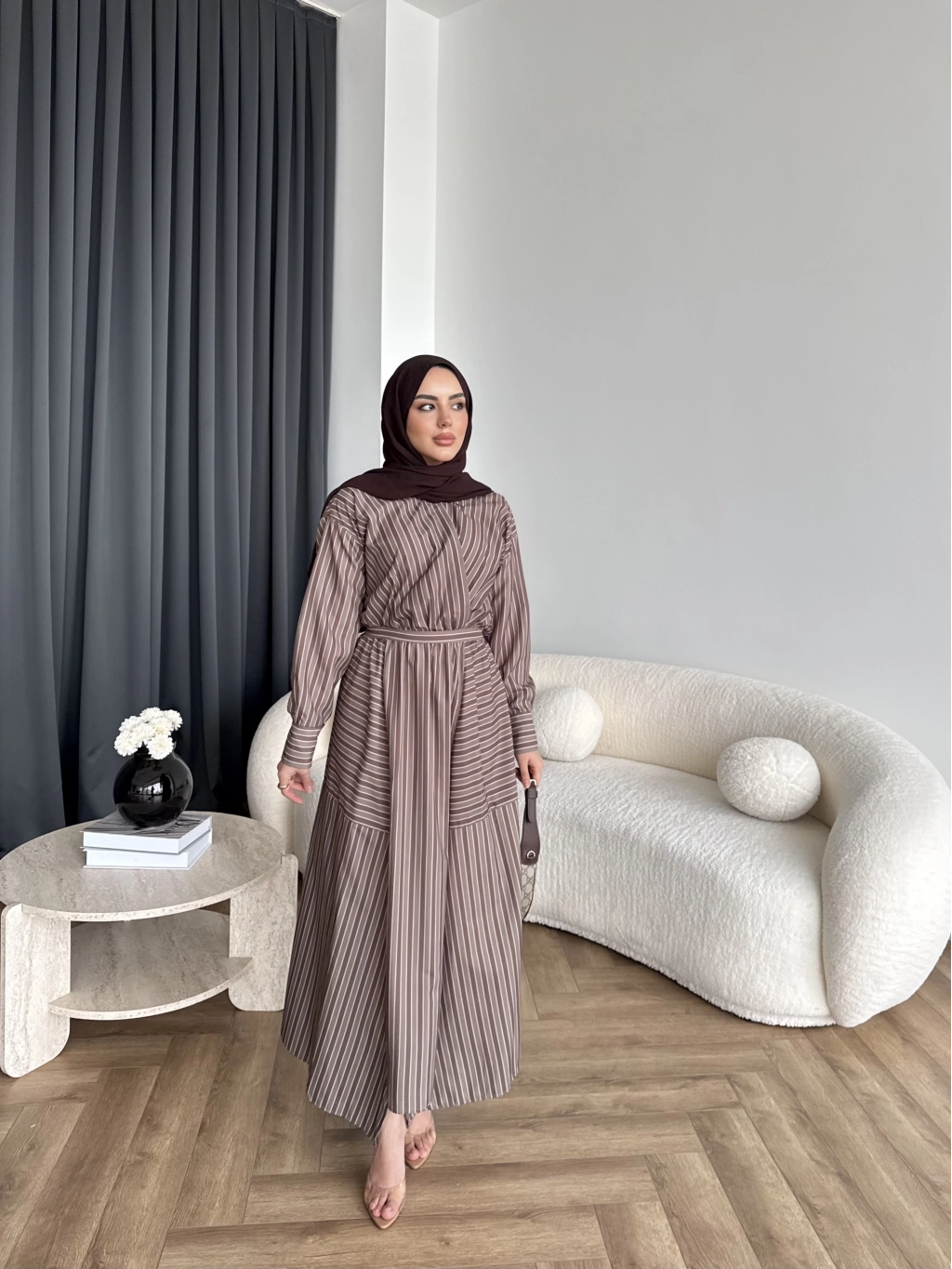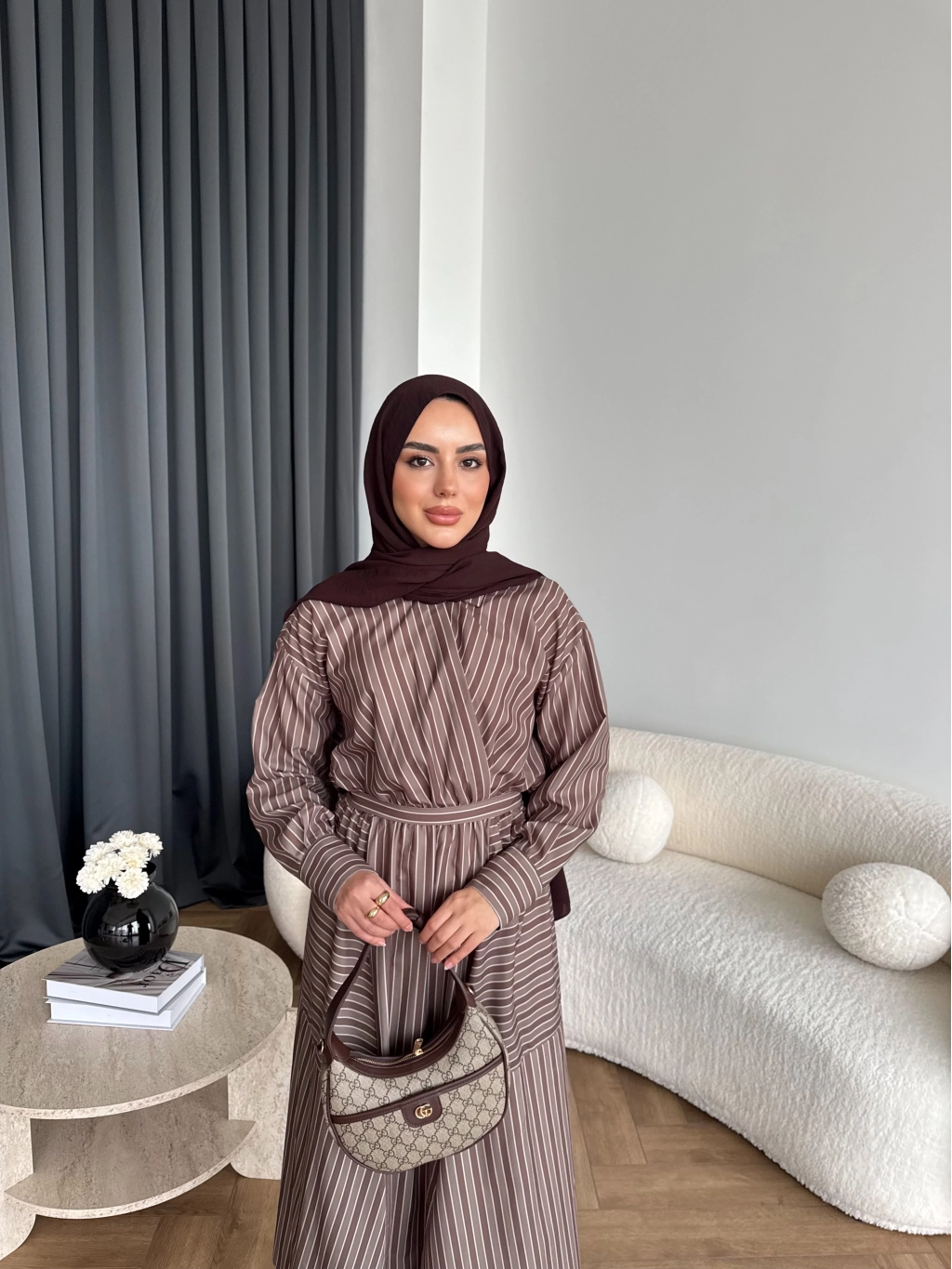 Duq - Gofre Çizgili Takım - Kahve