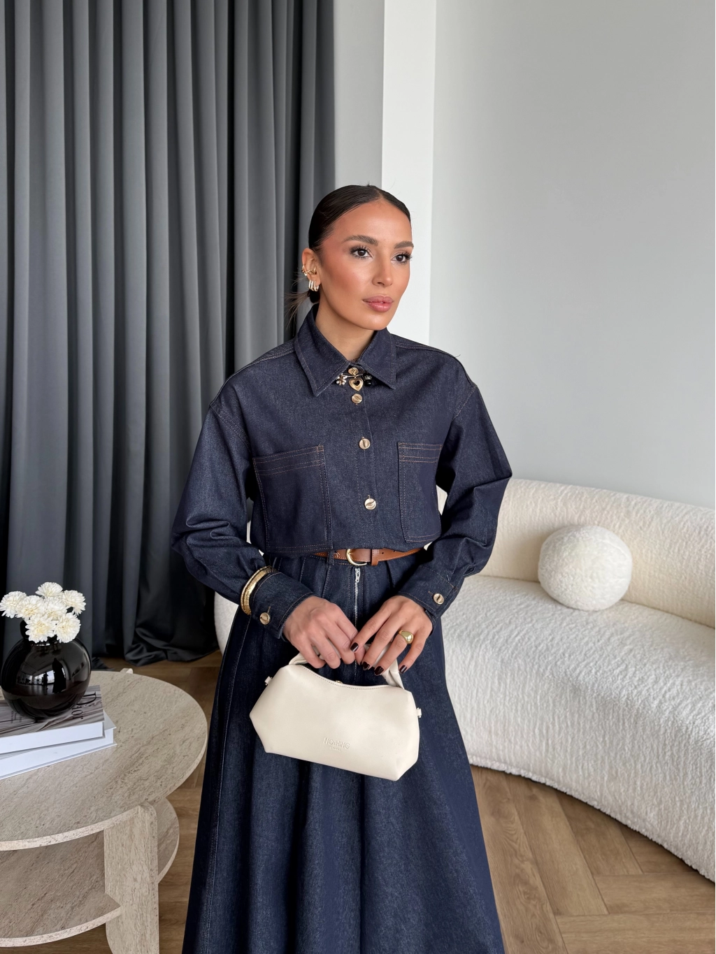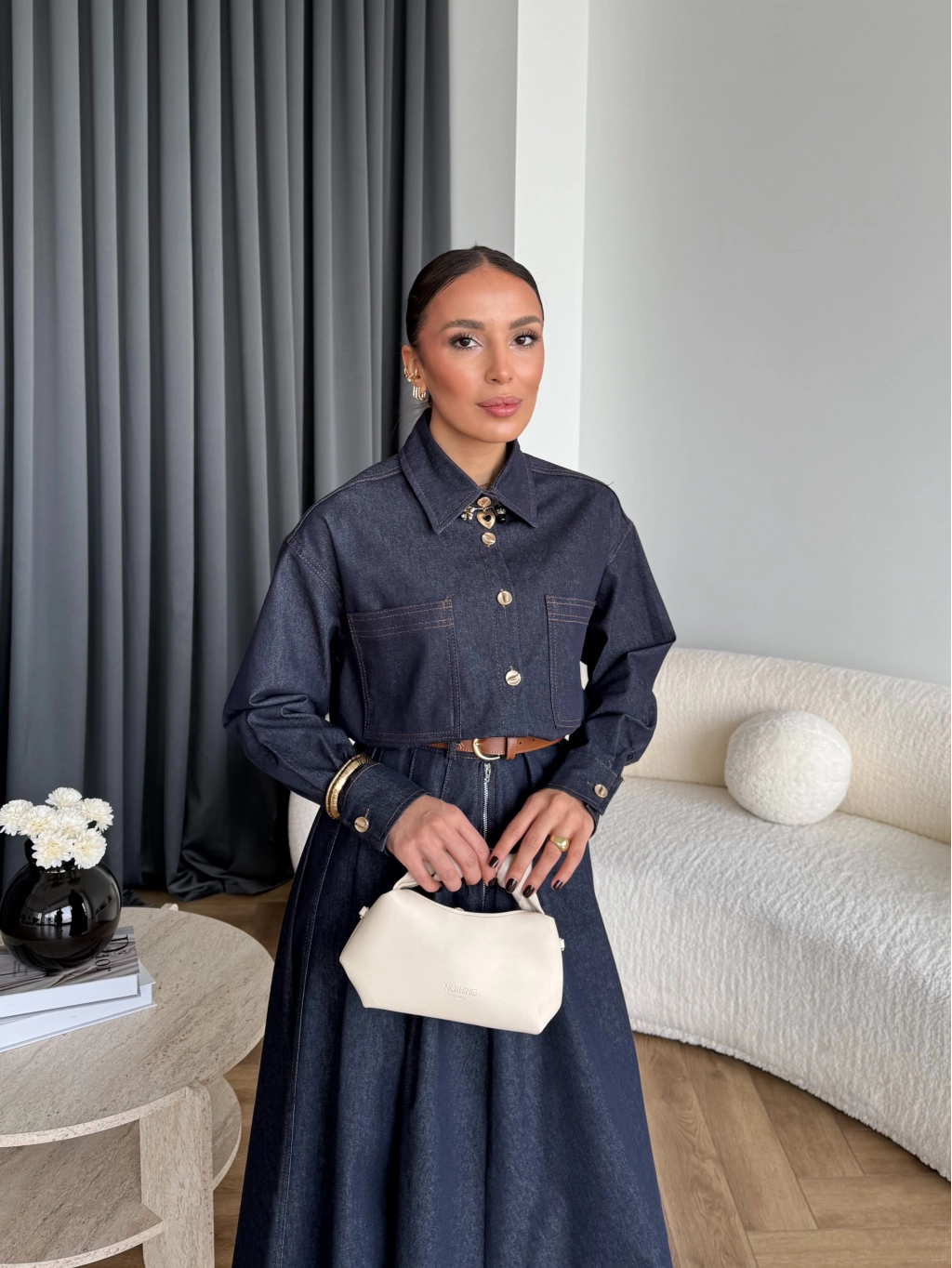 Kmş - Tasarım Kot Elbise - Bej