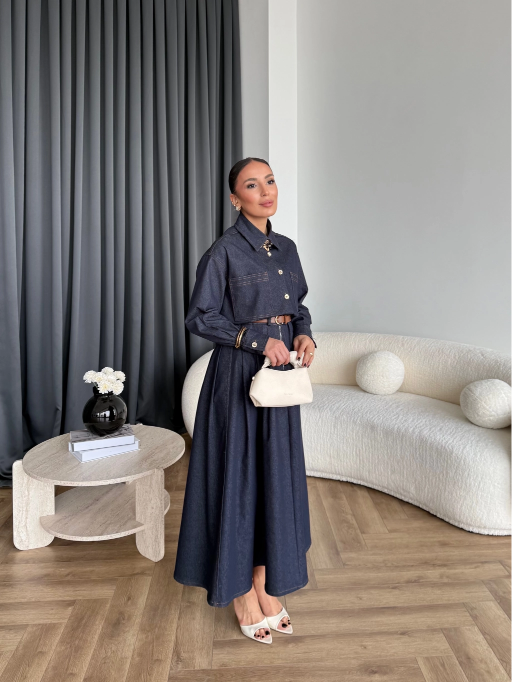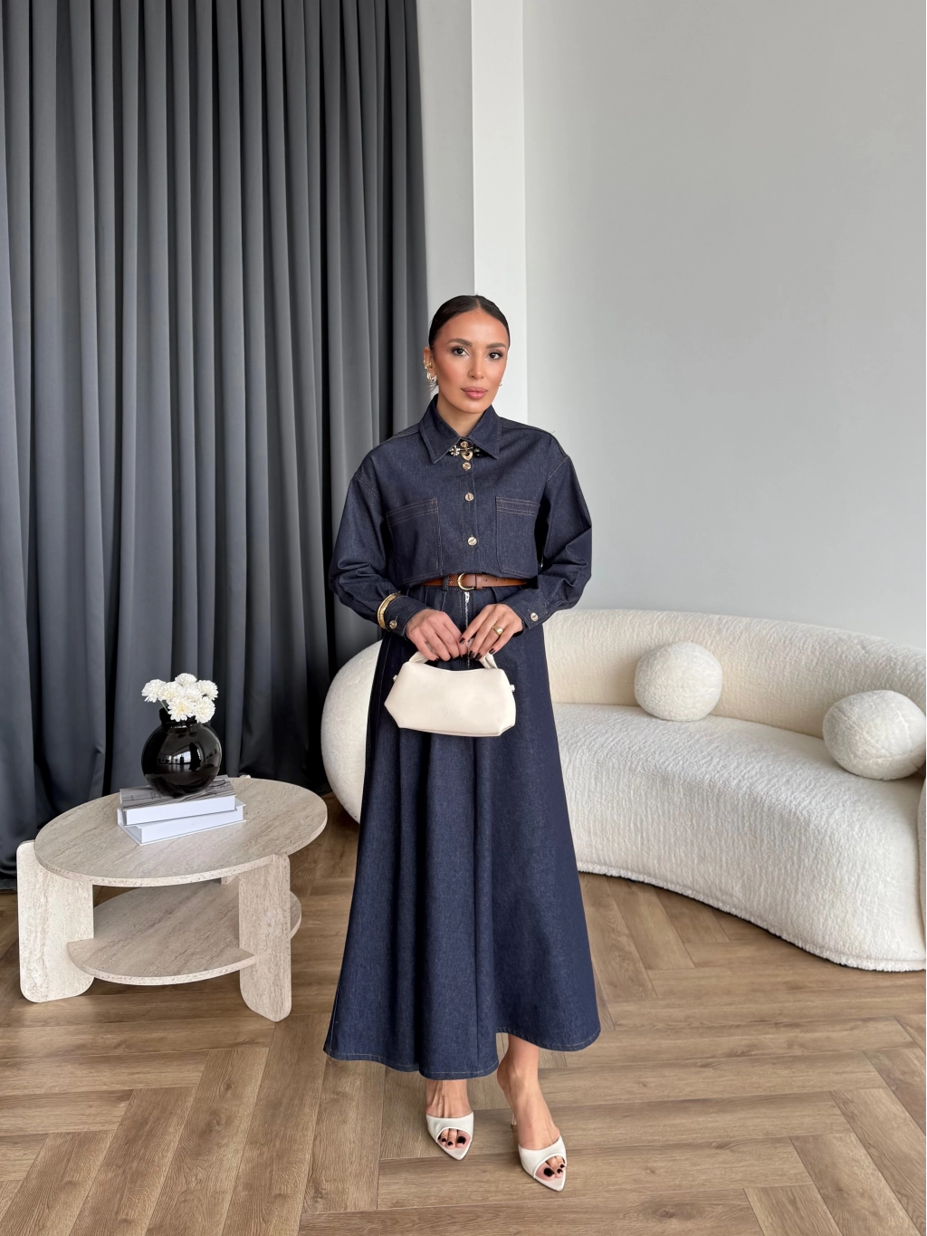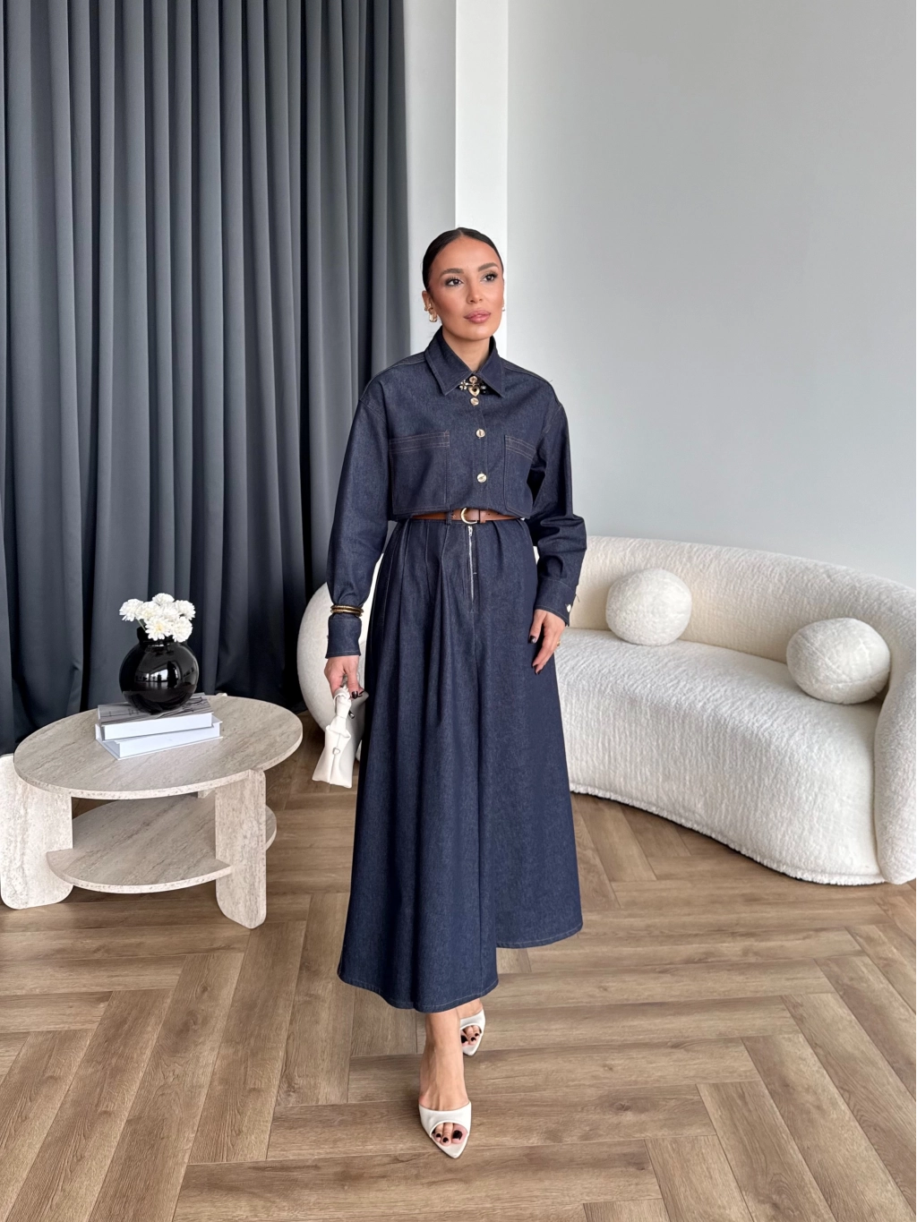 Qu - Balon Kol Etekli Takım - İndigo