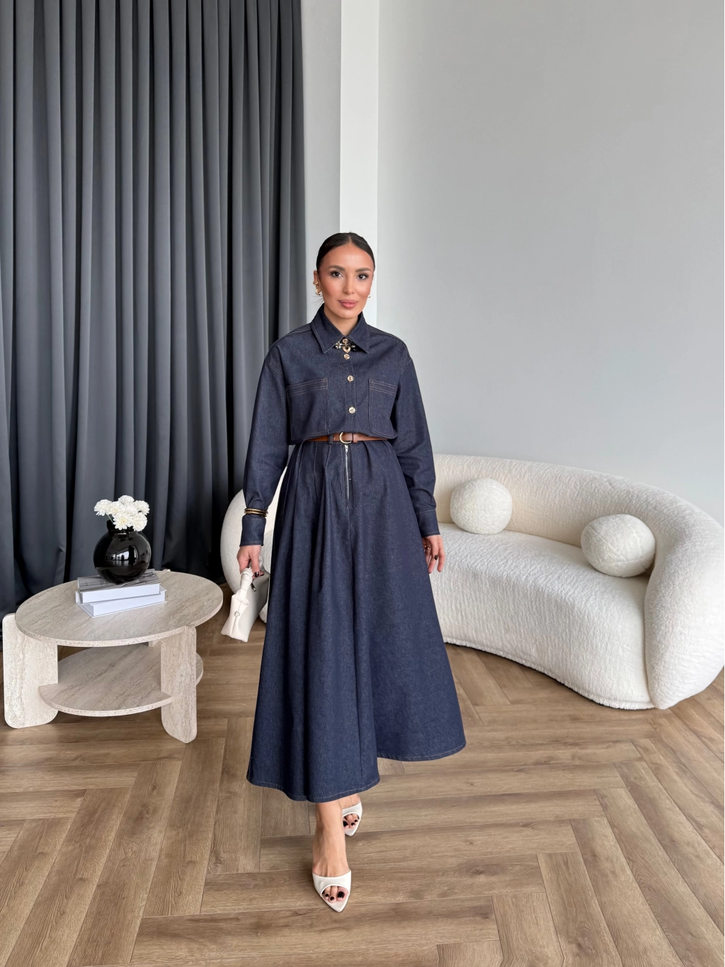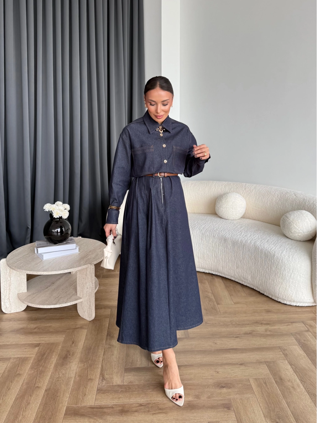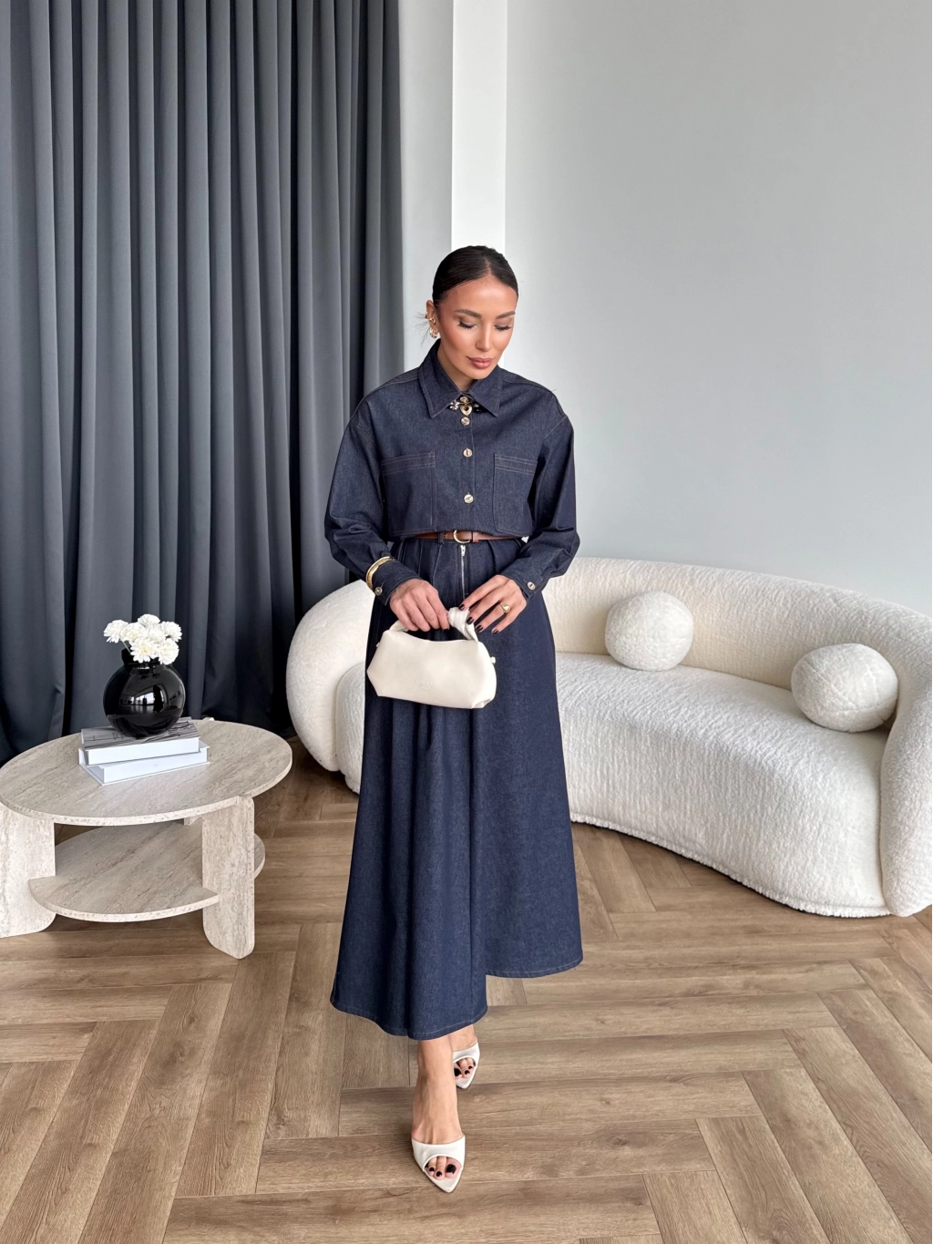 Kmş - Tasarım Kot Elbise - Koyu Lacivert