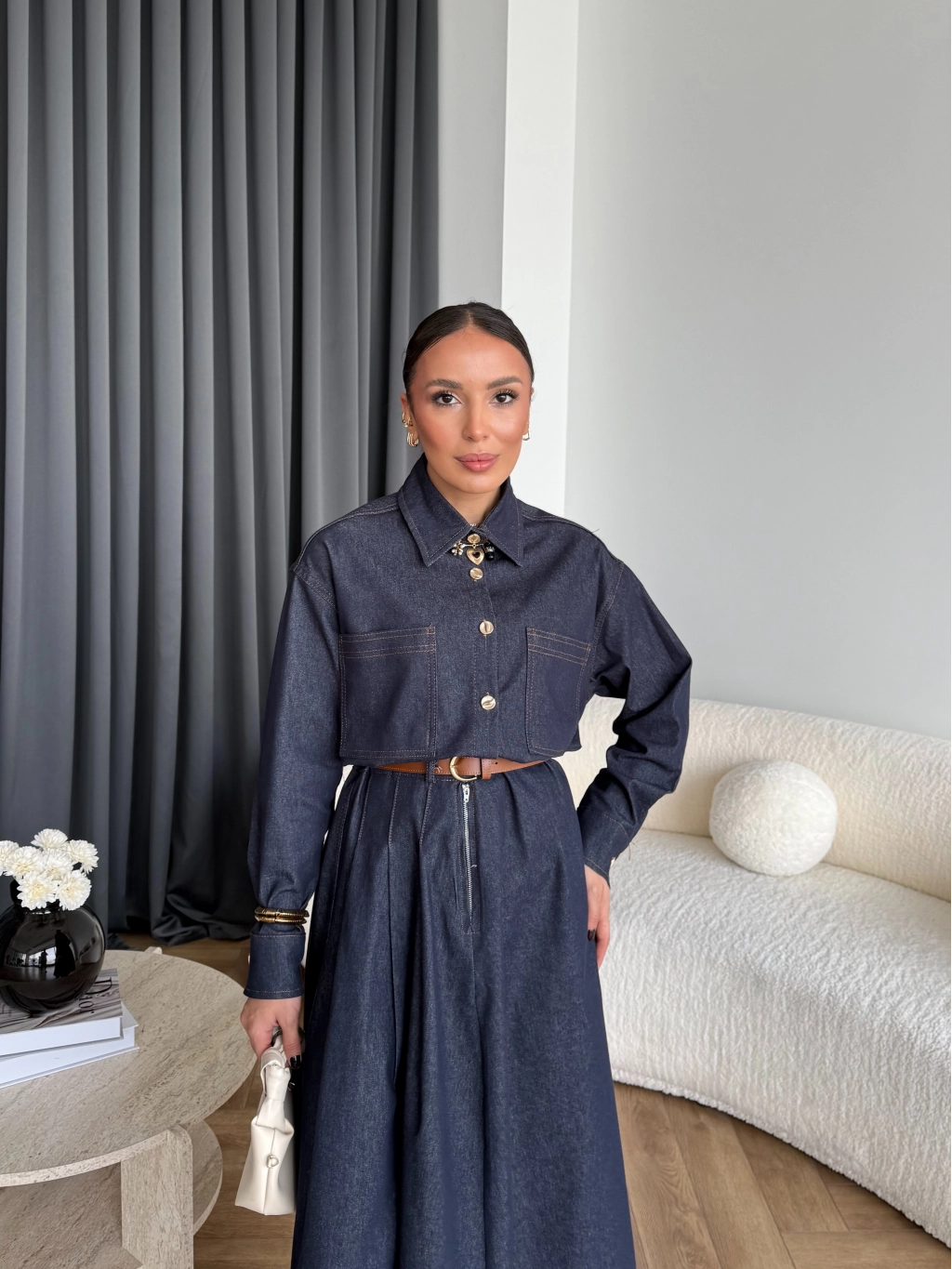 Kmş - Tasarım Kot Elbise - Kahve