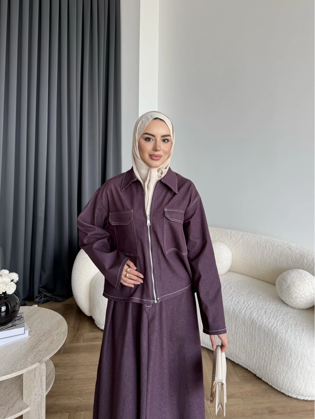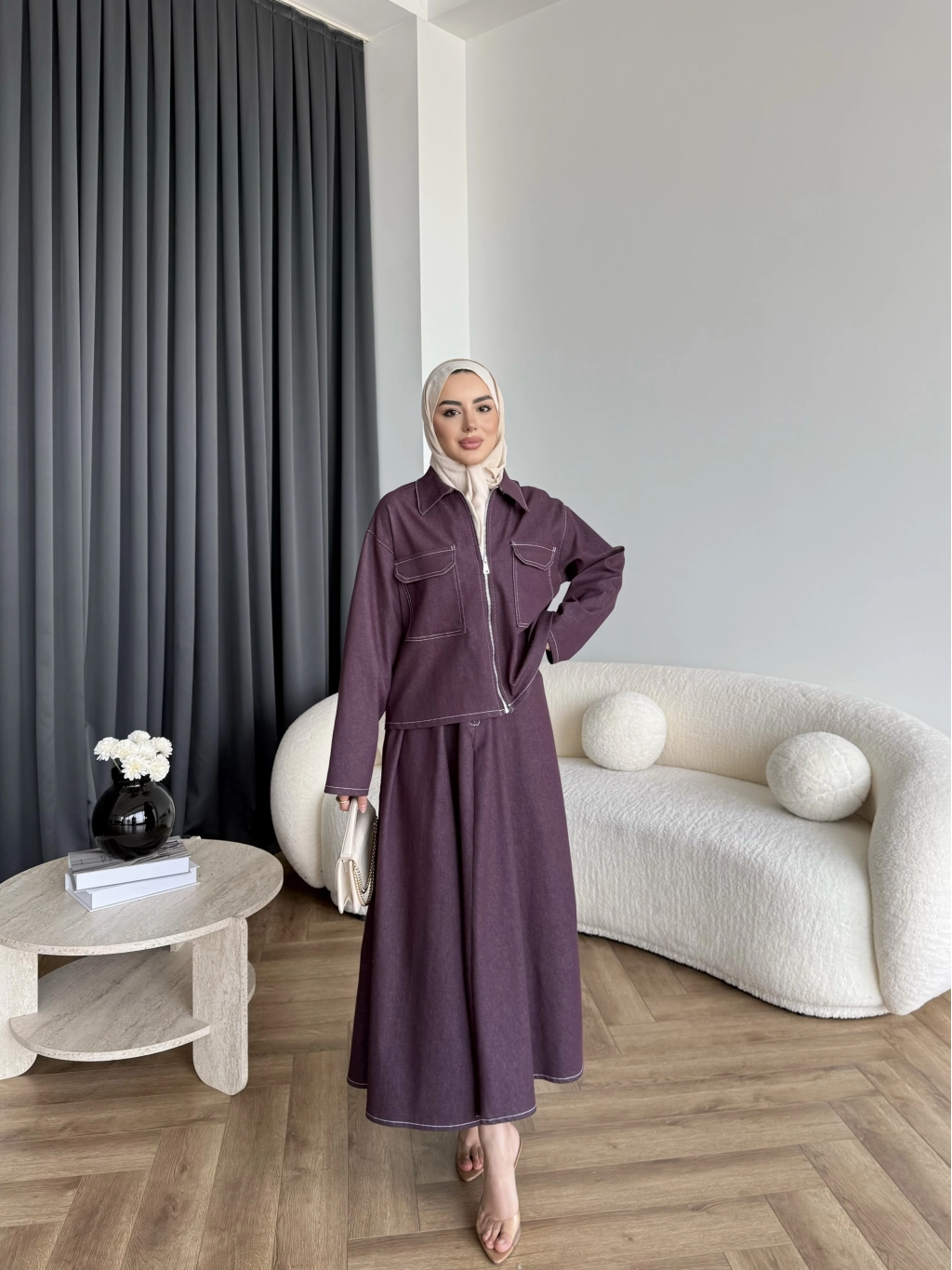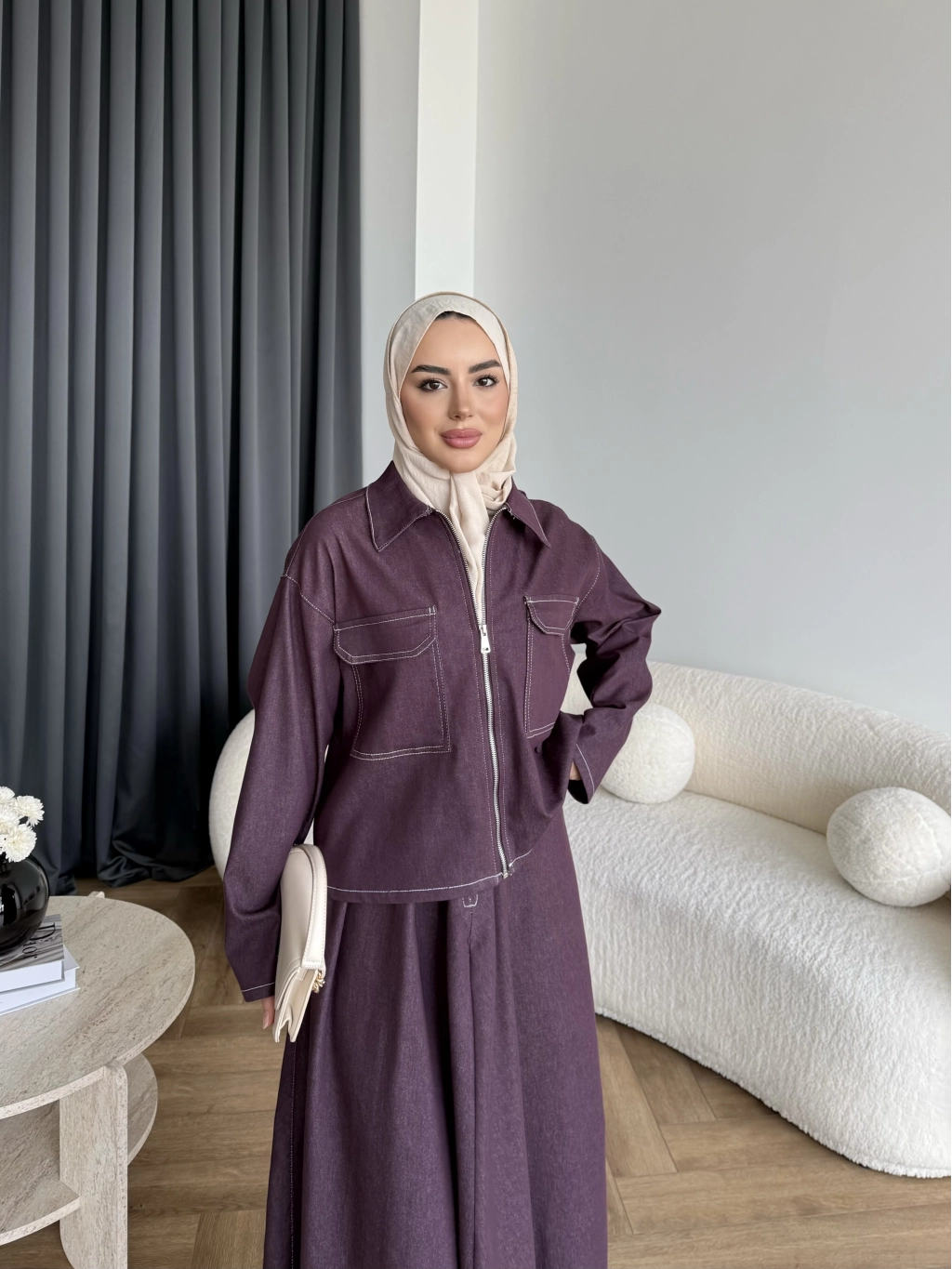 Es - Roxanne Etekli Kot Takım - Mürdüm