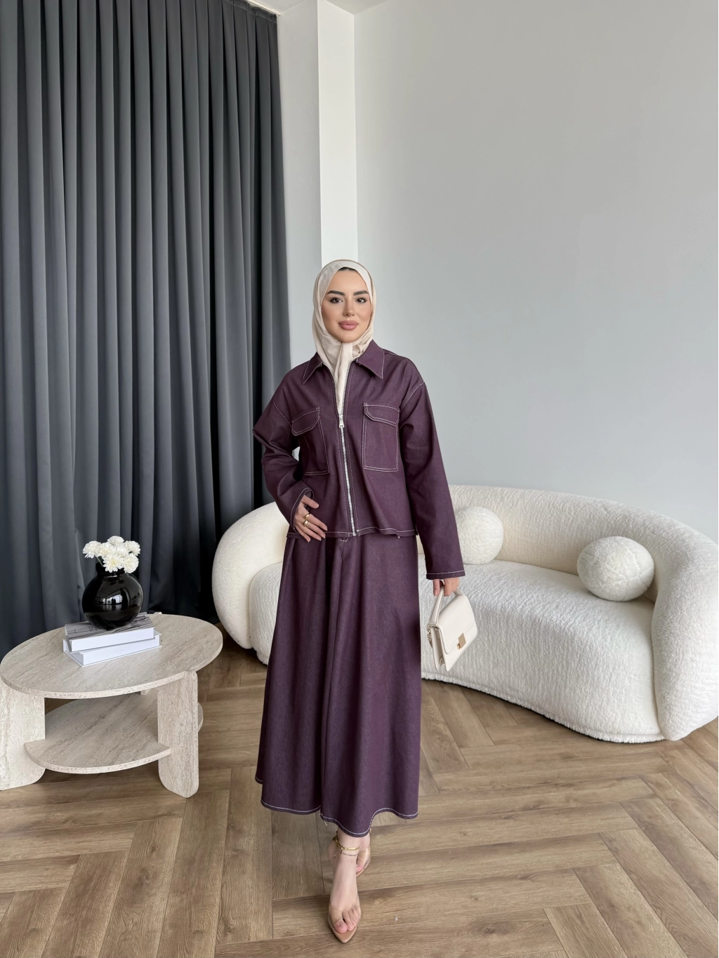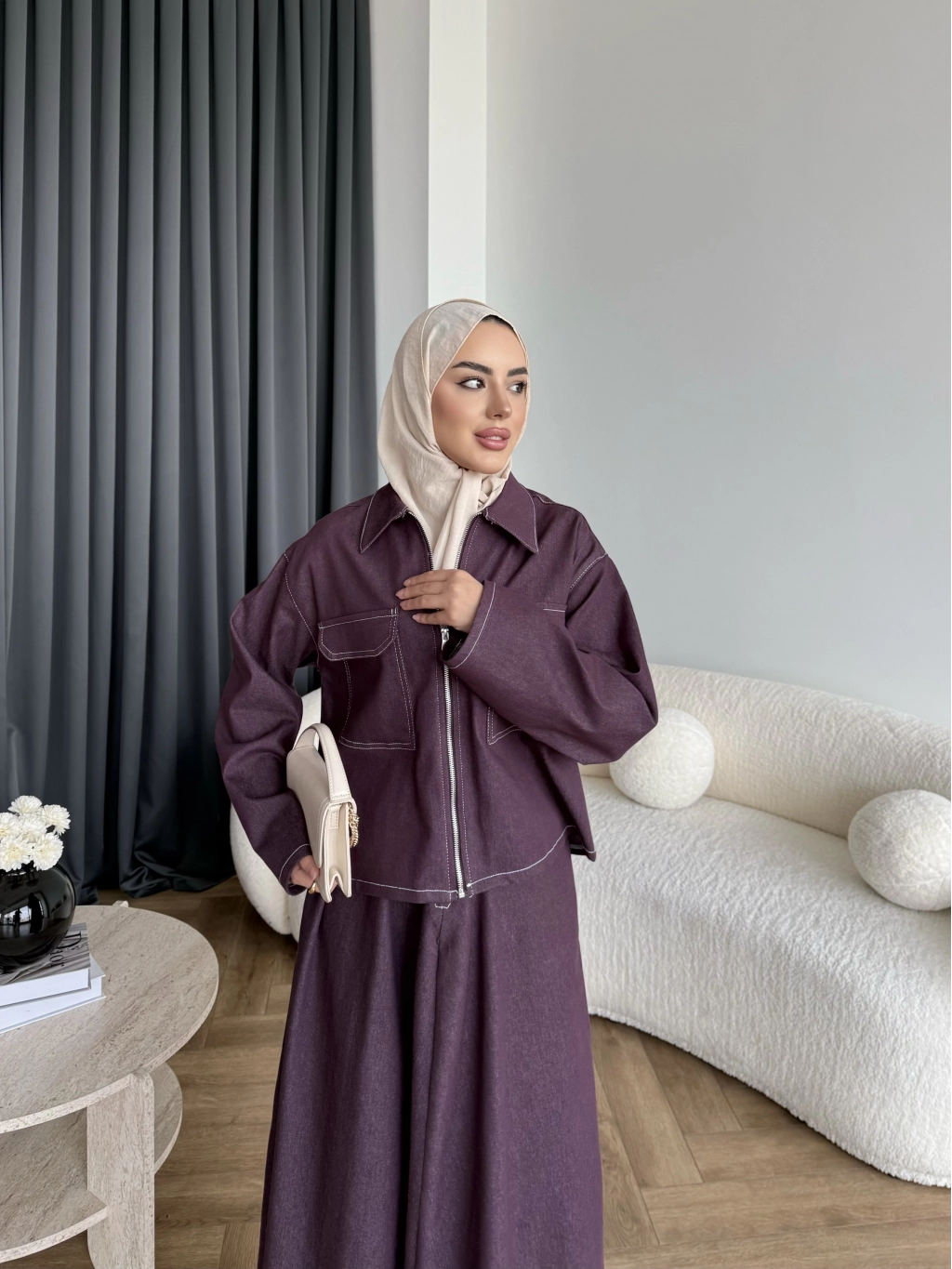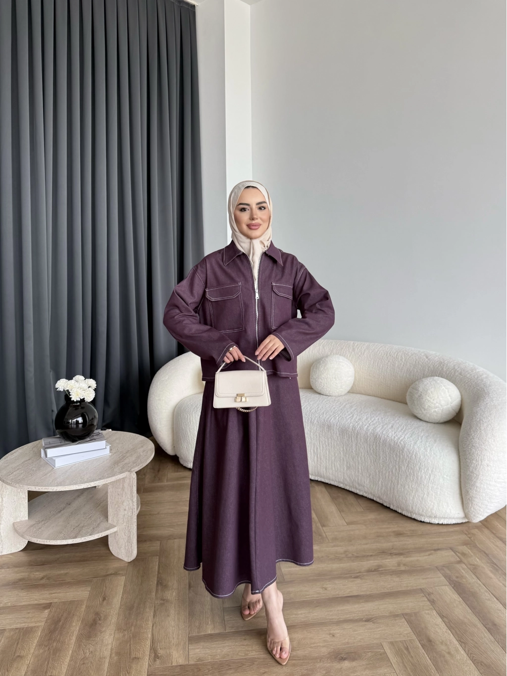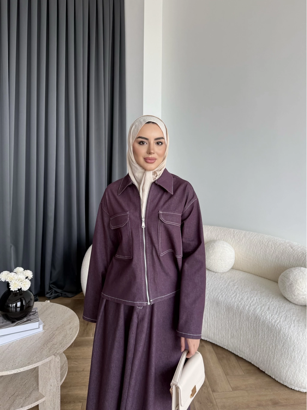 Es - Roxanne Etekli Kot Takım - Mürdüm