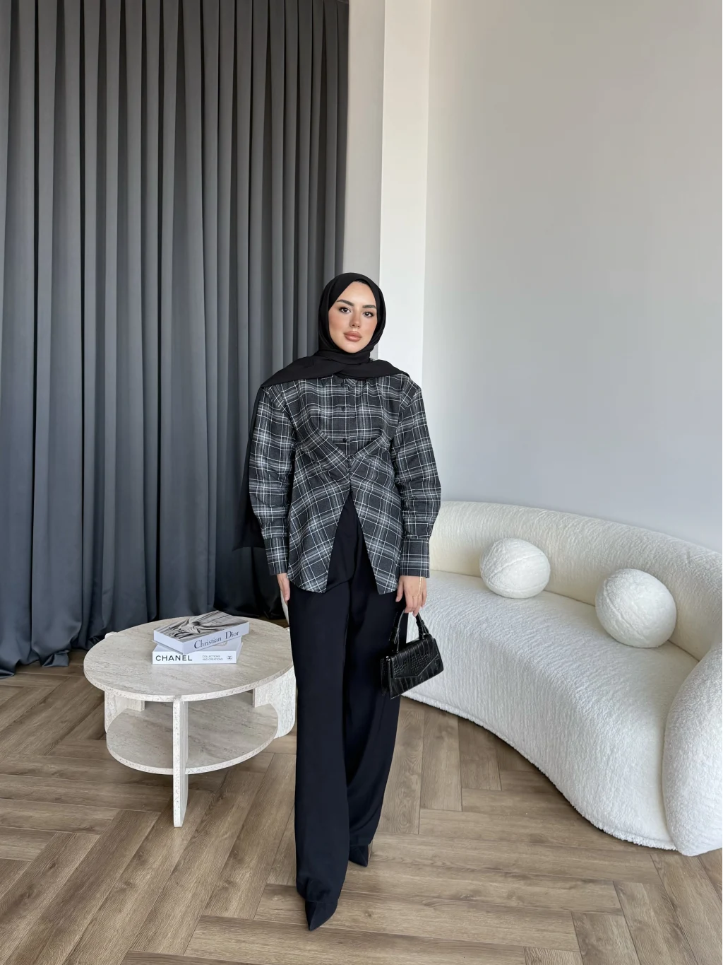 Yanı Kesik Paça Scuba Pantolon - Gri