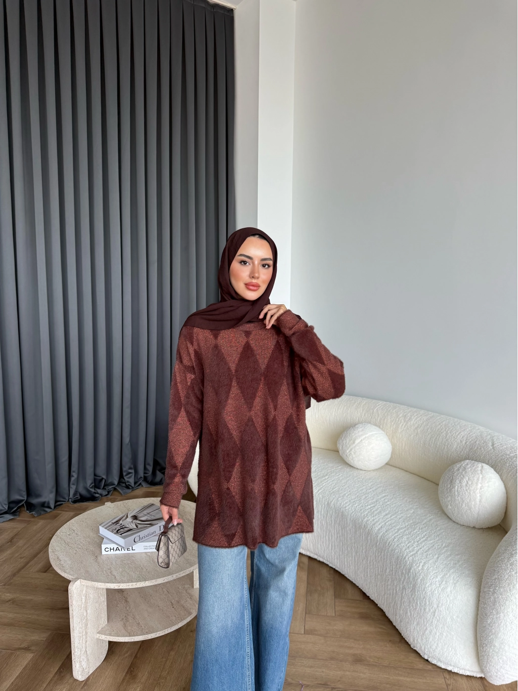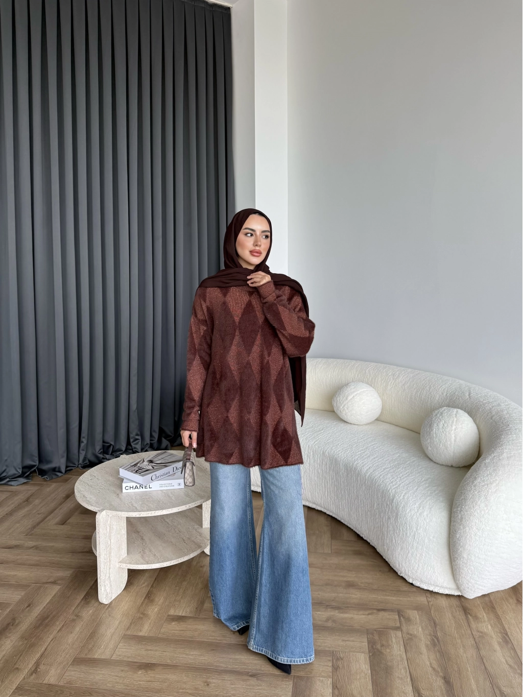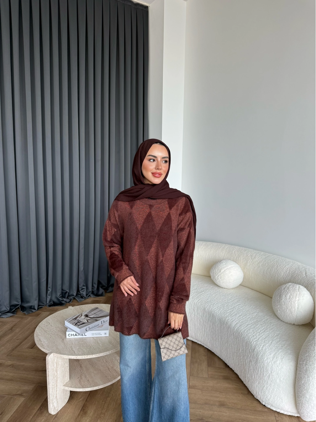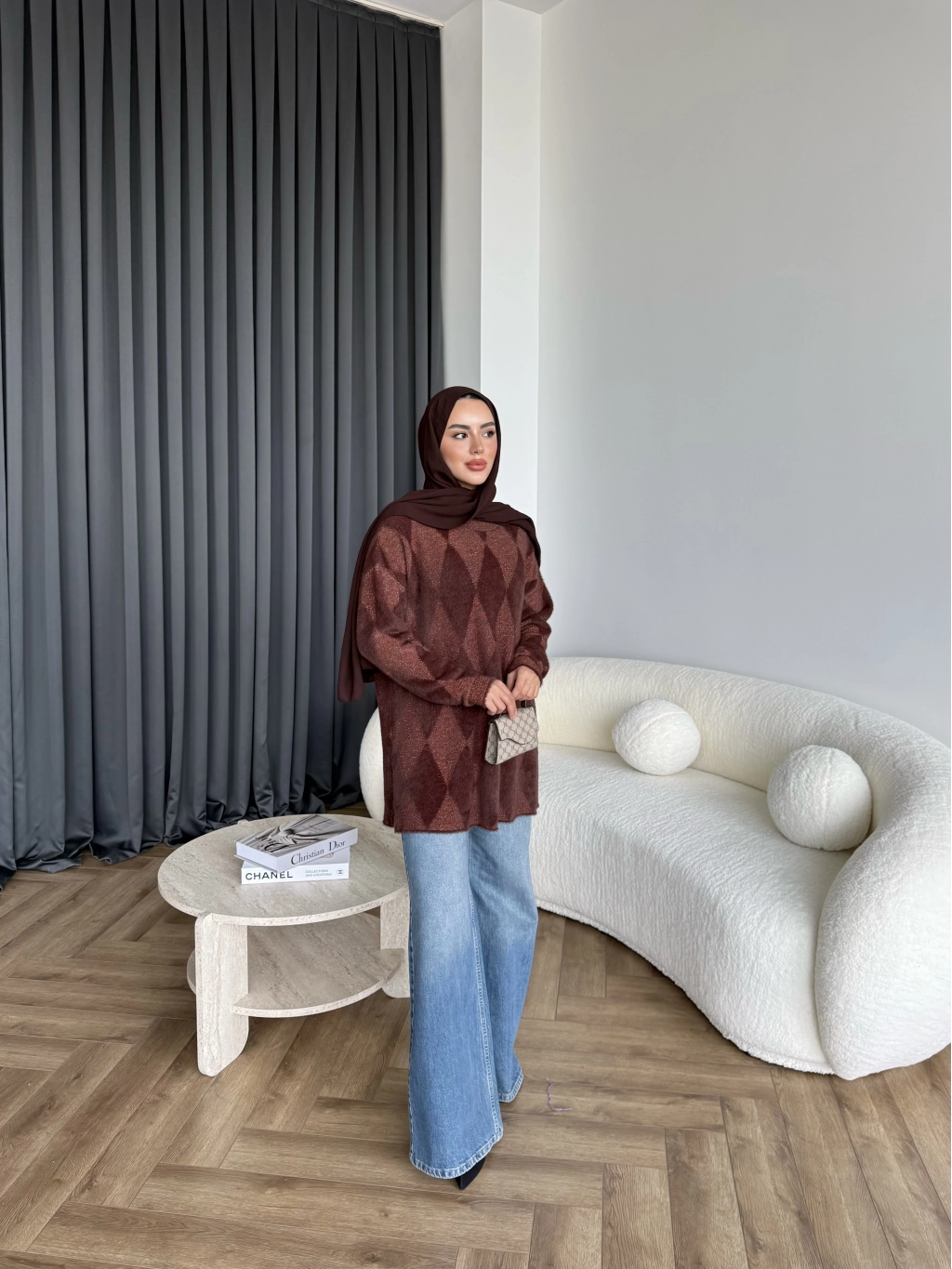 Faramis Baklava Tüylü Kazak - Acı Kahve
