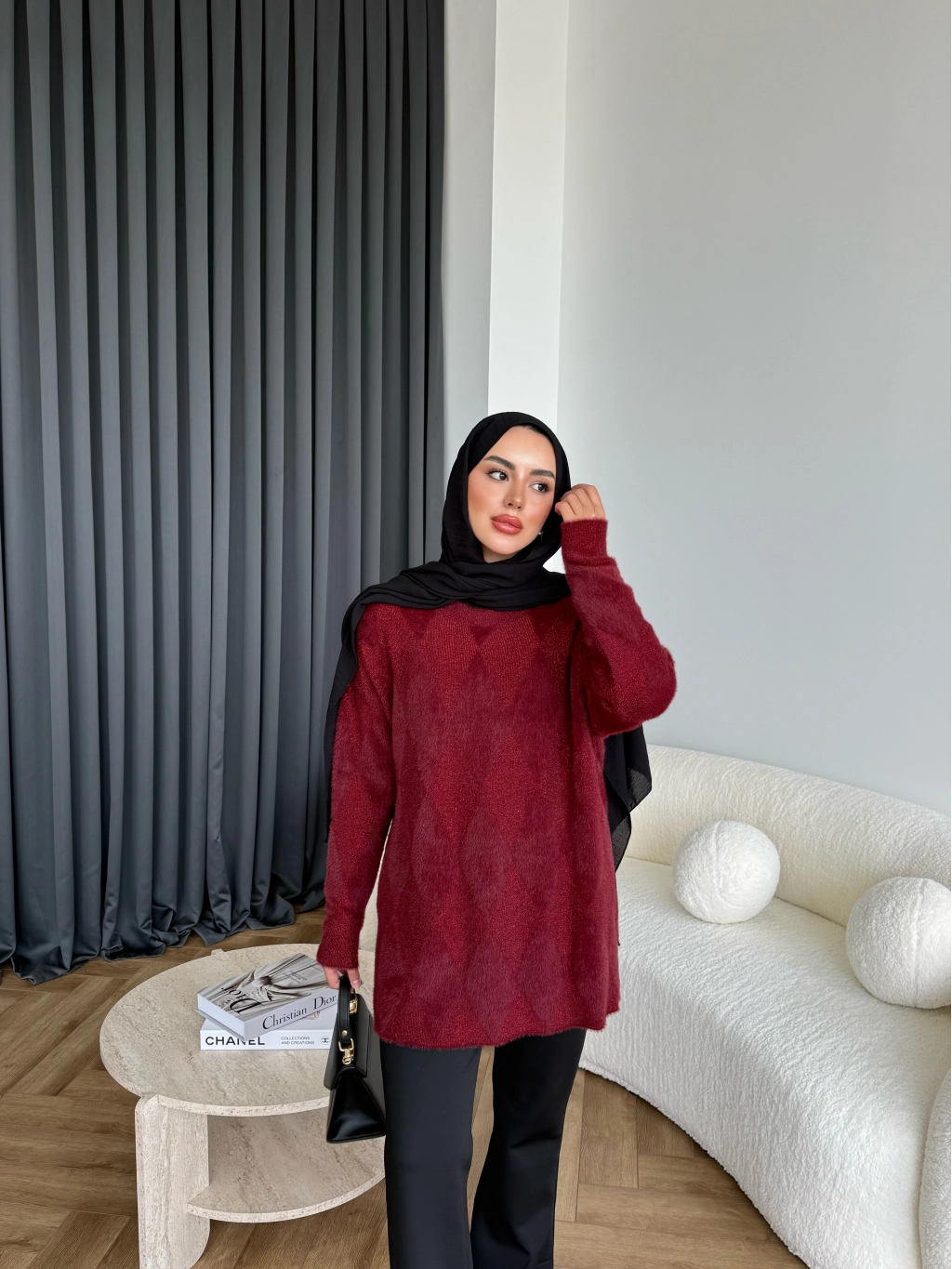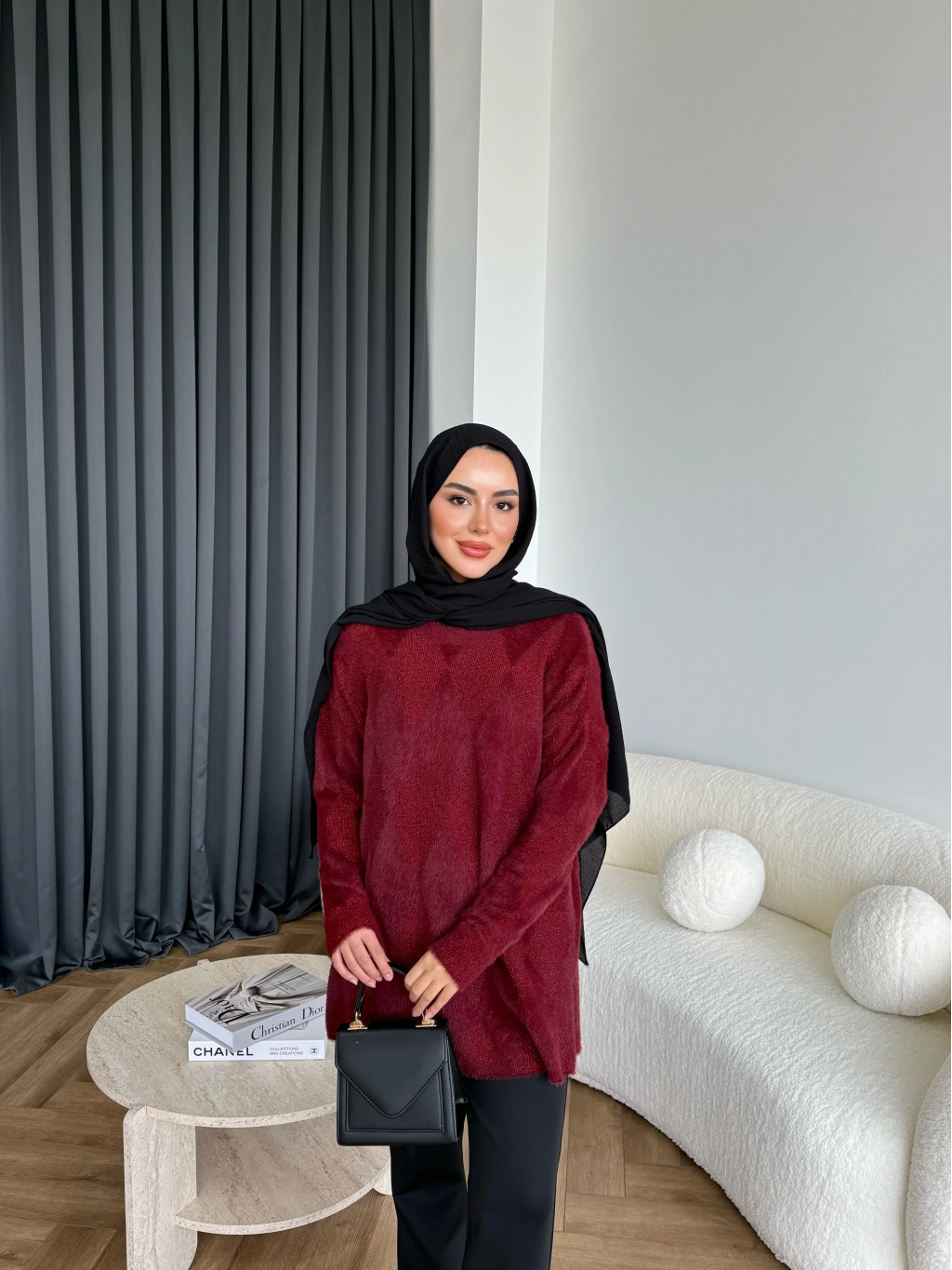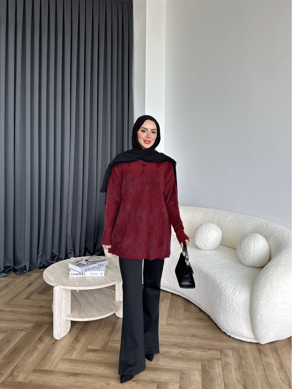 Faramis Baklava Tüylü Kazak - Bordo