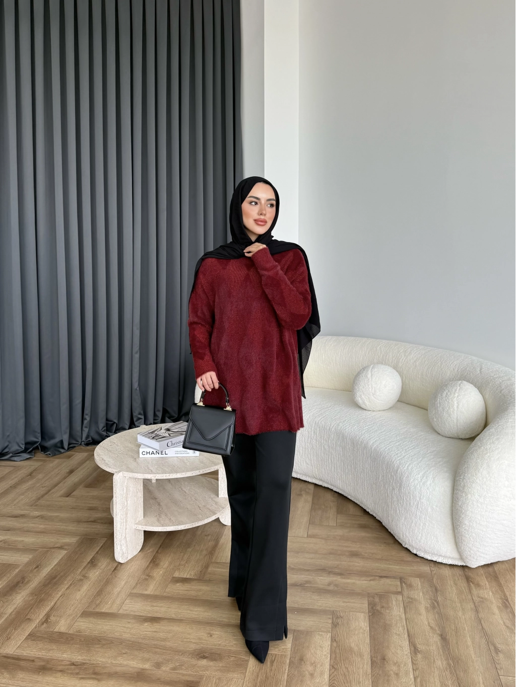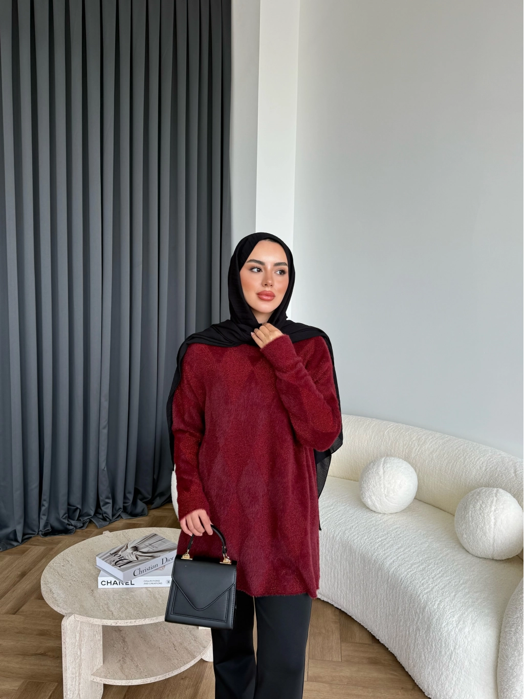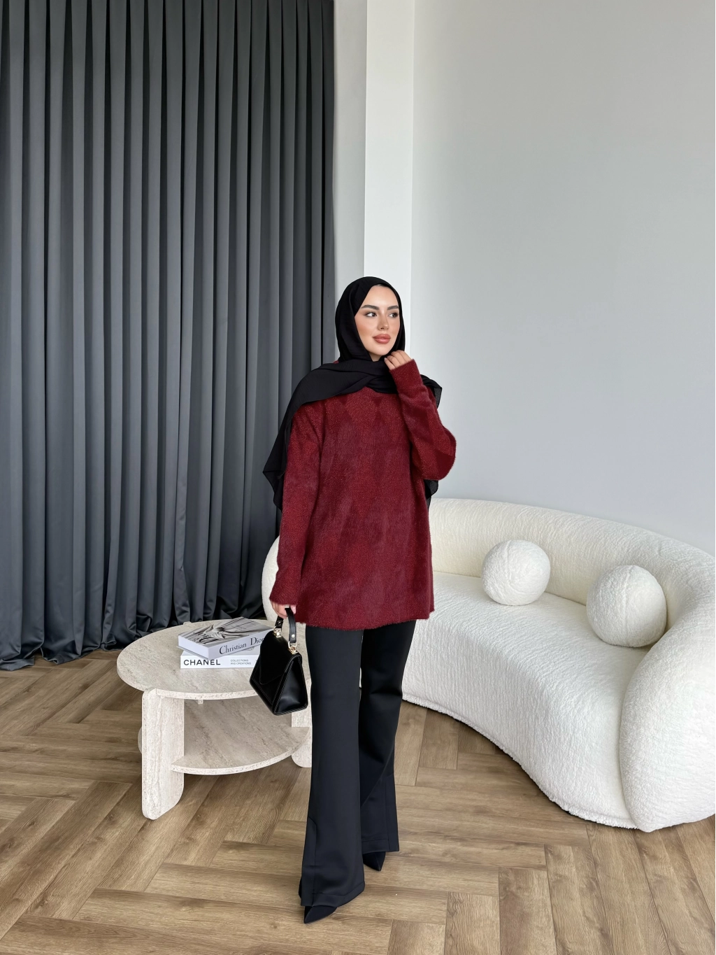 Faramis Baklava Tüylü Kazak - Bordo