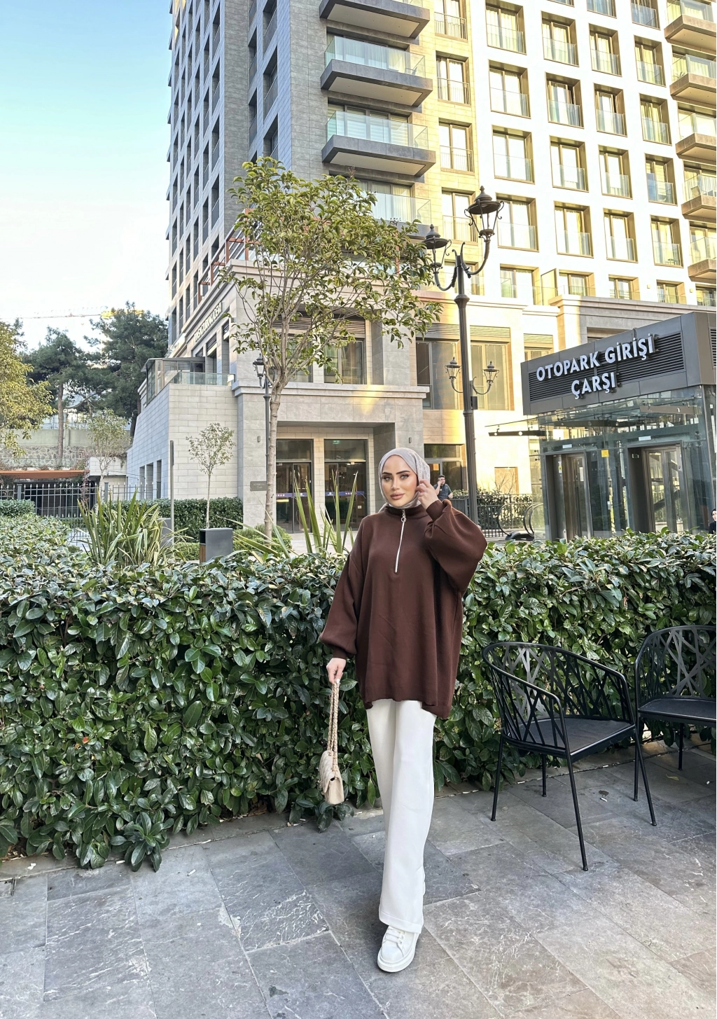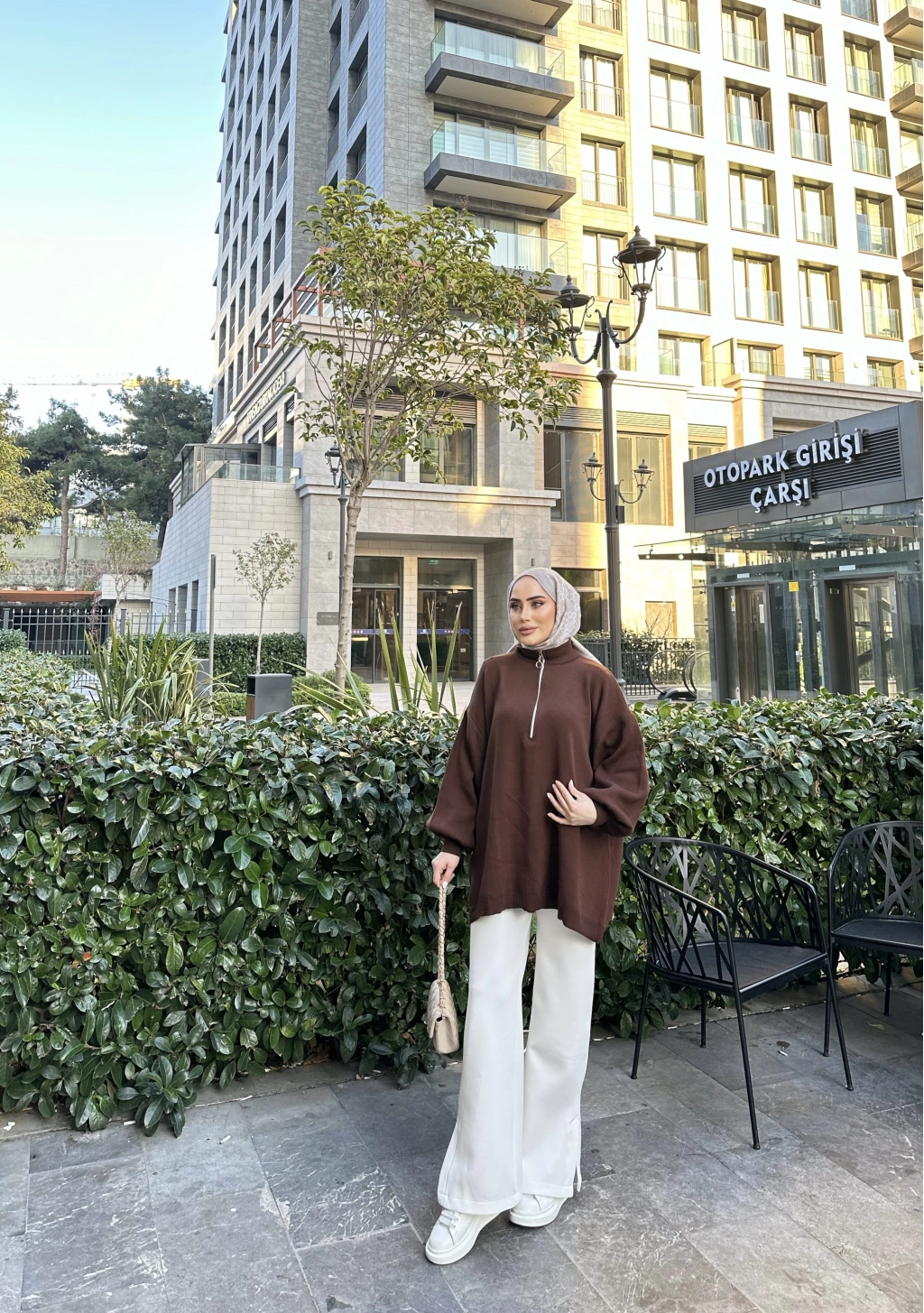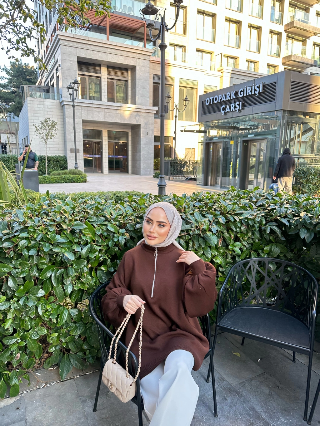 Fermuarlı Sweat Model Triko Kazak - Acı Kahve