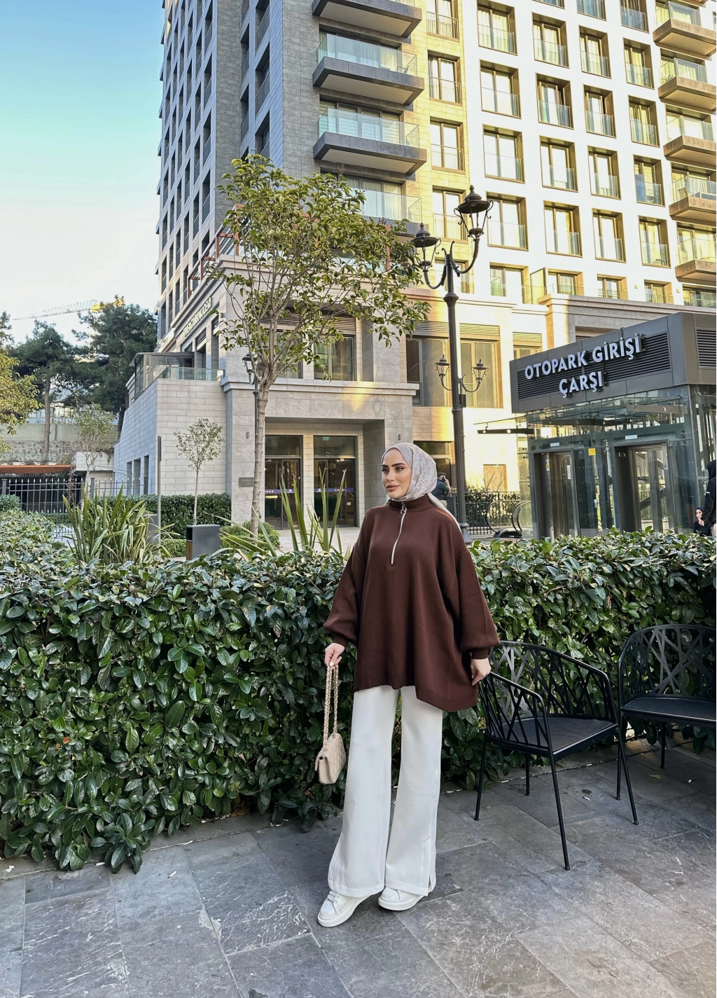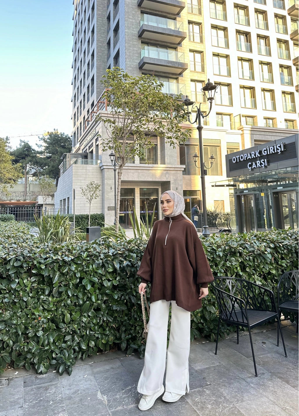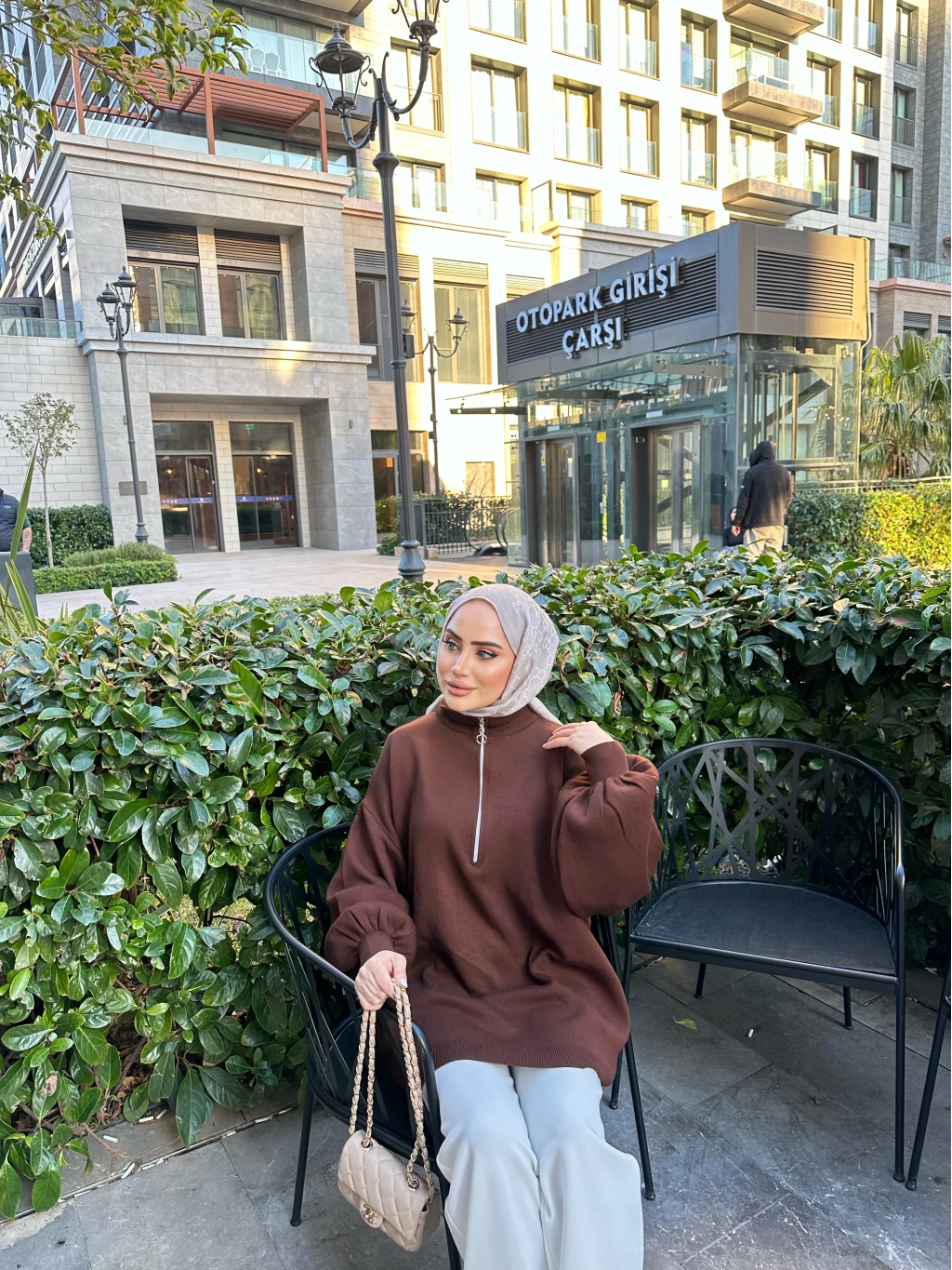 Fermuarlı Sweat Model Triko Kazak - Acı Kahve