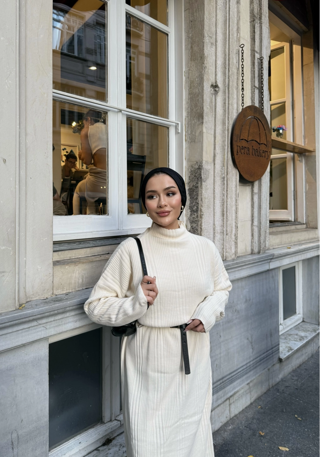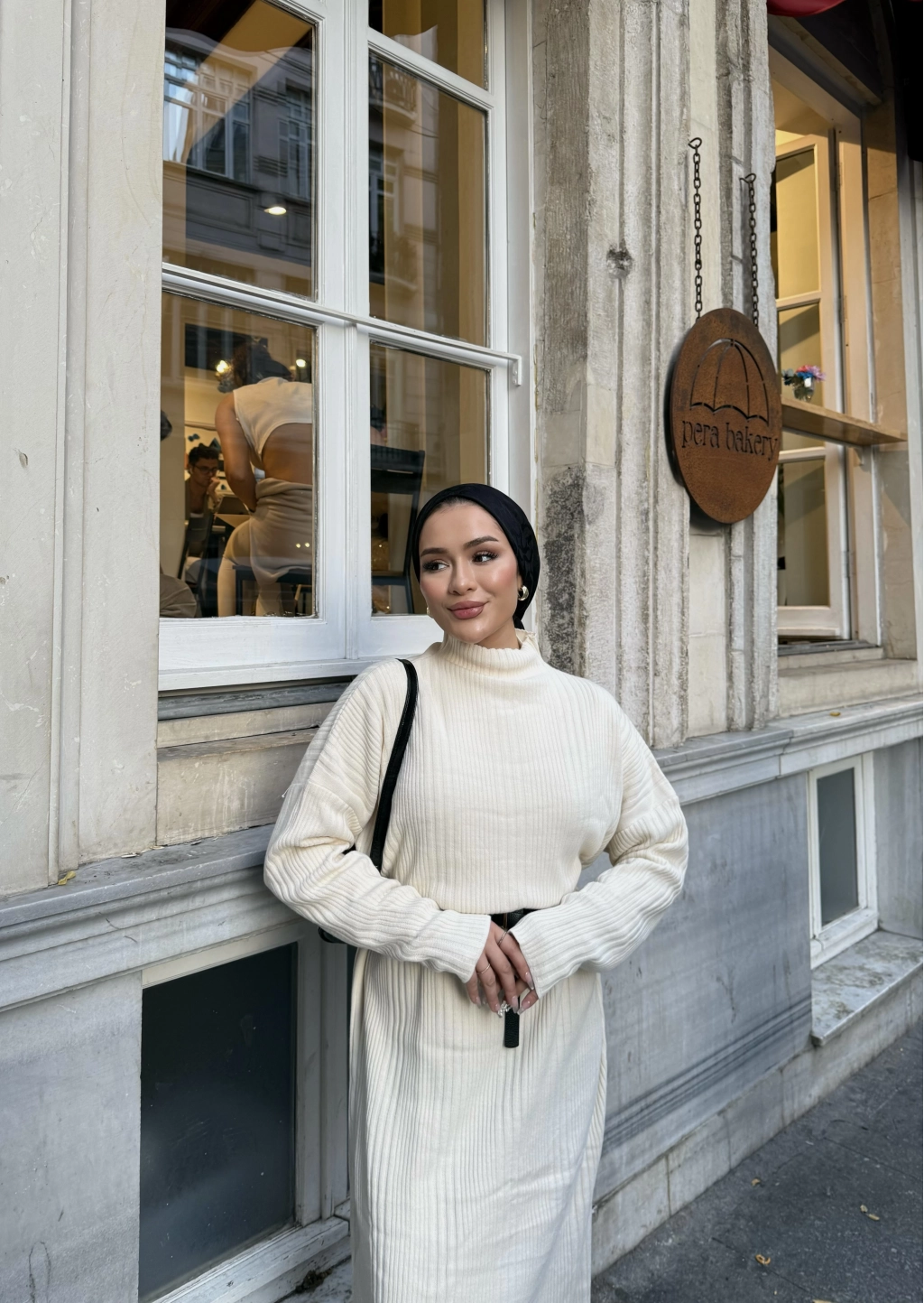 Fitilli Triko Elbise - Bej