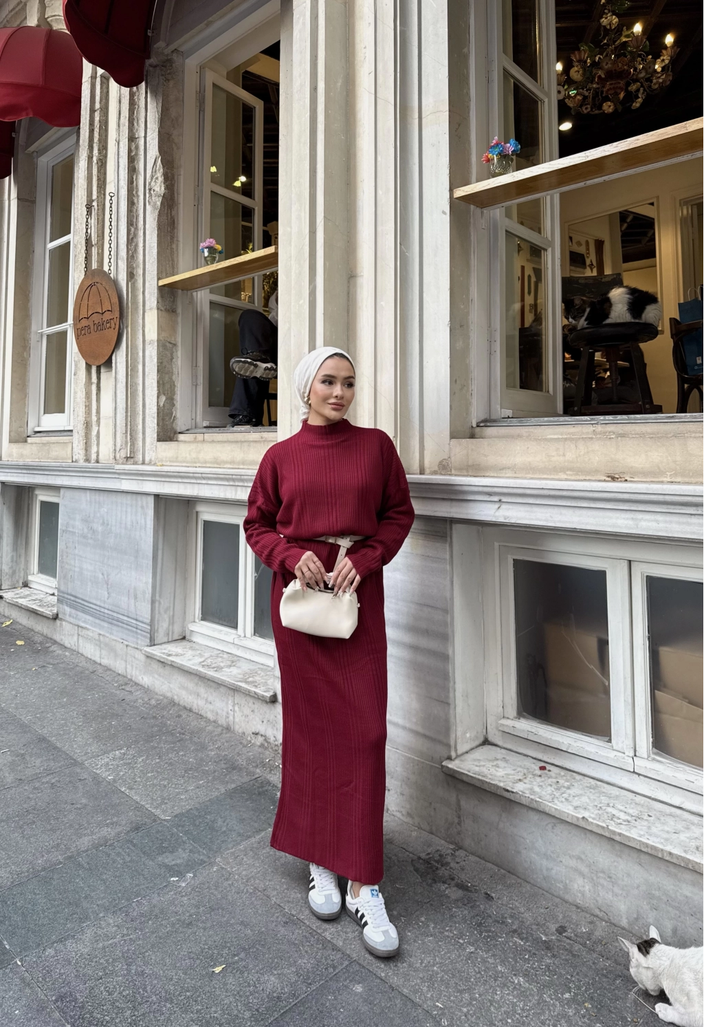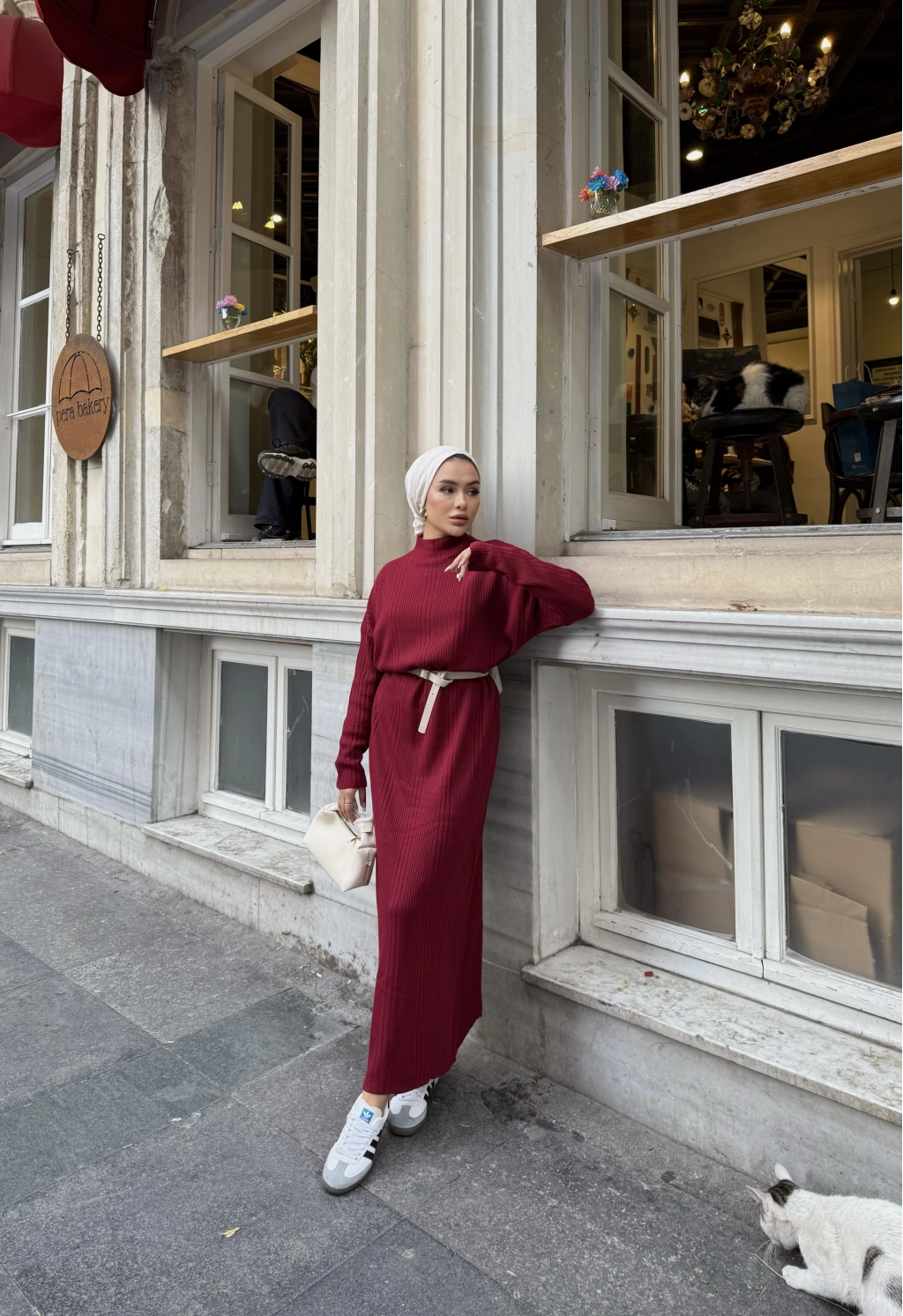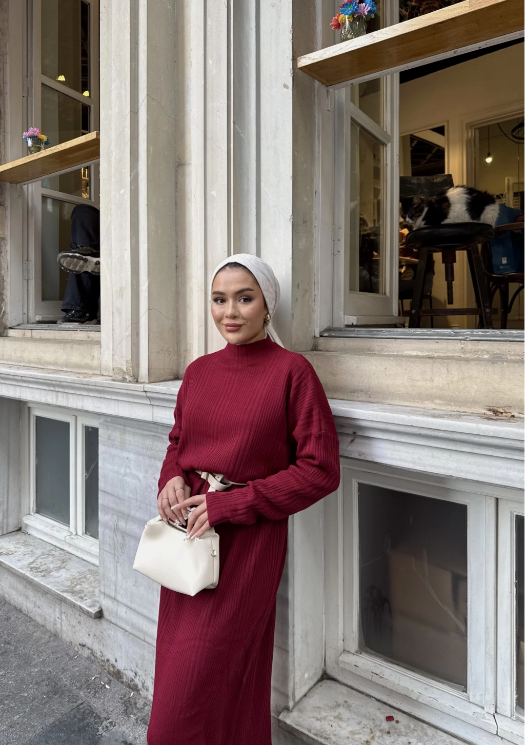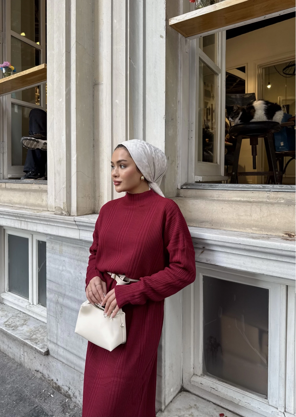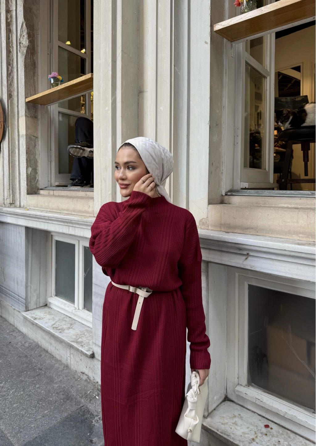 Fitilli Triko Elbise - Bordo