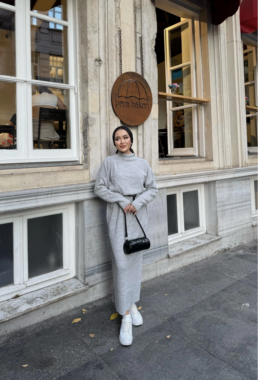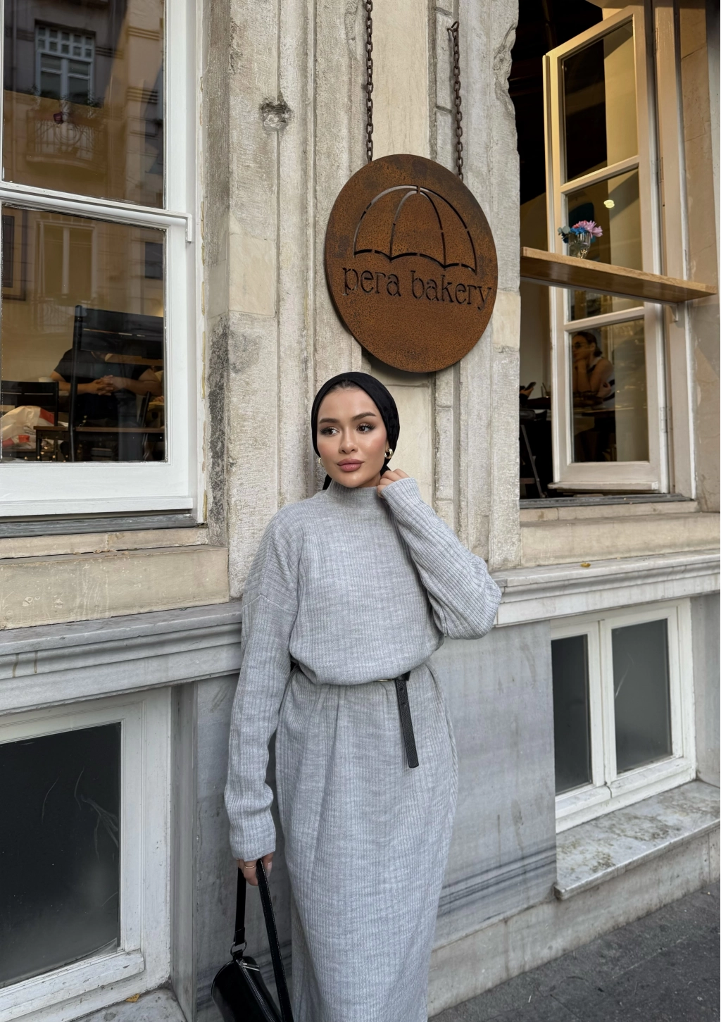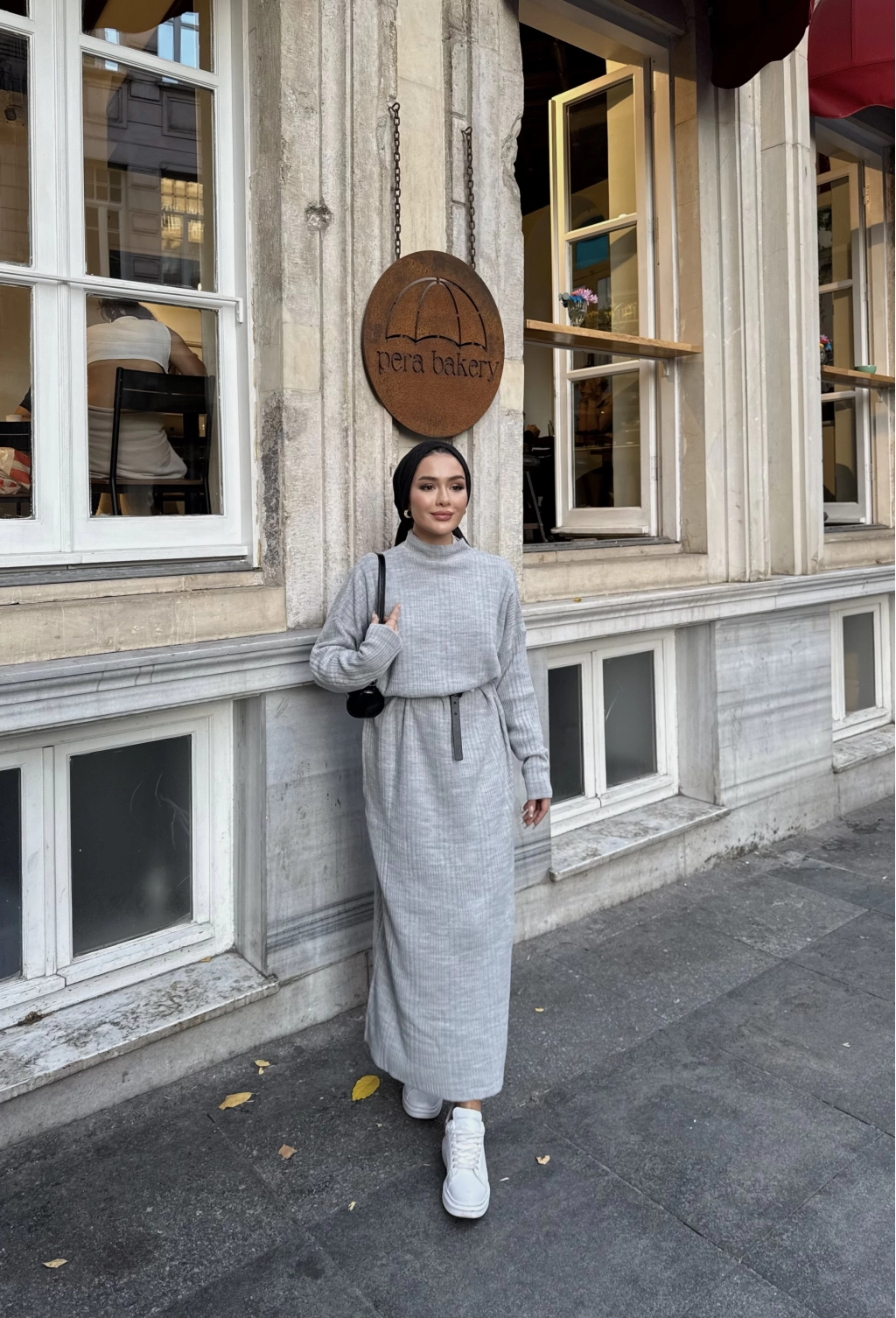 Fitilli Triko Elbise - Gri