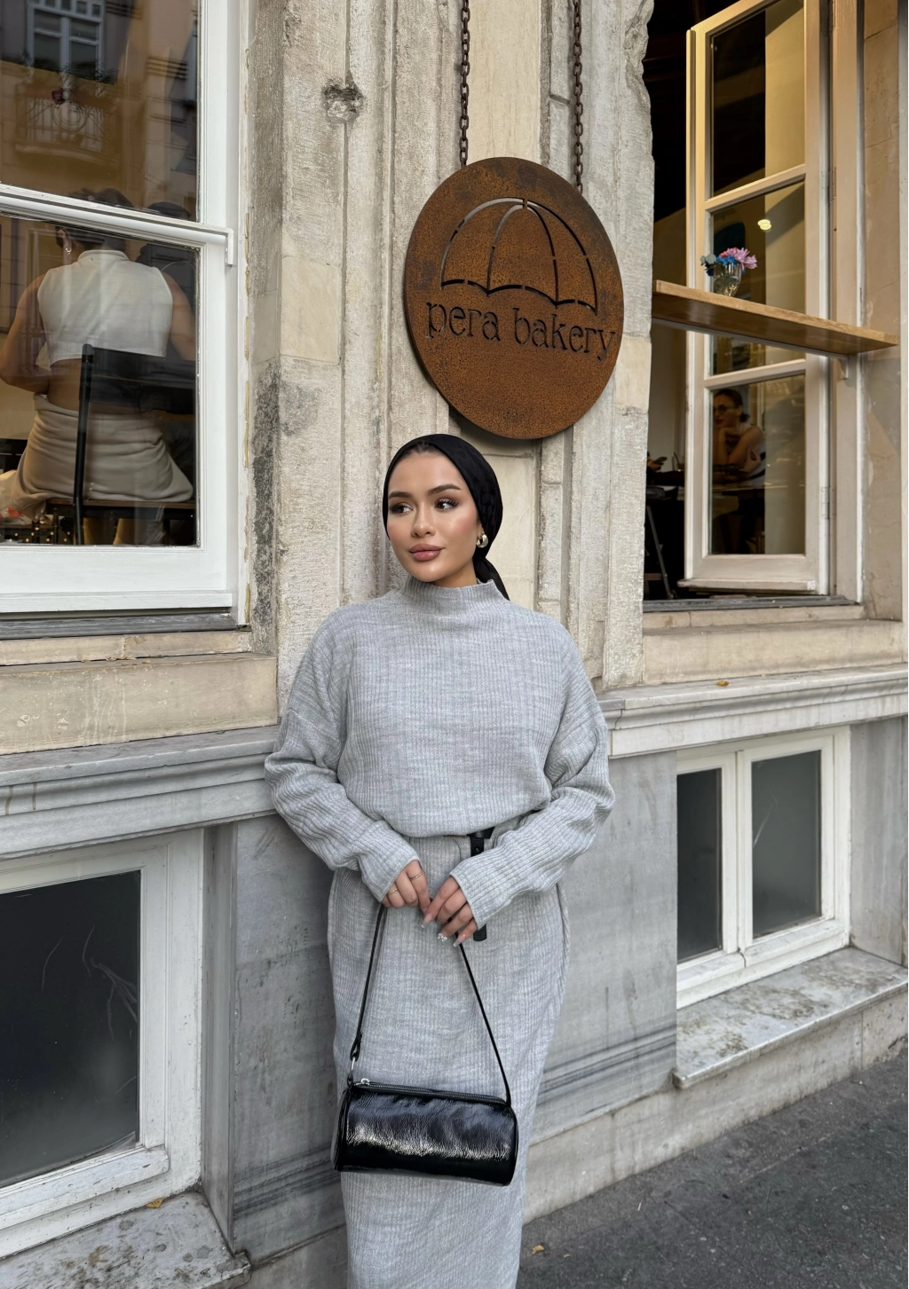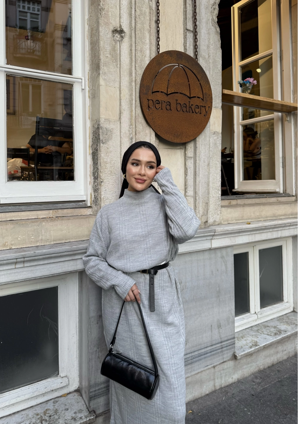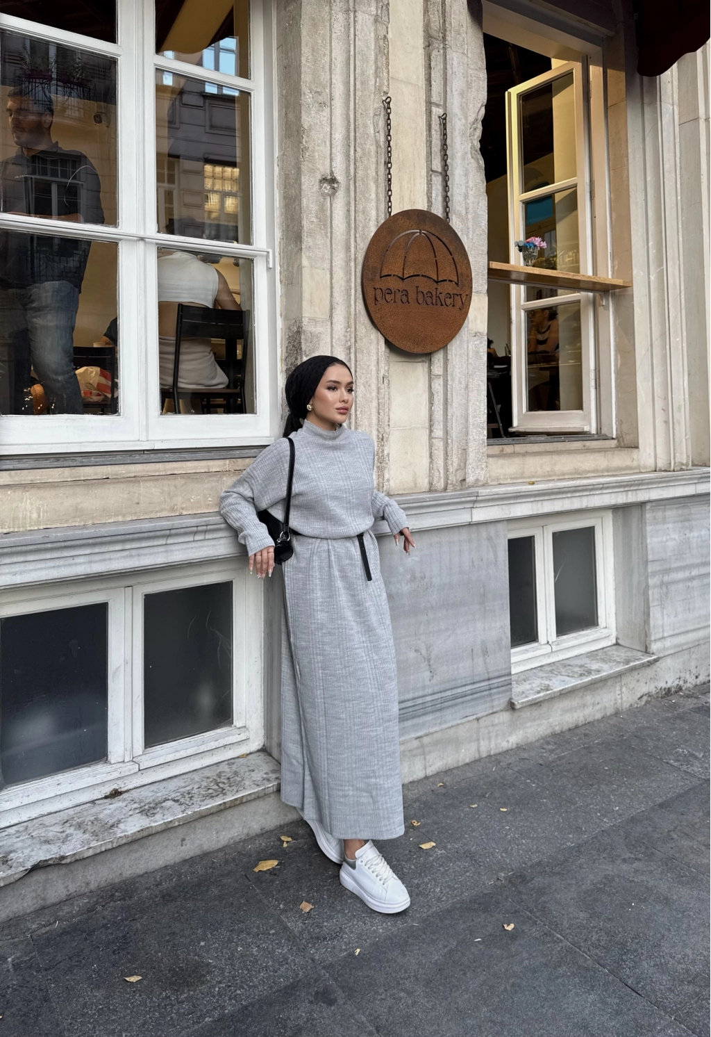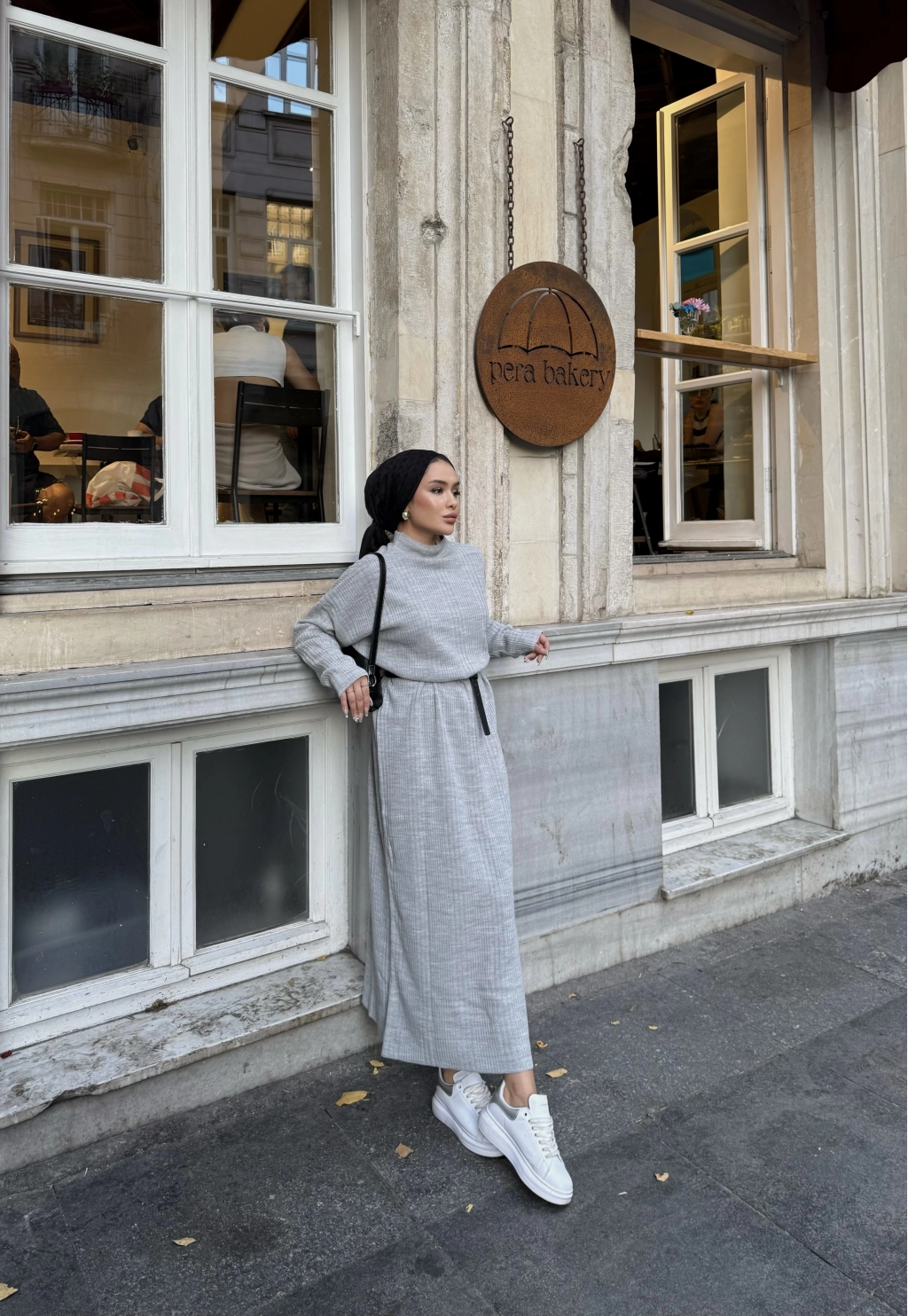 Fitilli Triko Elbise - Gri