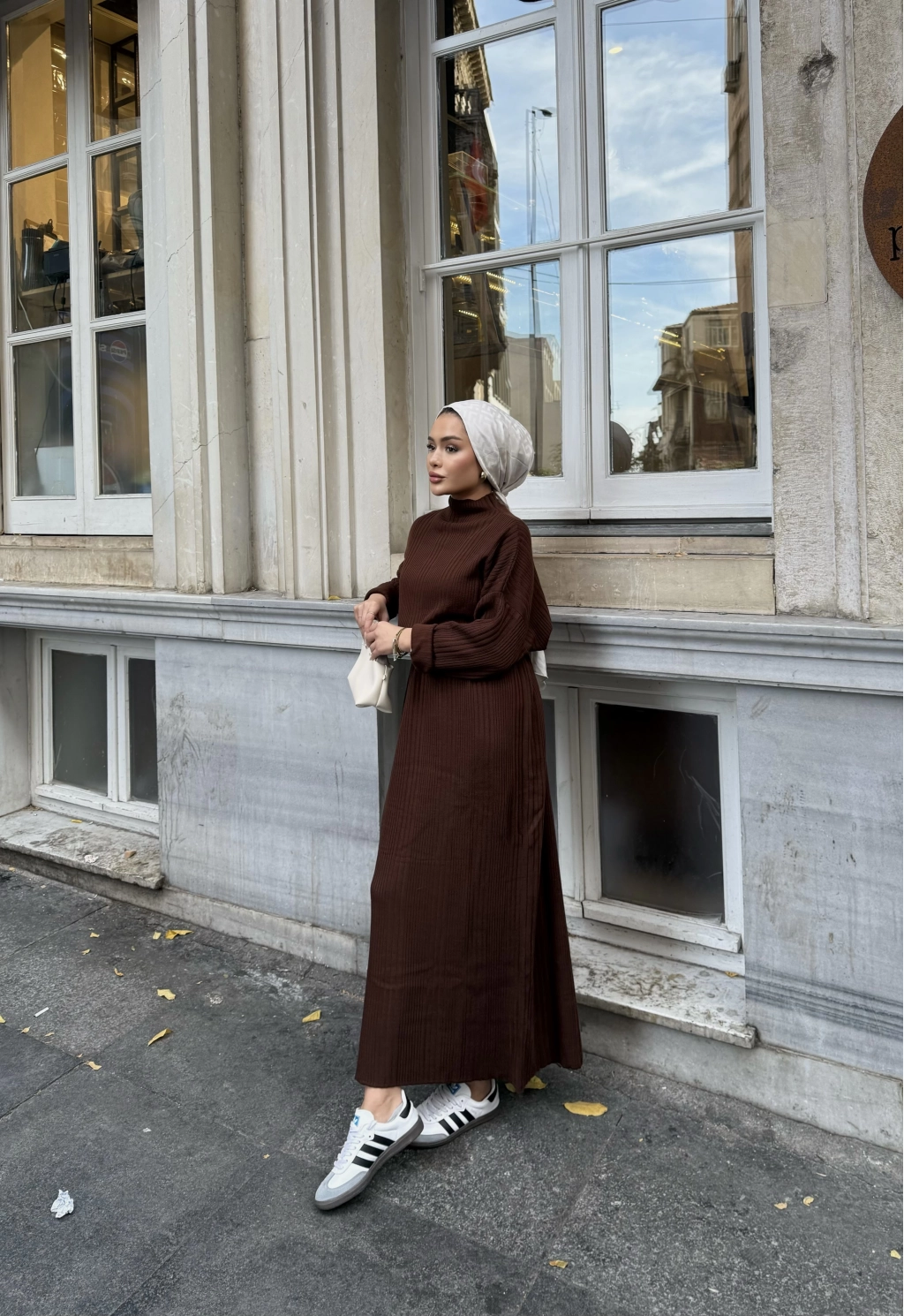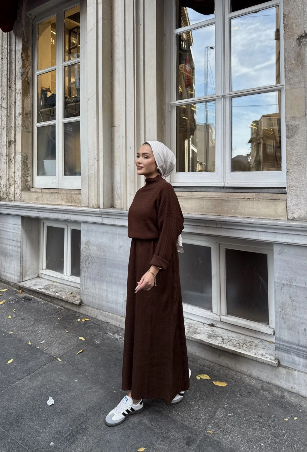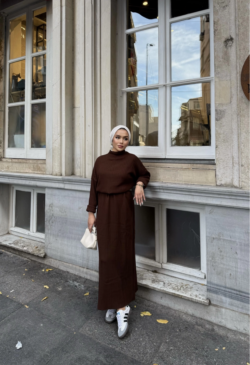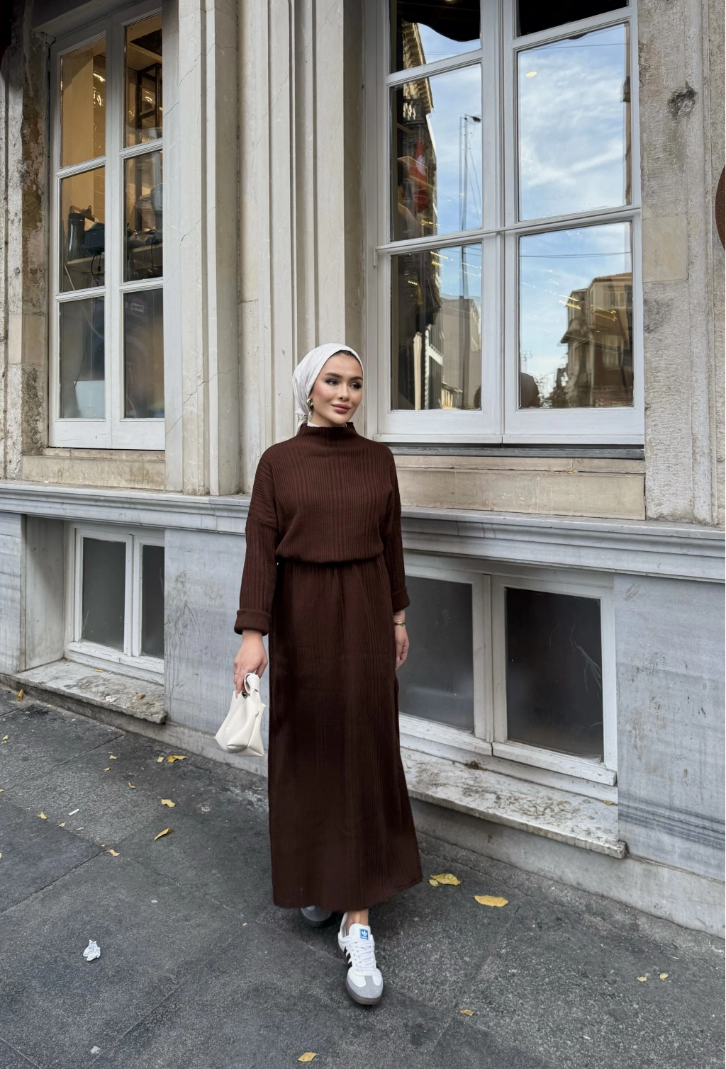 Fitilli Triko Elbise - Kahve