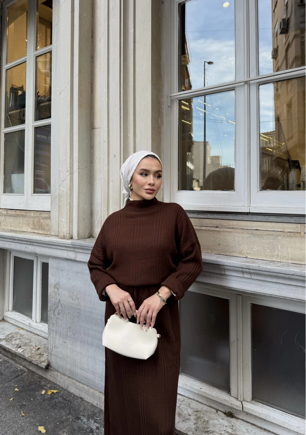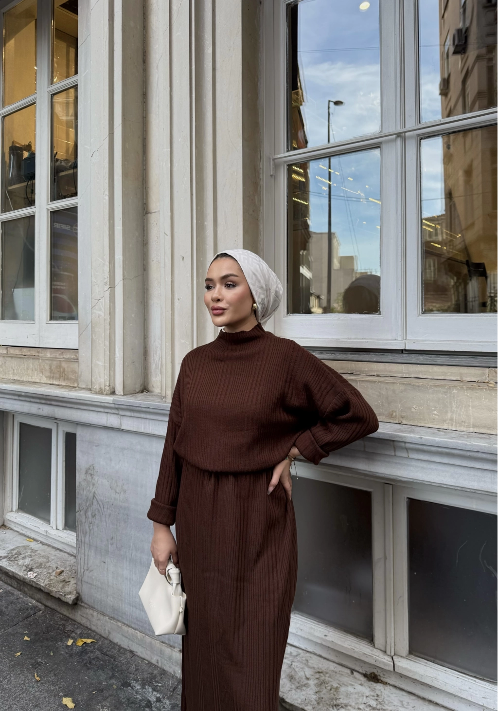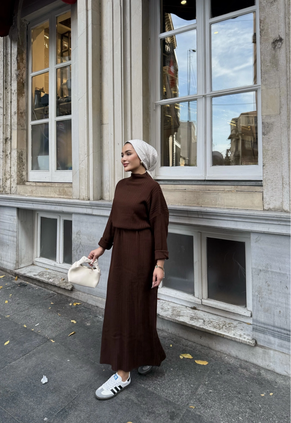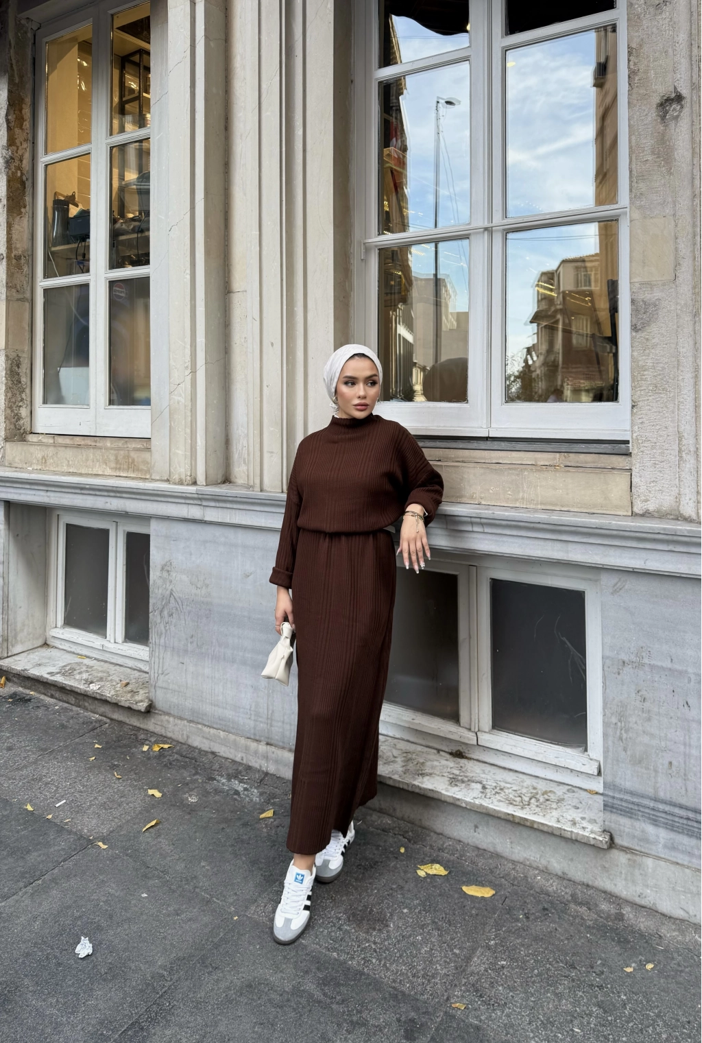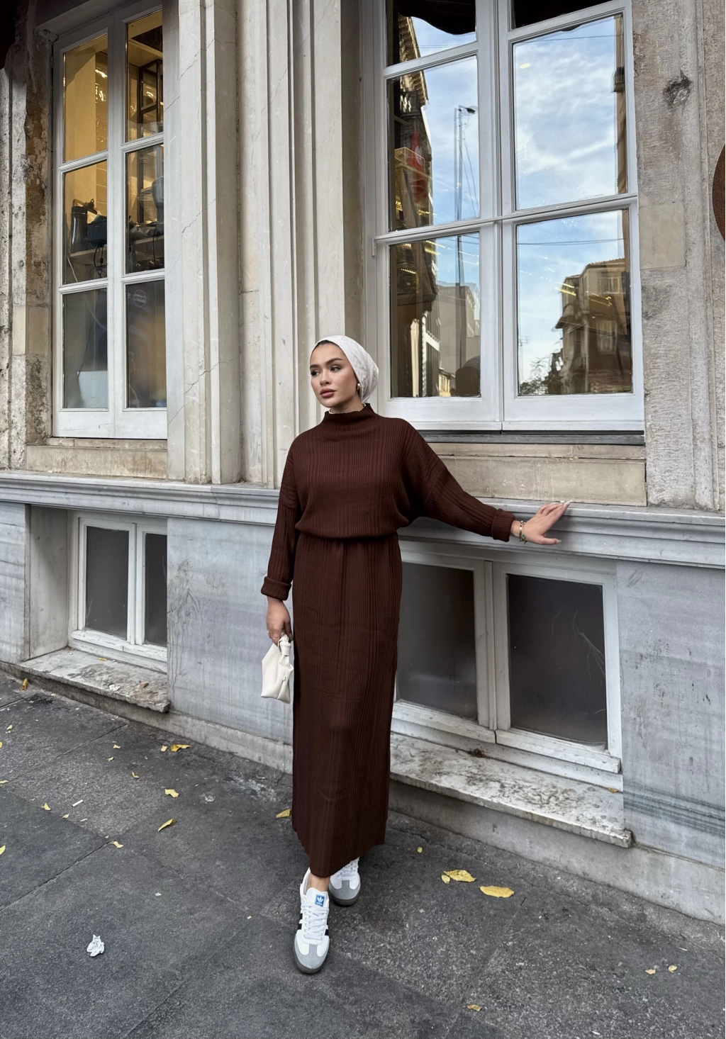Fitilli Triko Elbise - Kahve
